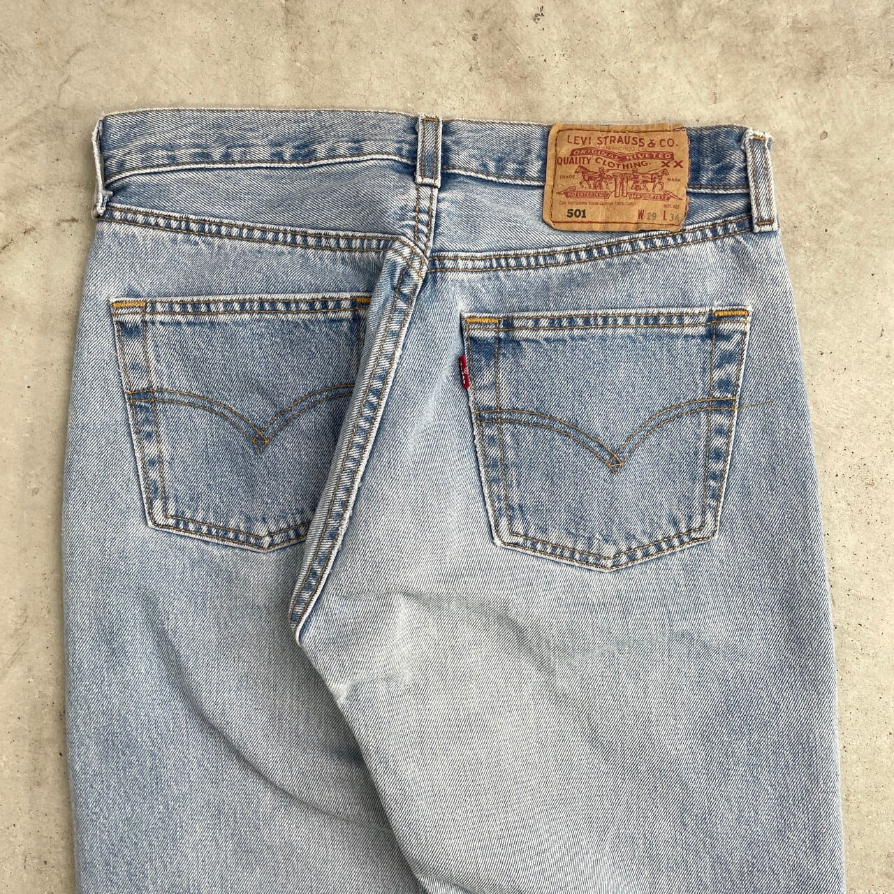 ■ 00年代 スペイン製 Levi's ユーロリーバイス 00501 0106 デニムパンツ ストレート レディースW29 メンズ 古着 00s VINTAGE ヴィンテージ Y2K アメカジ ジーンズ 青色【デニムパンツ】/ブルー 【ブランド】Levi's リーバイス 【サイズ】表記 W29 L34(実寸約L30) レディース規格になります。 ※裾上げされています。 ※計測値をご確認ください。 ウエスト(平置き×2)…72 ワタリ幅…30 股上…26 股下…77 裾幅…18 【生産国】スペイン製 【素材】コットン100% 【状態】全体的に使用感による色褪せや擦れがございます。 股付近に若干のほつれがあります。 裾にシミ汚れがあります。 画像にてご確認ください。 【c241128208】 ※古着は洗濯、検品などのケアを行っております。(新品・デッドストックは洗濯していません。) ※モニターの発色により実物と異なる場合がございます。予めご了承ください。 ※ 海外直輸入USED品になります。