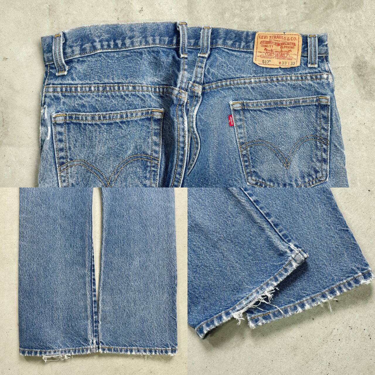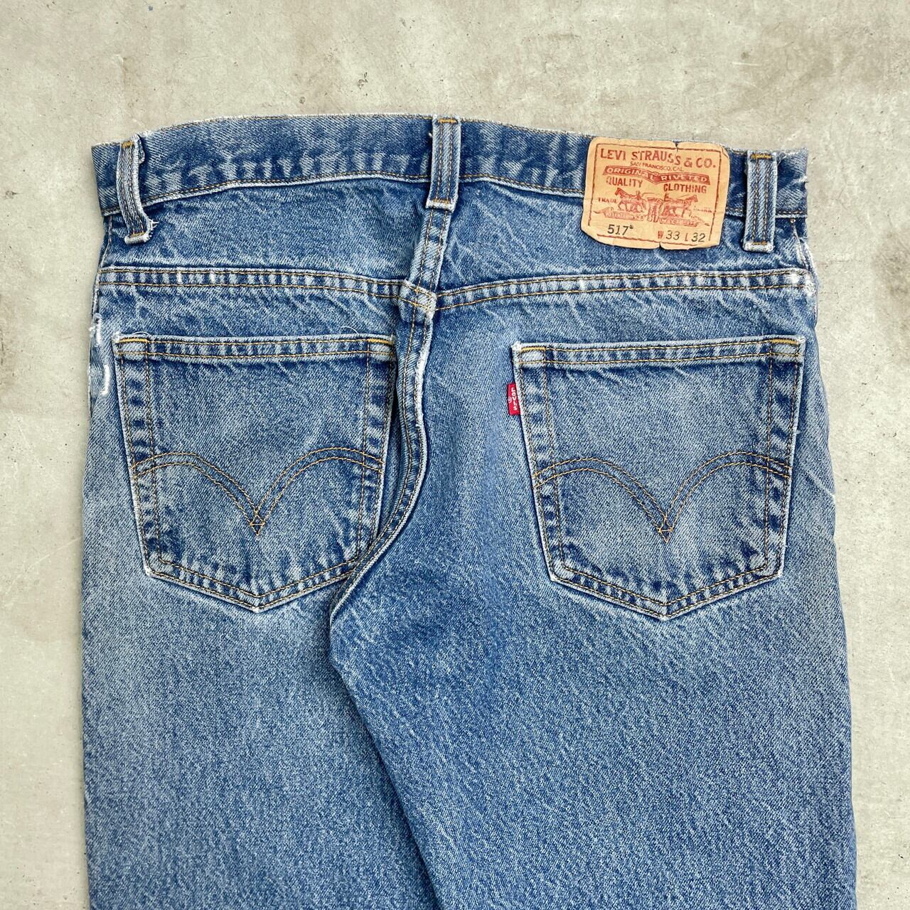 ■Levi's リーバイス 517 フレアデニムパンツ BOOT CUT メンズW33 古着 ブーツカット アメカジ ジーンズ【デニムパンツ】/ブルー 【ブランド】Levi's リーバイス 【サイズ】表記 33×32 ※計測値をご確認ください。 ウエスト(平置き×2)…81 ワタリ幅…30.5 股上…29 股下…80 裾幅…22 【生産国】メキシコ製 【素材】コットン100% 【状態】 全体的に擦れやダメージ、色あせや薄い汚れが御座います。 画像にてご確認下さい。 【c241128051】 ※古着は洗濯、検品などのケアを行っております。(新品・デッドストックは洗濯していません。) ※モニターの発色により実物と異なる場合がございます。予めご了承ください。 ※ 海外直輸入USED品になります。