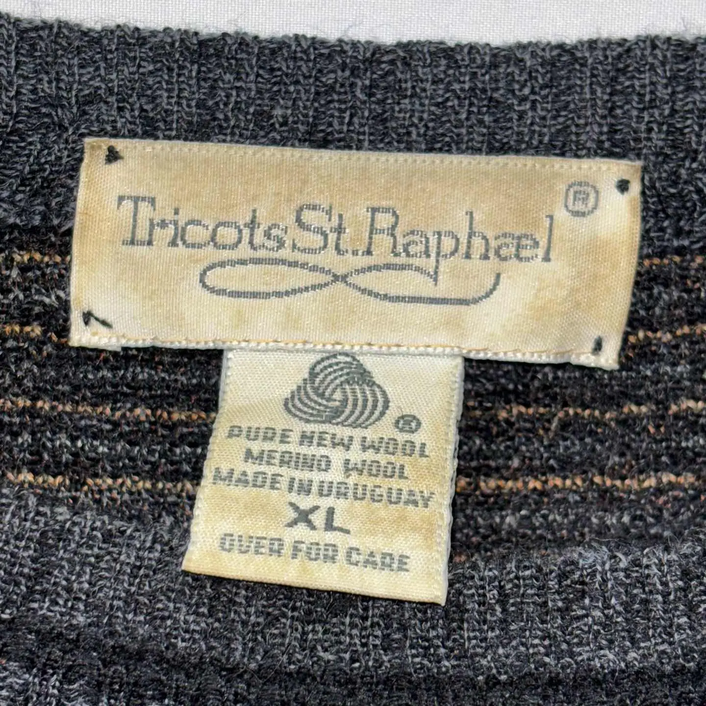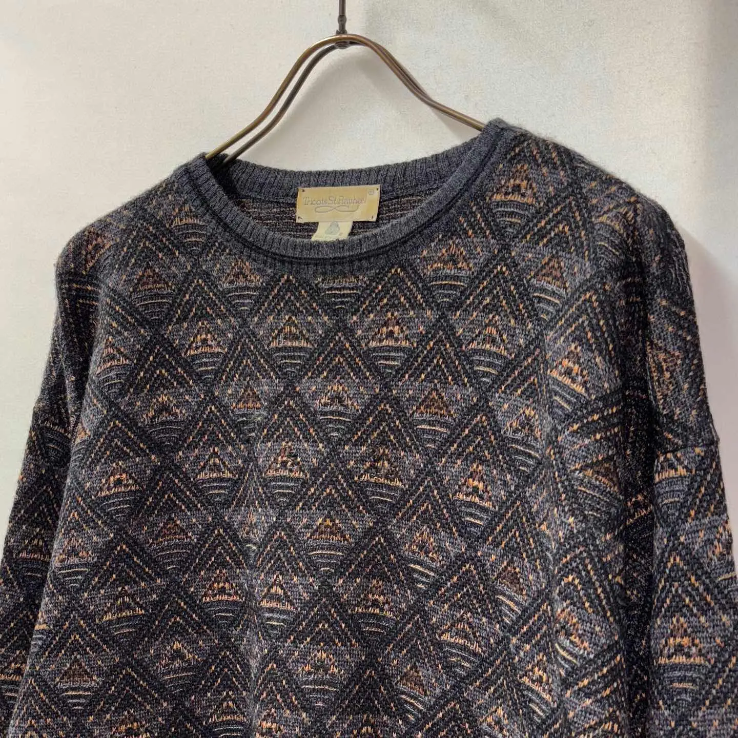 【サイズ表記】 XL 【サイズ(cm)】 肩幅 59 袖丈 61 裄丈 90 袖口(平置) 9 腕周(平置) 27 着丈 66 身幅 59 【商品詳細】 生産国 :Uruguay ブランド:Tricots St. Raphael カラー :ブラック系 素材 :100% wool 【コンディション】 【S】新品、展示品、デッドストックなど。 【A】若干の使用感はあるが、状態の良いUESD。 【B】使用感はあるが、目立つダメージや大きな汚れはない。 【C】使用感と部分的に少しダメージや汚れ有。 【D】使用感と部分的に大きなダメージや汚れ有。 ※古着故の多少の着用感うや細かい汚れがございます。古着に理解のない方のご購入はお控えください。また、撮影状況により、色味に若干の差異が生ずることがございます。 【ジャンル】 US古着/US vintage 【その他】 こちらの商品は古着商品となります。全て1点のみの在庫のご用意となりますのでご注意ください。 #vintage #古着 #90s #used #80s #knit #ニット