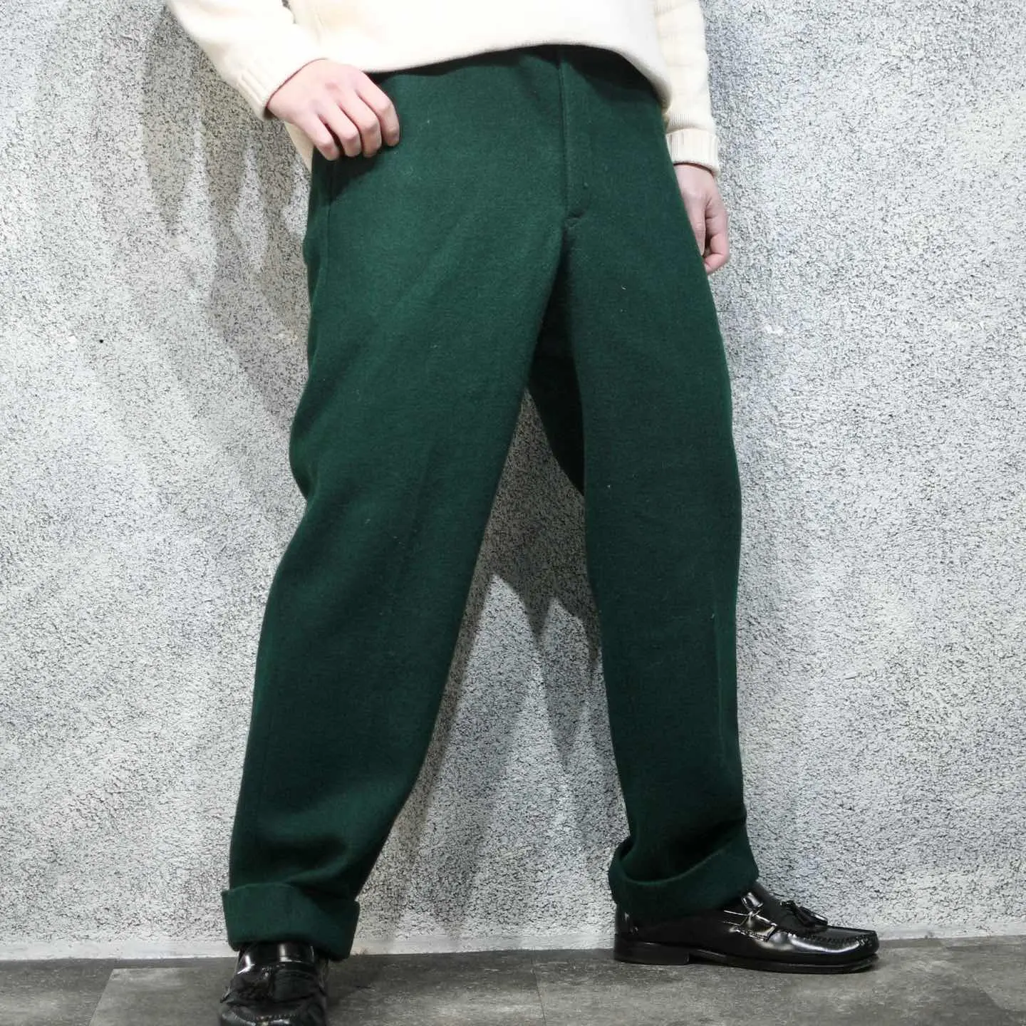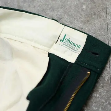 ウエスト84cm 総丈108cm 股下80cm わたり36cm 裾幅23cm fabric/wool 着用画像 177cm/62kg Johnsonらしいウールパンツ。 アメリカの老舗として、アメカジ寄りなアイテムや ワークジャケットのイメージがあるJohnsonですが 肉厚なウール生地で、ある程度落ち着いた方々に 需要がある様な気がしております。 すとんと落ちるシルエットに、どこかクラシカルな 雰囲気、ウール生地特有の奥深さ。 綺麗に着ても、汚く着ても、上手く纏まるかと 思います。 ※裾上げ等のレングス直しにつきましては、 別途料金が発生する場合がございます。 購入前に、必ずご連絡お願い致します。 また、購入後の直しには対応出来かねます。 ※撮影状況により、実物と多少色が異なる 場合がございます。 ※古着を取り扱っているため、気づかない汚れや ほつれがある場合がございます。 予めご了承ください。 ※サイズは着用感で選んでおり、表記サイズではございません。 古着 オーバーサイズ old vintage ヴィンテージ used 80's 90's アメリカ古着 ユーロ古着 メンズ レディース POLO RALPH LAUREN Eddie Bauer OLD GAP Eddie Bauer LANDS' END ランズエンド LLBean エルエルビーン オールドギャップ エディーバウアー ラルフローレン ブルックスブラザーズ Brooks Brothers ハンティングパンツ ダークグリーン 緑 などがお好きな方 #vintage #オーバーサイズ #old #used #90s #80s #古着 #ヴィンテージ #アメリカ古着 #ユーロ古着 #古着男子 #古着女子 #LLBean #エルエルビーン #EddieBauer #エディーバウアー #oldgap #オールドギャップ #LANDSEND #ランズエンド #NAUTICA #ノーティカ #ラルフローレン #POLORALPHLAUREN #ブルックスブラザーズ #BrooksBrothers #ハンティングパンツ #ウールパンツ #ワークパンツ #スラックス #ウールスラックス #ワイドパンツ