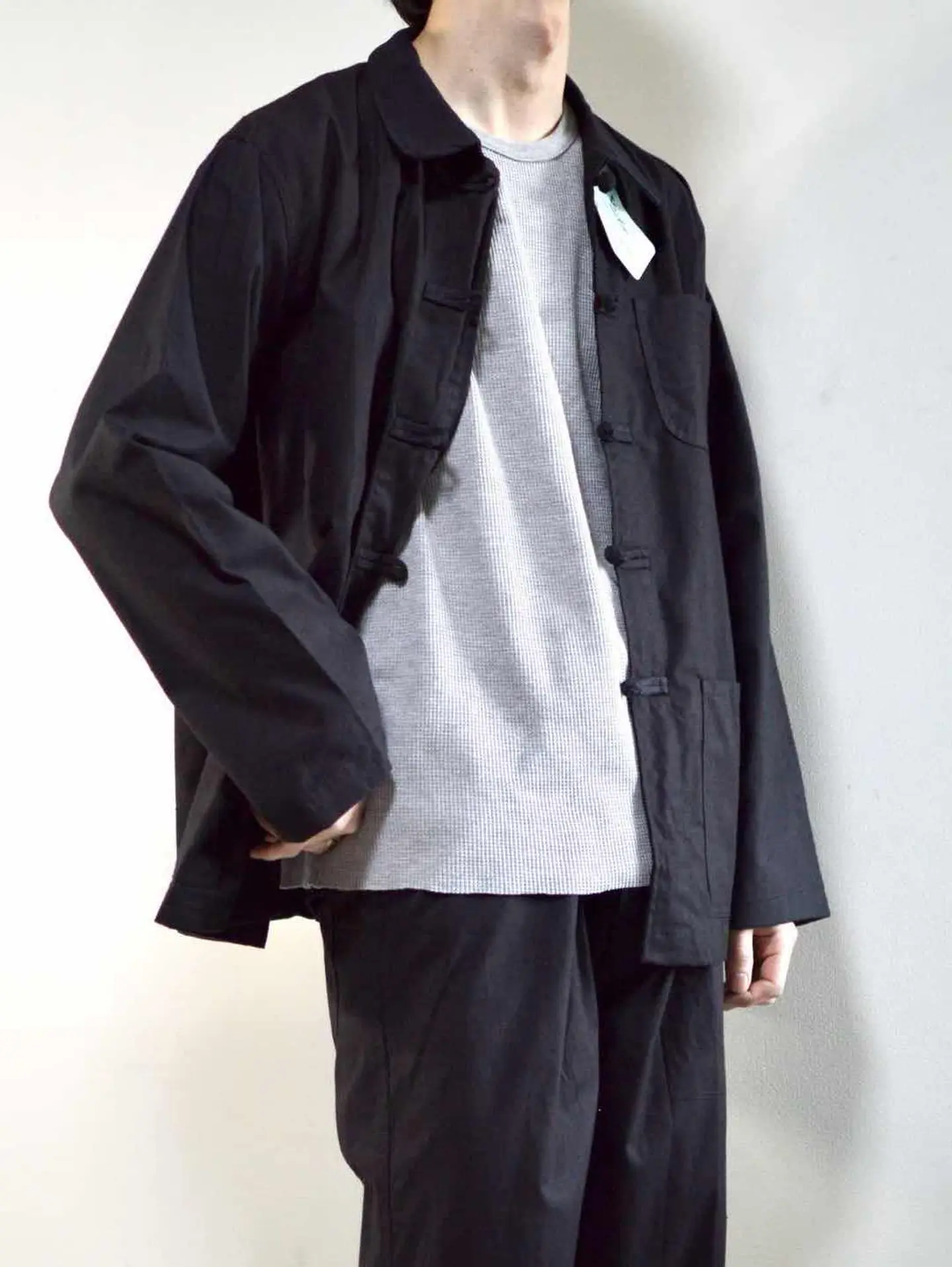 着丈71cm 肩幅51cm 身幅61cm 袖丈60cm ウエスト41~48cm 総柄101cm 股下70cm わたり35cm 裾幅20cm fabric/cotton 着用画像 177cm/62kg またまた4色のチャイナワークセットアップが 入荷しました。 各色それぞれの良さが詰まったセットアップと なります。 迷わずブラック、やっぱりブラック、 なんだかんだ迷ってブラック。 どんな選び方をしても納得出来るはず。 だってかっこいいですから。 ※撮影状況により、実物と多少色が異なる場合があります。 ※古着を取り扱っているため、気づかない汚れやほつれ等がある場合がございます。 予めご了承ください。 古着 old vintage ヴィンテージ used 80's 90's オーバーサイズ アメリカ古着 ユーロ古着 メンズ レディース POLO RALPH LAUREN Eddie Bauer OLD GAP Eddie Bauer LANDS' END ランズエンド LLBean エルエルビーン オールドギャップ エディーバウアー ラルフローレン ブルックスブラザーズ Brooks Brothers ブラック 黒 カバーオール ユーロワーク ワイドパンツ ワークパンツ 60's 70's などがお好きな方 #vintage #old #used #90s #80s #古着 #ヴィンテージ #アメリカ古着 #ユーロ古着 #古着男子 #古着女子 #LLBean #エルエルビーン #EddieBauer #エディーバウアー #oldgap #オールドギャップ #LANDSEND #ランズエンド #NAUTICA #ノーティカ #ラルフローレン #POLORALPHLAUREN #ブルックスブラザーズ #BrooksBrothers #ワークパンツ #ワイドパンツ #60s #70s #カバーオール #チャイナシャツ #カバーオール #ワークジャケット #ユーロワーク #セットアップ
