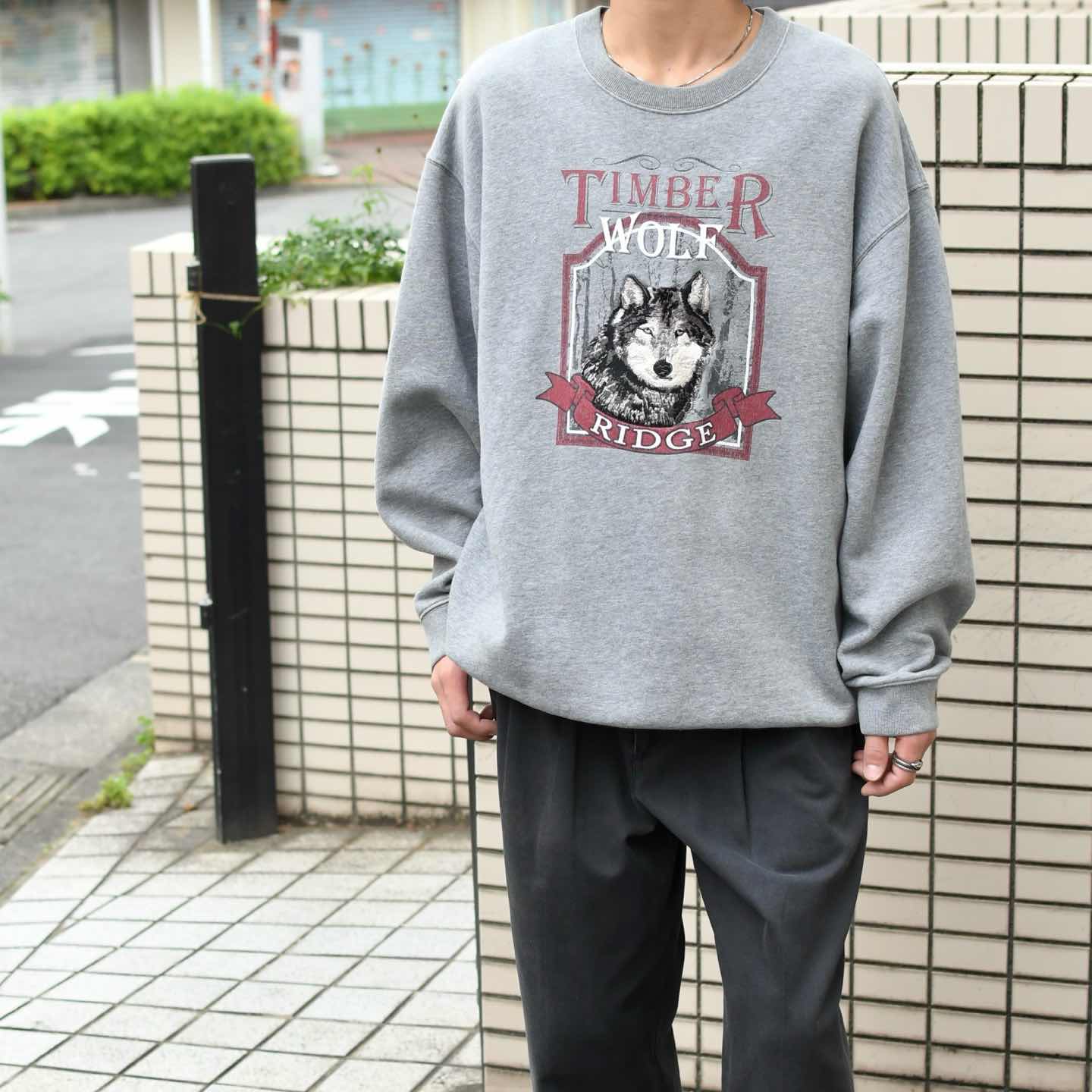 古着 アニマルスウェット 刺繍 スウェット トレーナー オオカミ デザインスウェット