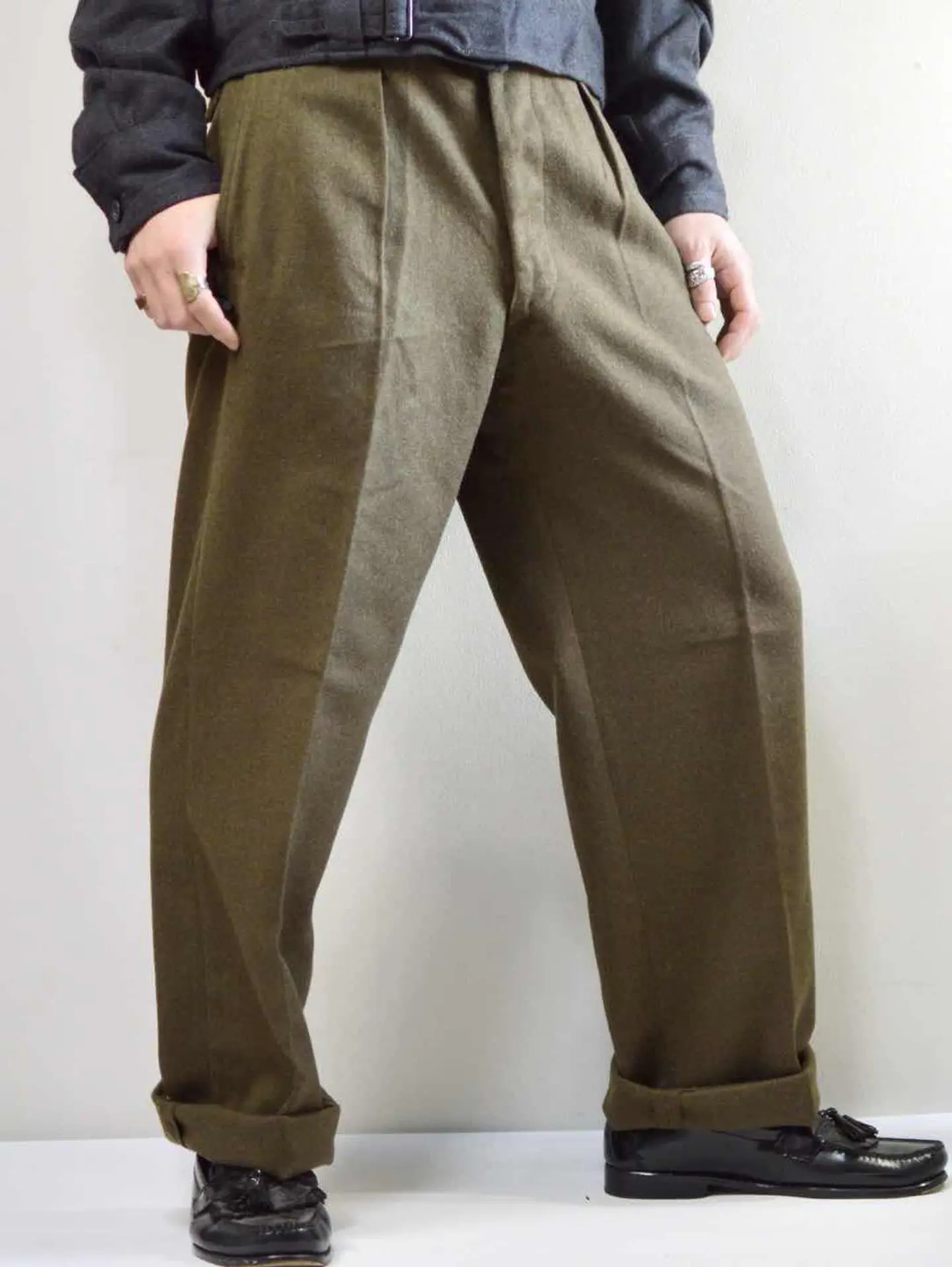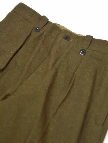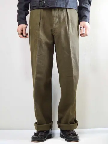 ウエスト83cm 総丈114cm 股下82cm わたり38cm 裾幅24cm fabric/wool 着用画像 177cm/62kg フランス軍の名品、M-52チノのウールタイプ。 言うまでもなくスペシャルです。 ミリタリーらしい太いシルエットに、 ウールの落ち着いた雰囲気。 男臭く、それでいて上品。 説明文を考えれば考えるほど、 良さしか見つからない最高の1本です。 ※ボタンの色に個体差あり。 ※サイズ表記に個体差があるため、測定値を 参考にお願いします。 ※裾上げ等のレングス直しにつきましては、 別途料金が発生する場合がございます。 購入前に、必ずご連絡お願い致します。 また、購入後の直しには対応出来かねます。 ※撮影状況により、実物と多少色が異なる場合があります。 ※古着を取り扱っているため、気づかない汚れやほつれがある場合がございます。 予めご了承ください。 ※サイズは着用感で選んでおり、表記サイズではございません。 古着 オーバーサイズ old vintage ヴィンテージ used 80's 90's アメリカ古着 ユーロ古着 メンズ レディース POLO RALPH LAUREN Eddie Bauer OLD GAP Eddie Bauer LANDS' END ランズエンド LLBean エルエルビーン オールドギャップ エディーバウアー ラルフローレン ブルックスブラザーズ Brooks Brothers カーキ ウールトラウザーズ ワークパンツ アメリカ軍 usarmy イタリア軍 イギリス軍 スウェーデン軍 チェコ軍 60's タックパンツ ミリタリー などがお好きな方 #vintage #オーバーサイズ #old #used #90s #80s #古着 #ヴィンテージ #アメリカ古着 #ユーロ古着 #古着男子 #古着女子 #LLBean #エルエルビーン #EddieBauer #エディーバウアー #oldgap #オールドギャップ #LANDSEND #ランズエンド #NAUTICA #ノーティカ #ラルフローレン #POLORALPHLAUREN #ブルックスブラザーズ #BrooksBrothers #ウールパンツ #トラウザーズ #フランス軍 #m52 #ワークパンツ #ワイドパンツ #50s #60s #タックパンツ