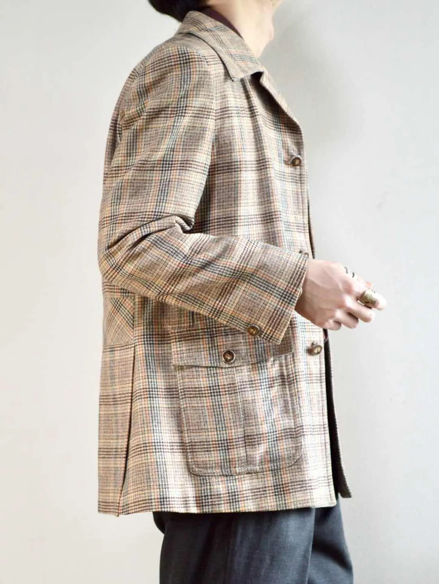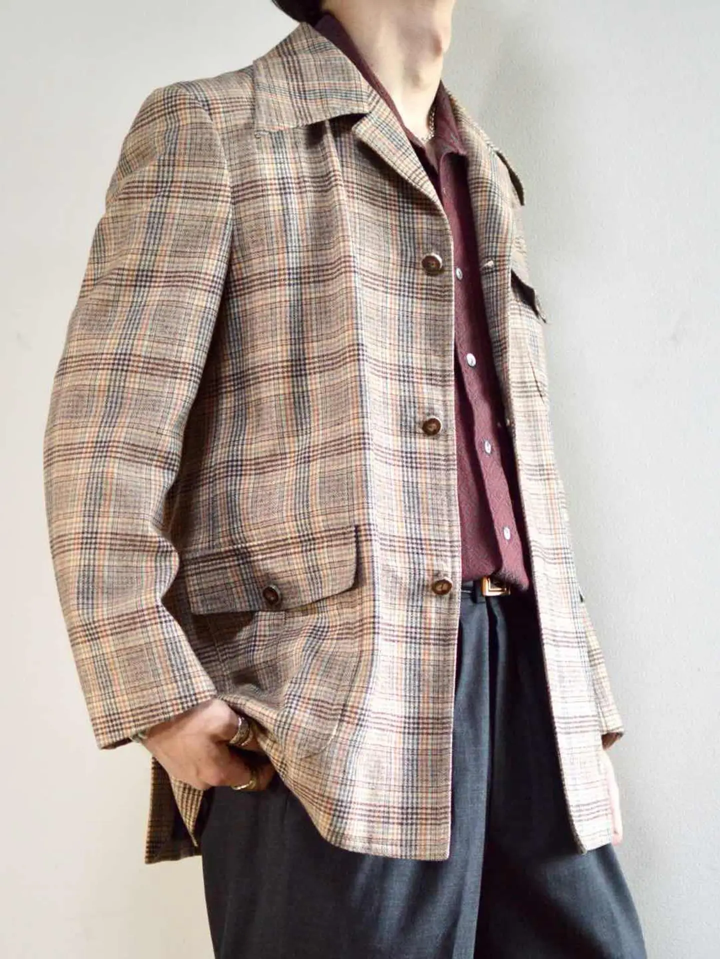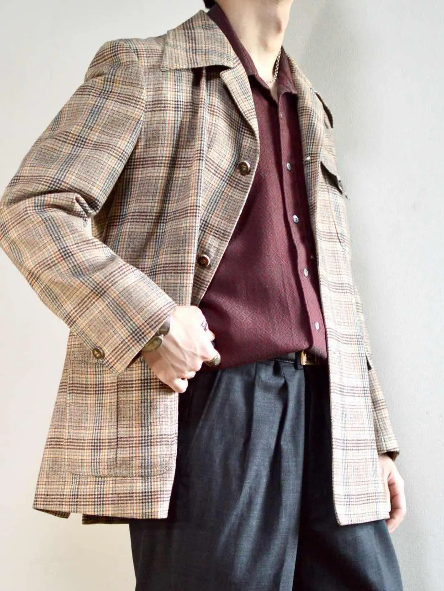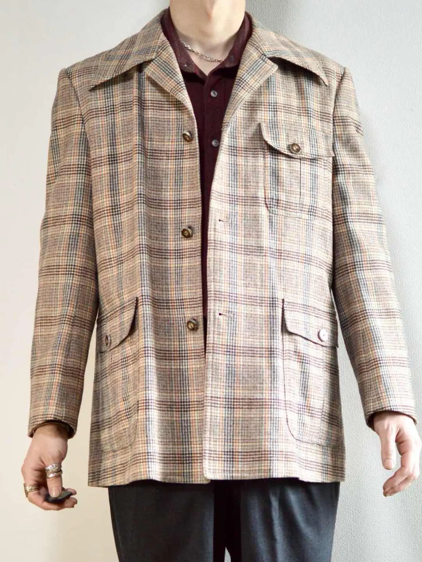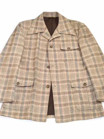 着丈75cm 肩幅47cm 身幅58cm 袖丈59cm fabric/wool 着用画像 177cm/62kg 渋さと70'sらしさが合わさった テーラードジャケット。 現行のジャケットでは味わえないシルエットや、 ディテールに惹かれる方も 多いのではないでしょうか。 ブラウン、ベージュなどの色をベースにし、 少しだけ入る水色。 厚みのあるウッド調なボタンも秀逸。 ※撮影状況により、実物と多少色が異なる場合があります。 ※古着を取り扱っているため、気づかない汚れやほつれ等がある場合がございます。 予めご了承ください。 ※サイズは着用感で選んでおり、表記サイズではございません。 古着 オーバーサイズ old vintage ヴィンテージ used 80's 90's アメリカ古着 ユーロ古着 メンズ レディース POLO RALPH LAUREN Eddie Bauer OLD GAP Eddie Bauer LANDS' END ランズエンド LLBean エルエルビーン オールドギャップ エディーバウアー ラルフローレン ブルックスブラザーズ Brooks Brothers チェック柄 ジャケット などがお好きな方 #vintage #オーバーサイズ #old #used #90s #80s #古着 #ヴィンテージ #アメリカ古着 #ユーロ古着 #古着男子 #古着女子 #LLBean #エルエルビーン #EddieBauer #エディーバウアー #oldgap #オールドギャップ #LANDSEND #ランズエンド #NAUTICA #ノーティカ #ラルフローレン #POLORALPHLAUREN #ブルックスブラザーズ #BrooksBrothers #ウールジャケット #テーラードジャケット #70s #ジャケット #チェック柄