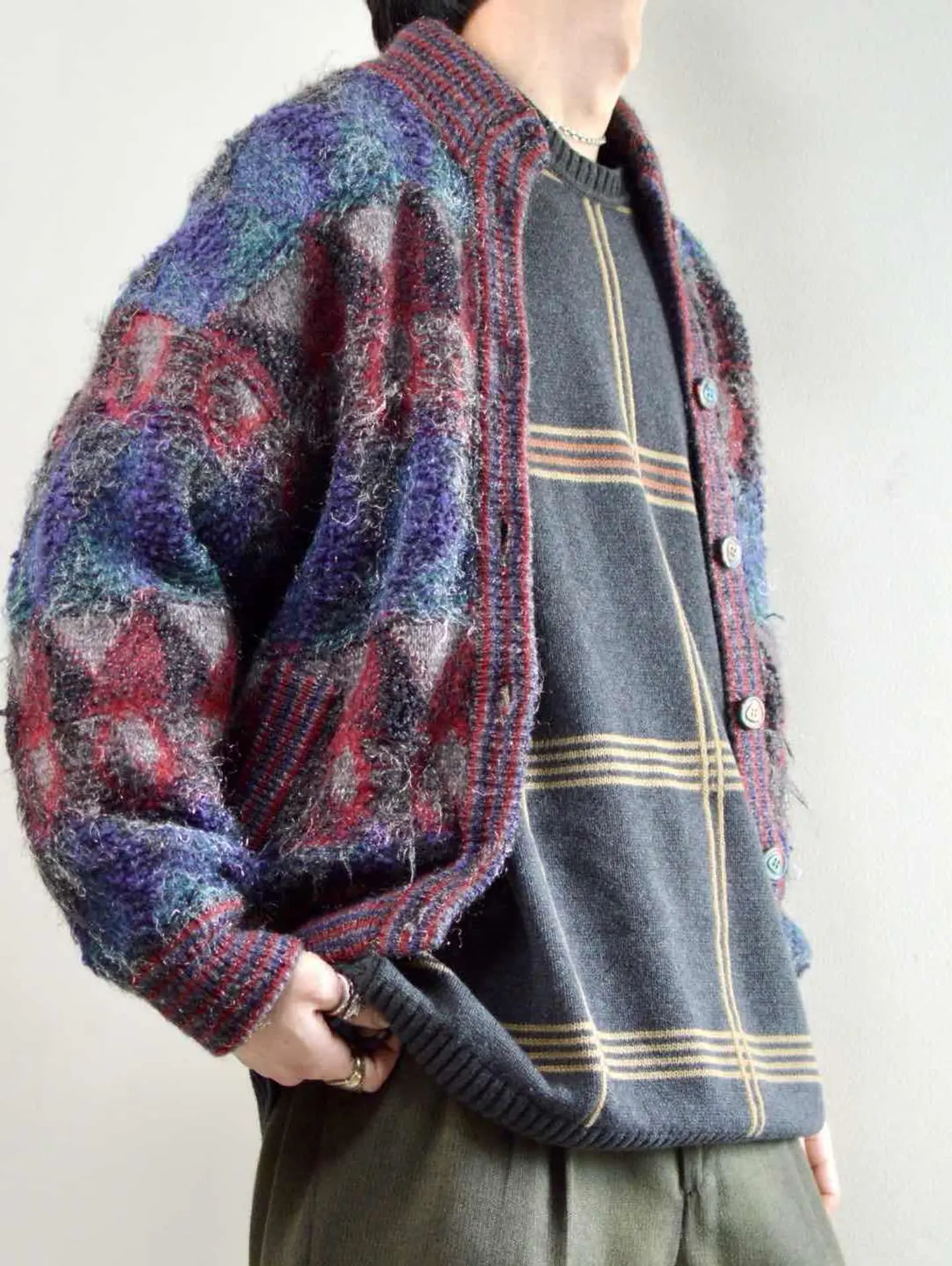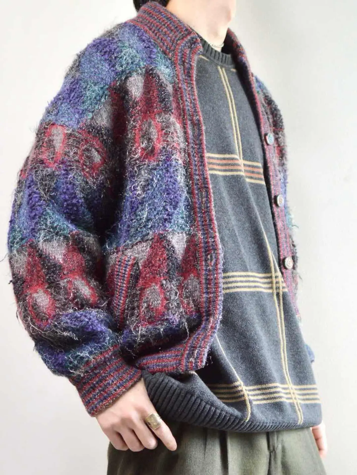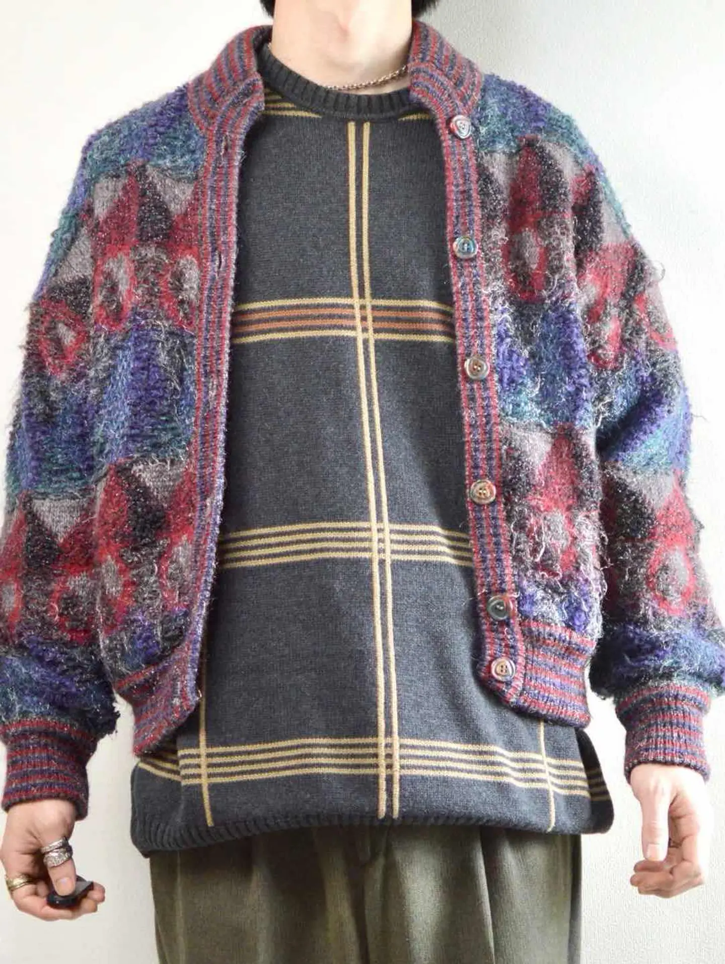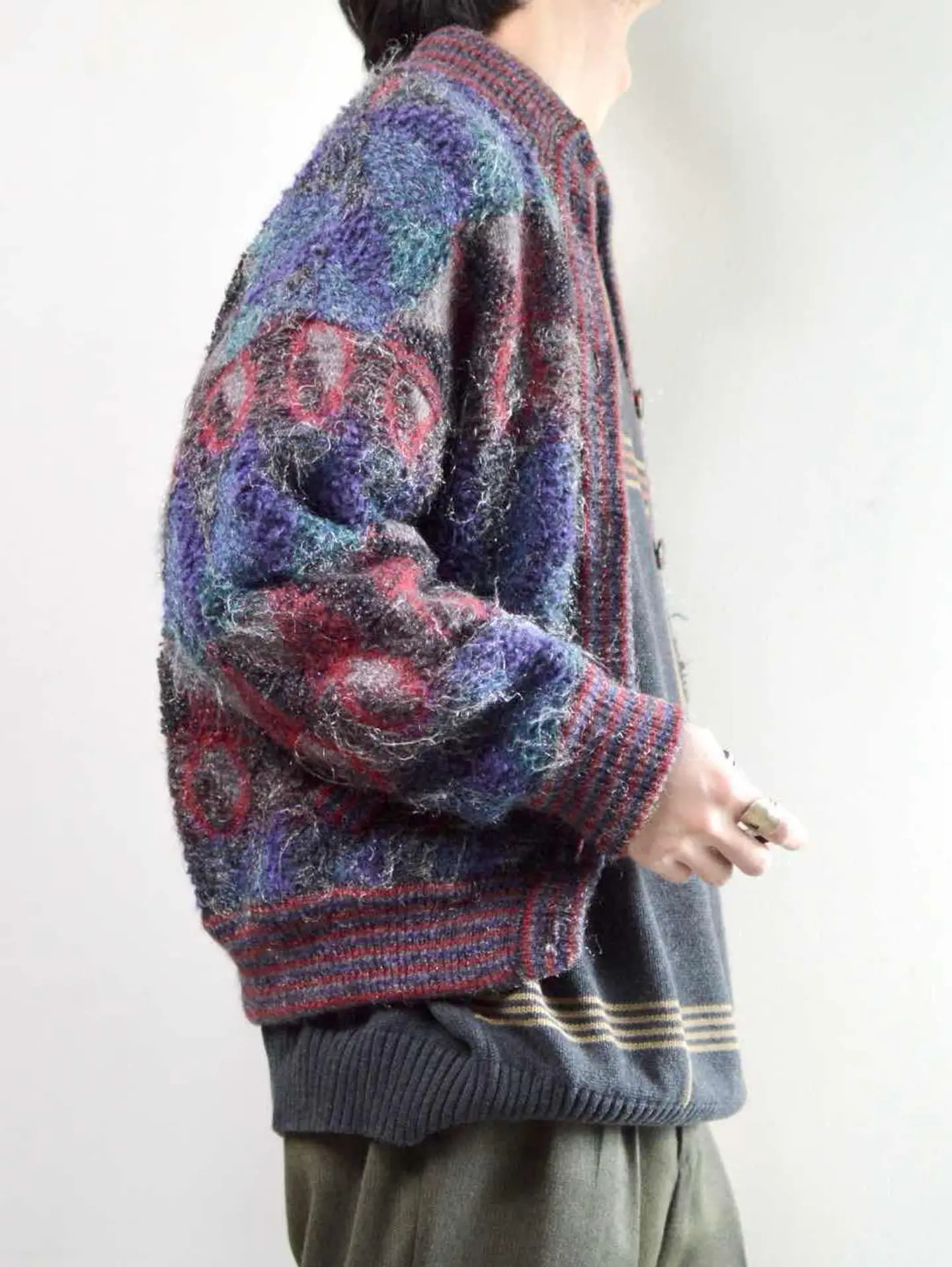着丈62cm 肩幅62cm 身幅55cm 袖丈54cm fabric/質感よりacryl 着用画像 177cm/62kg 大き過ぎないサイズ感でレイヤードを楽しめる、毛足の長いアクリルニットブルゾン。 ボテっとしたブルゾンらしいシルエットは、 丸みを帯びて可愛いですし、色味の使い方や 生地の毛足の長さから、強過ぎないインパクトが トップスを選ばず、まとまる理由。 タグなどは無いため詳細は不明ですが、 ちょっぴり古いアイテムかと。 そんなところも相まって、惹き付けられる方も いるのではないでしょうか。 ※トップのボタン欠損 ※撮影状況により、実物と多少色が異なる場合があります。 ※古着を取り扱っているため、気づかない汚れやほつれ等がある場合がございます。 予めご了承ください。 ※サイズは着用感で選んでおり、表記サイズではございません。 古着 オーバーサイズ old vintage ヴィンテージ used 80's 90's アメリカ古着 ユーロ古着 メンズ レディース POLO RALPH LAUREN Eddie Bauer OLD GAP Eddie Bauer LANDS' END ランズエンド LLBean エルエルビーン オールドギャップ エディーバウアー ラルフローレン ブルックスブラザーズ Brooks Brothers デザイン 柄ニット 総柄ニット ニット セーター などがお好きな方 #vintage #オーバーサイズ #old #used #90s #80s #古着 #ヴィンテージ #アメリカ古着 #ユーロ古着 #古着男子 #古着女子 #LLBean #エルエルビーン #EddieBauer #エディーバウアー #oldgap #オールドギャップ #LANDSEND #ランズエンド #NAUTICA #ノーティカ #ラルフローレン #POLORALPHLAUREN #ブルックスブラザーズ #BrooksBrothers #ニット #セーター #カーディガン #ニットブルゾン #ブルゾン #アクリルニット