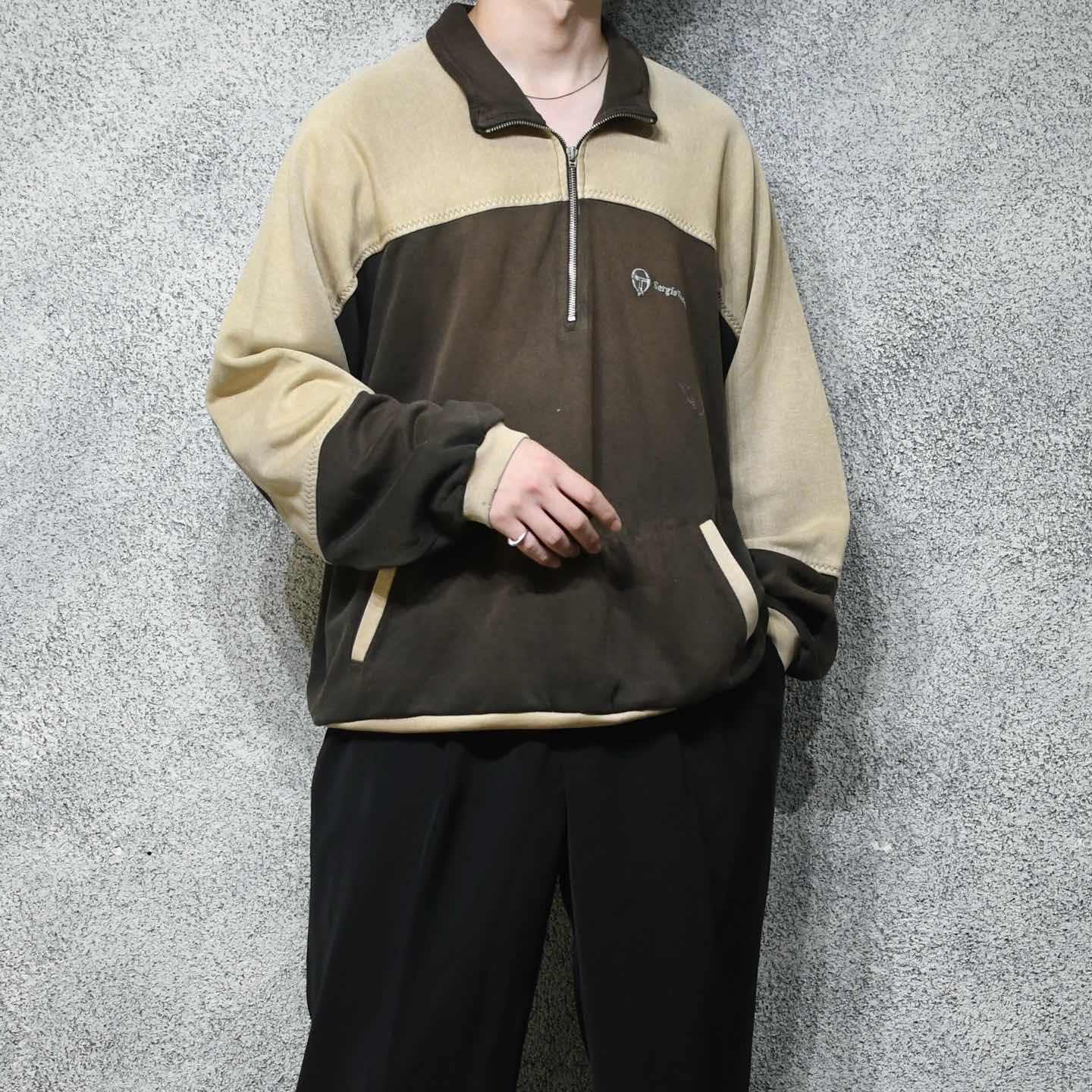 90年代 USA製 SURF STYLE ハーフジップ ナイロンジャケット ワンポイントロゴ刺繍 メンズXL