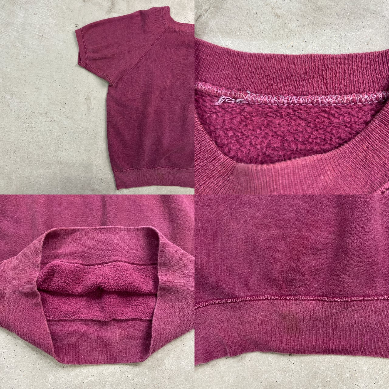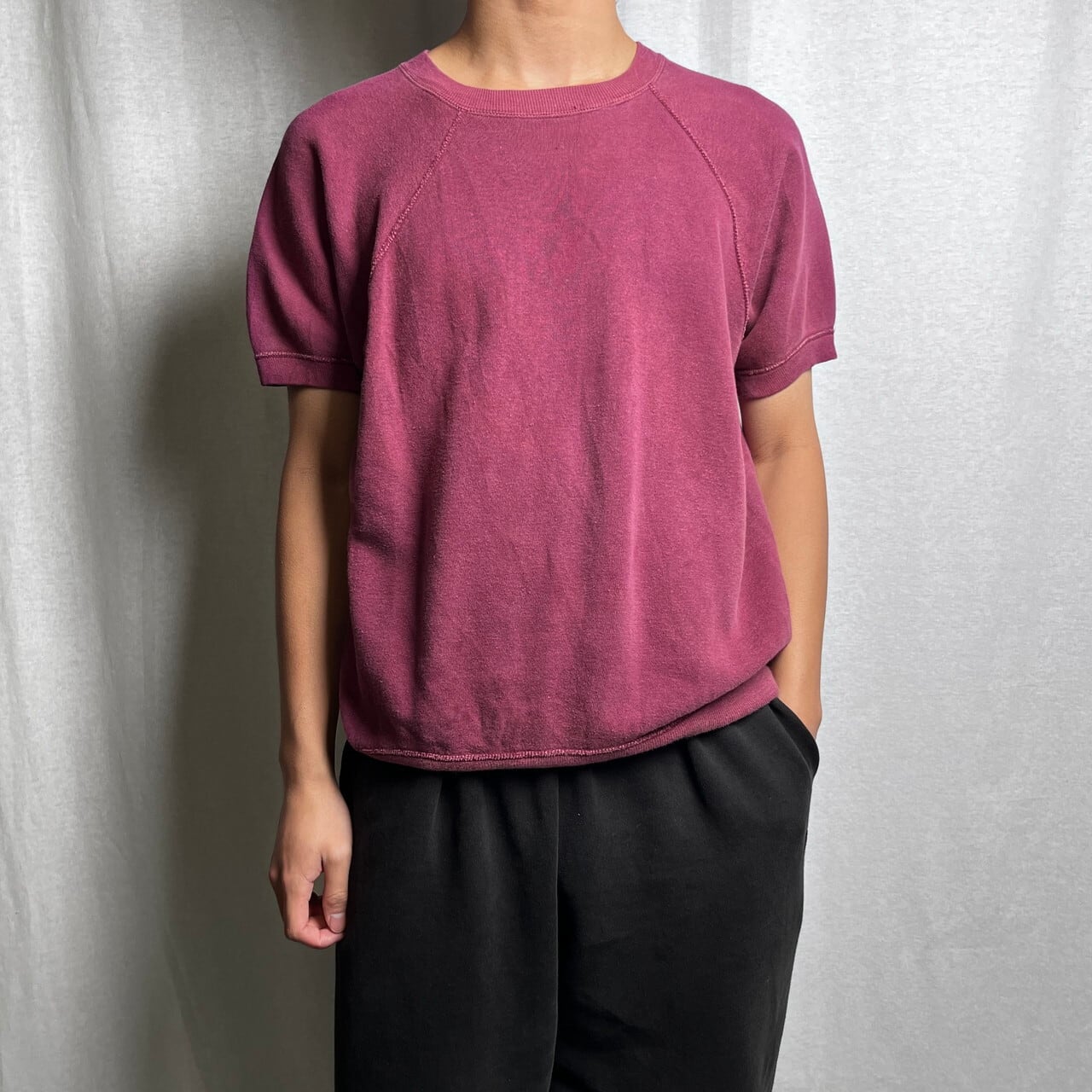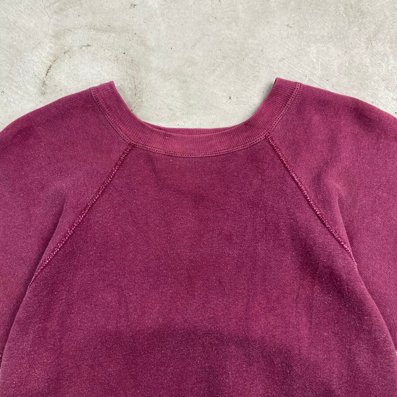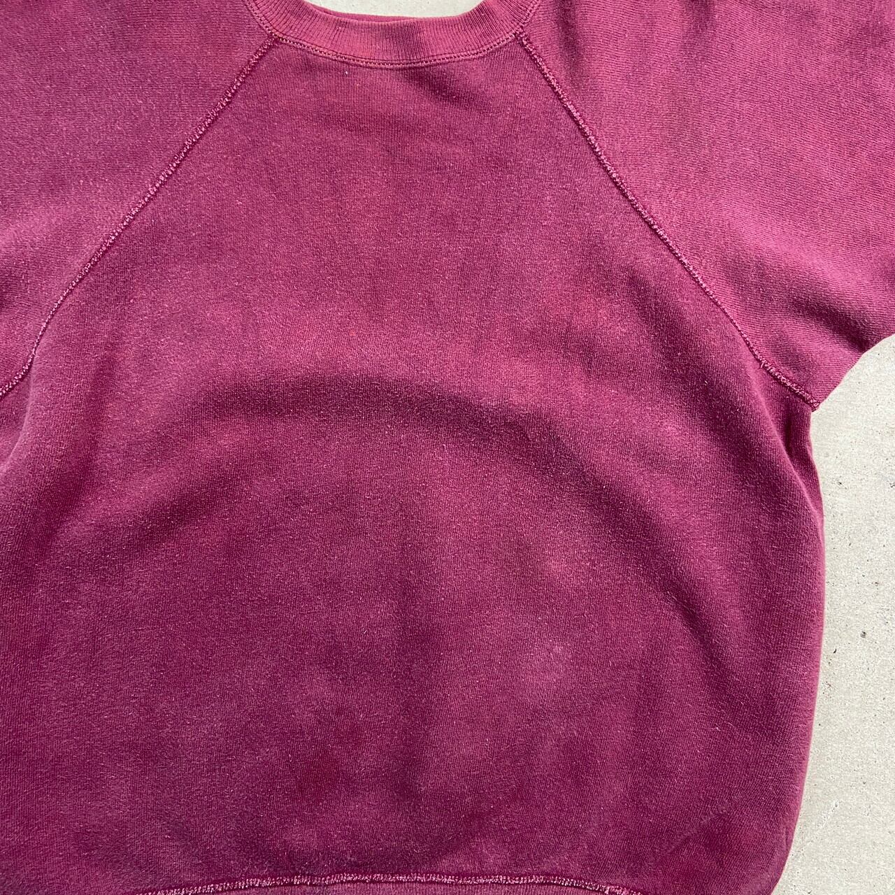 ■60年代 UNKNOWN 半袖スウェットシャツ ブランクスウェット 無地 メンズM-L相当 古着 60s ヴィンテージ VINTAGE ラグランスウェット ビンスエ ヴィンスウェ 半スウェ フェードレッド ボルドー えんじ【スウェットシャツ】/ワインレッド 【サイズ】表記 不明(着用感メンズM-L相当) モデル身長172cm ※計測値をご確認ください。 着丈…58 身幅…57 裄丈…39.5 袖丈(袖下計測)…16 【生産国】不明 【素材】不明(おそらくコットンかと思われます。) 【状態】 全体的にフェード、数ヶ所薄汚れ等の使用感がございます。 画像にてご確認ください。 【c250102098】 ※古着は洗濯、検品などのケアを行っております。(新品・デッドストックは洗濯していません。) ※モニターの発色により実物と異なる場合がございます。予めご了承ください。 ※ 海外直輸入USED品になります。