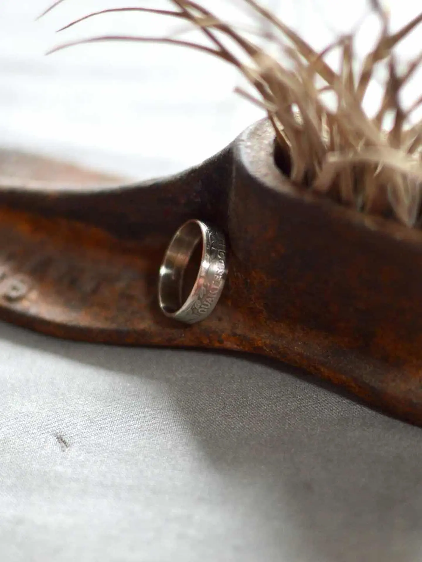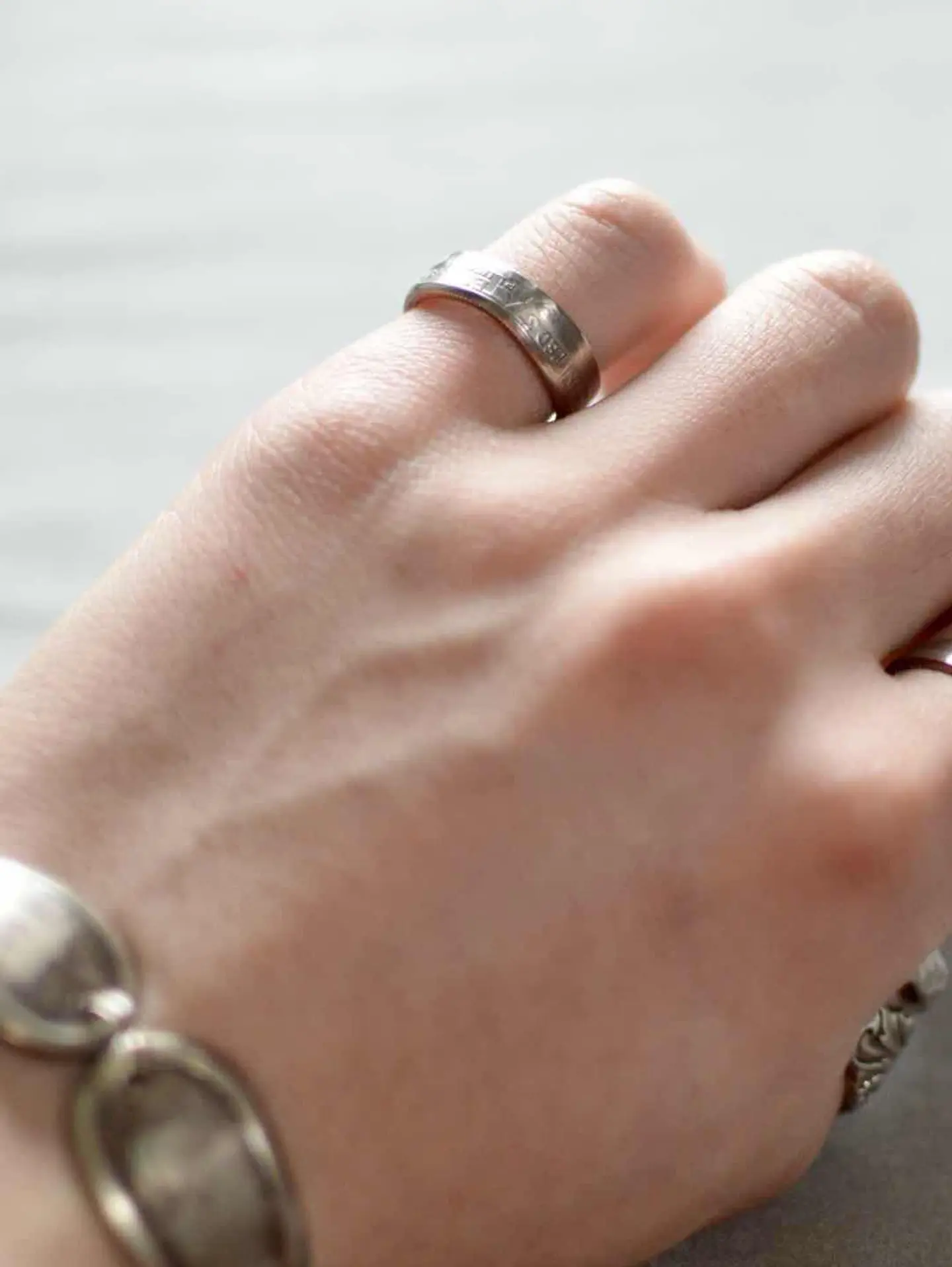 サイズ:16、18号 アメリカの25セントを加工し指輪へ。 多くの方に合う様、16号、18号 の 2サイズをご用意。 強過ぎないデザインで、付ける指によって 印象を変えたり、複数個付けたりと応用の利く 使い勝手のいいリングです。 ※傷や汚れあり。 ※指の形や指輪の形状により、普段着用出来る サイズでも着用出来ない場合がございます。 ※撮影状況により、実物と多少色が異なる場合があります。 ※古着を取り扱っているため、気付かない汚れ等がある場合がございます。 予めご了承ください。 ※サイズは着用感で選んでおり、表記サイズではございません。 古着 オーバーサイズ old vintage ヴィンテージ used 80's 90's アメリカ古着 ユーロ古着 メンズ レディース POLO RALPH LAUREN Eddie Bauer OLD GAP Eddie Bauer LANDS' END ランズエンド LLBean エルエルビーン オールドギャップ エディーバウアー ラルフローレン ブルックスブラザーズ Brooks Brothers シルバーリング アクセサリー スプーンリング キーリング などがお好きな方 #vintage #オーバーサイズ #old #used #90s #80s #古着 #ヴィンテージ #アメリカ古着 #ユーロ古着 #古着男子 #古着女子 #LLBean #エルエルビーン #EddieBauer #エディーバウアー #oldgap #オールドギャップ #LANDSEND #ランズエンド #NAUTICA #ノーティカ #ラルフローレン #POLORALPHLAUREN #ブルックスブラザーズ #BrooksBrothers #アクセサリー #リング #スプーンリング #スーベニア #指輪 #コインリング