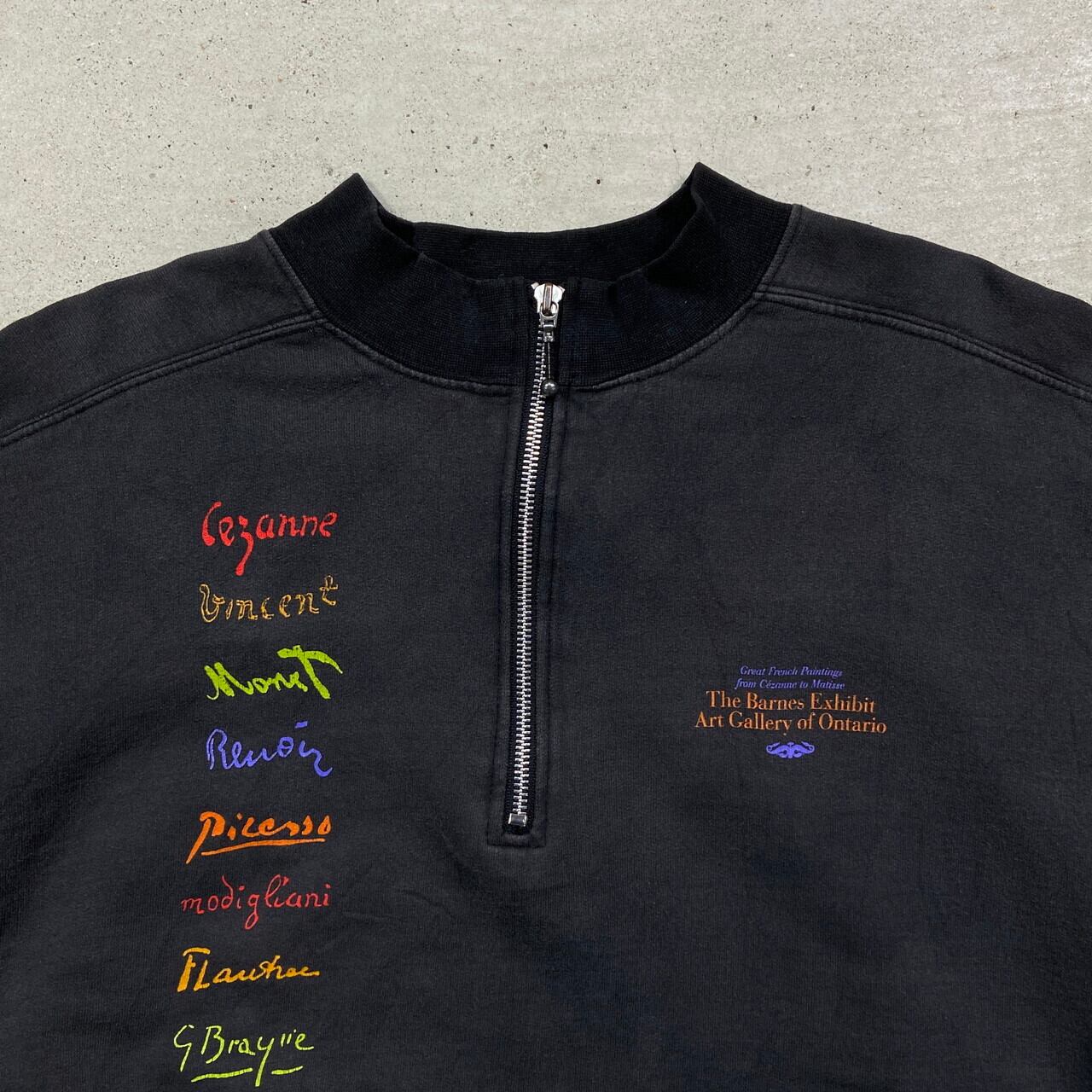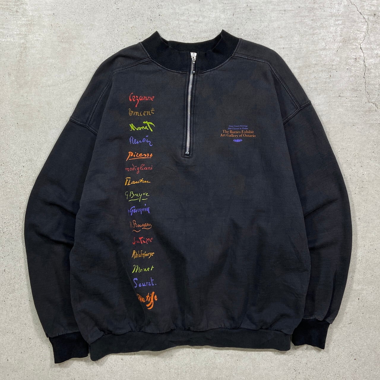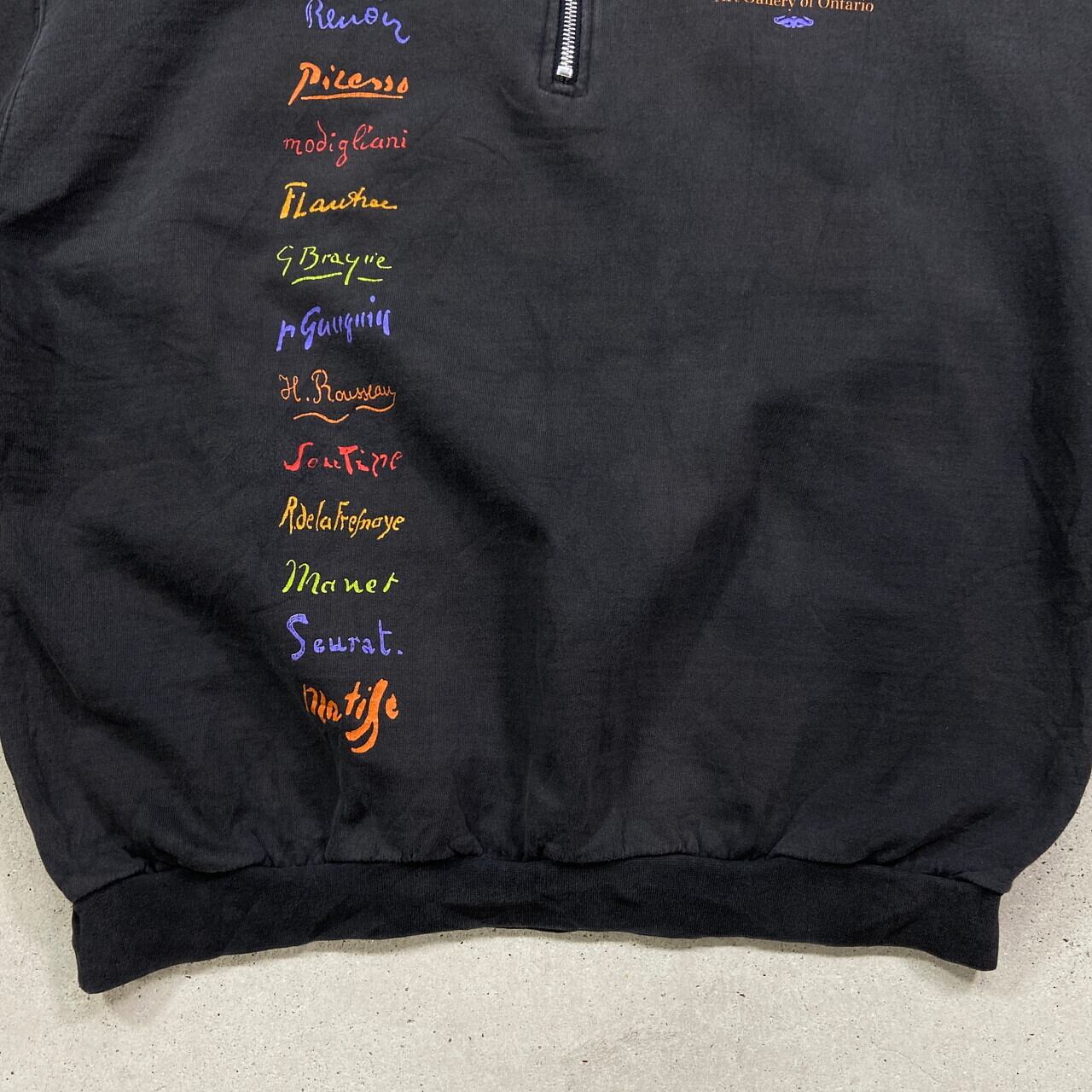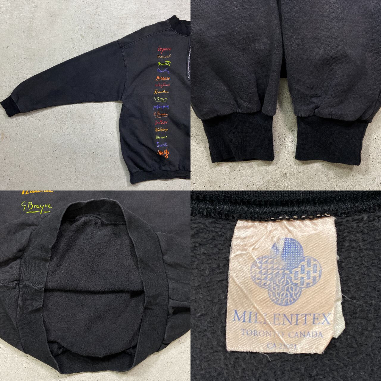 ■90年代 The Barnes Exhibit Art Gallery of Ontario ハーフジップスウェットシャツ アート メンズL相当 古着 90s ヴィンテージ VINTAGE ツートンカラー フェードブラック 墨黒 【スウェット】/ブラック ◎カナダのオンタリオ美術館のスーベニアスウェット ゴッホやピカソ、ルノアールやモネなど有名画家のサインが連ねられた一味違った角度のアート系スウェット ハーフジップになっていたりとデザイン性が高いのもポイントです。 【ブランド】MILLENITEX 【サイズ】表記 M(着用感メンズL相当) ※計測値をご確認ください。 着丈…64 身幅…63 肩幅…61 袖丈…55.5 【生産国】カナダ製 【素材】コットン100% 【状態】全体的にフェード、背中にリペア跡等の使用感がございます。 画像にてご確認ください。 【c250102028】 ※古着は洗濯、検品などのケアを行っております。(新品・デッドストックは洗濯していません。) ※モニターの発色により実物と異なる場合がございます。予めご了承ください。 ※ 海外直輸入USED品になります。