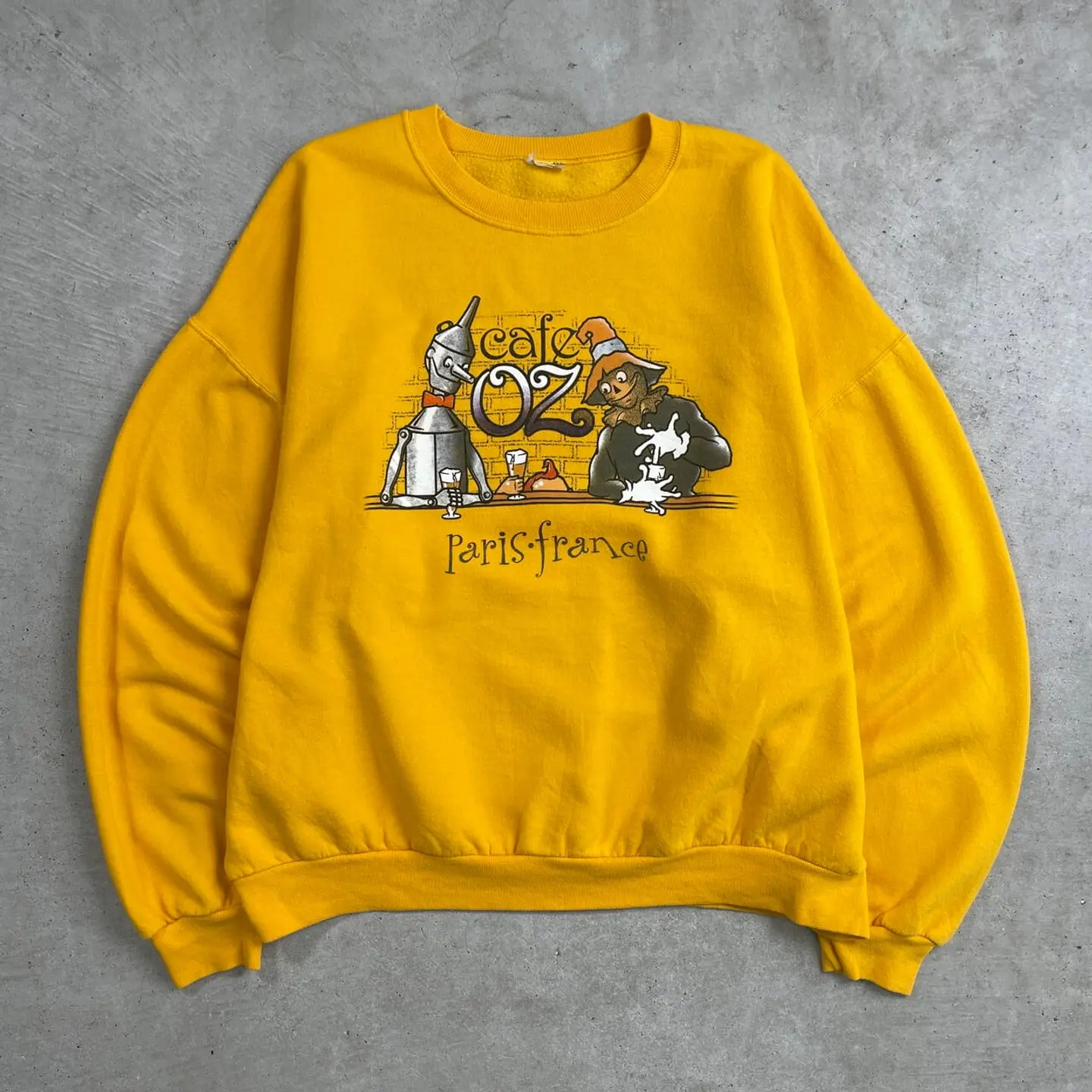 ■00年代 CAFE OZ PARIS オズの魔法使い スウェットシャツ キャラクター 企業ロゴプリント メンズ2XL相当 古着 00s Y2K ヴィンテージ VINTAGE ムービー 映画 トレーナー 黄色 ビッグサイズ 大きいサイズ【スウェット】/イエロー 【ブランド】JERZEES ジャージーズ 【サイズ】表記 不明(着用感メンズ2XL相当) ※計測値をご確認ください。 着丈…64.5 身幅…70 肩幅…71 袖丈…58 【生産国】不明 【素材】不明(おそらくコットン,ポリエステルの混紡かと思われます。) 【状態】多少の使用感はございますが、 目立った汚れやダメージ等は無くまだまだ長く愛用していただけます。 画像にてご確認ください。 【c250102025】 ※古着は洗濯、検品などのケアを行っております。(新品・デッドストックは洗濯していません。) ※モニターの発色により実物と異なる場合がございます。予めご了承ください。 ※ 海外直輸入USED品になります。