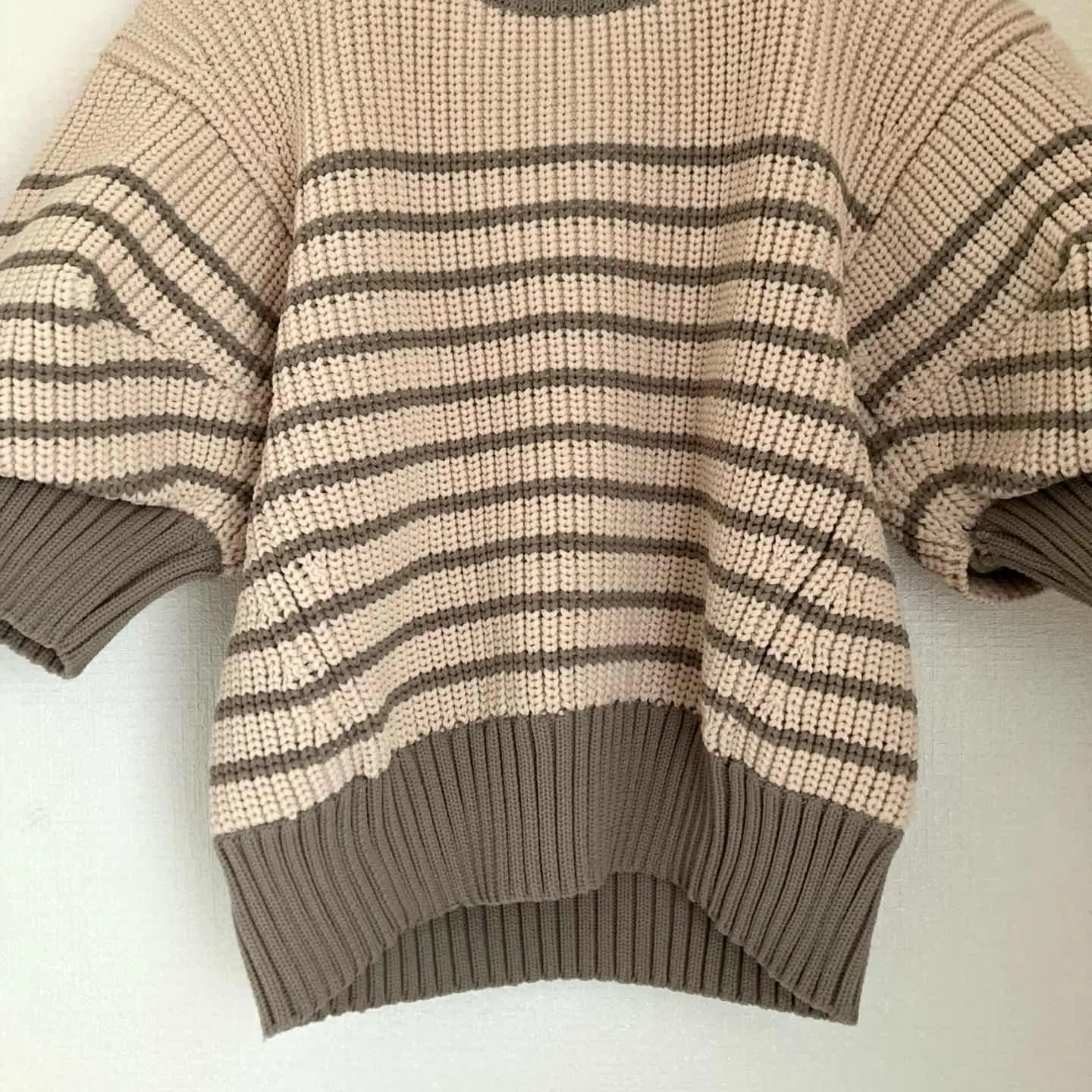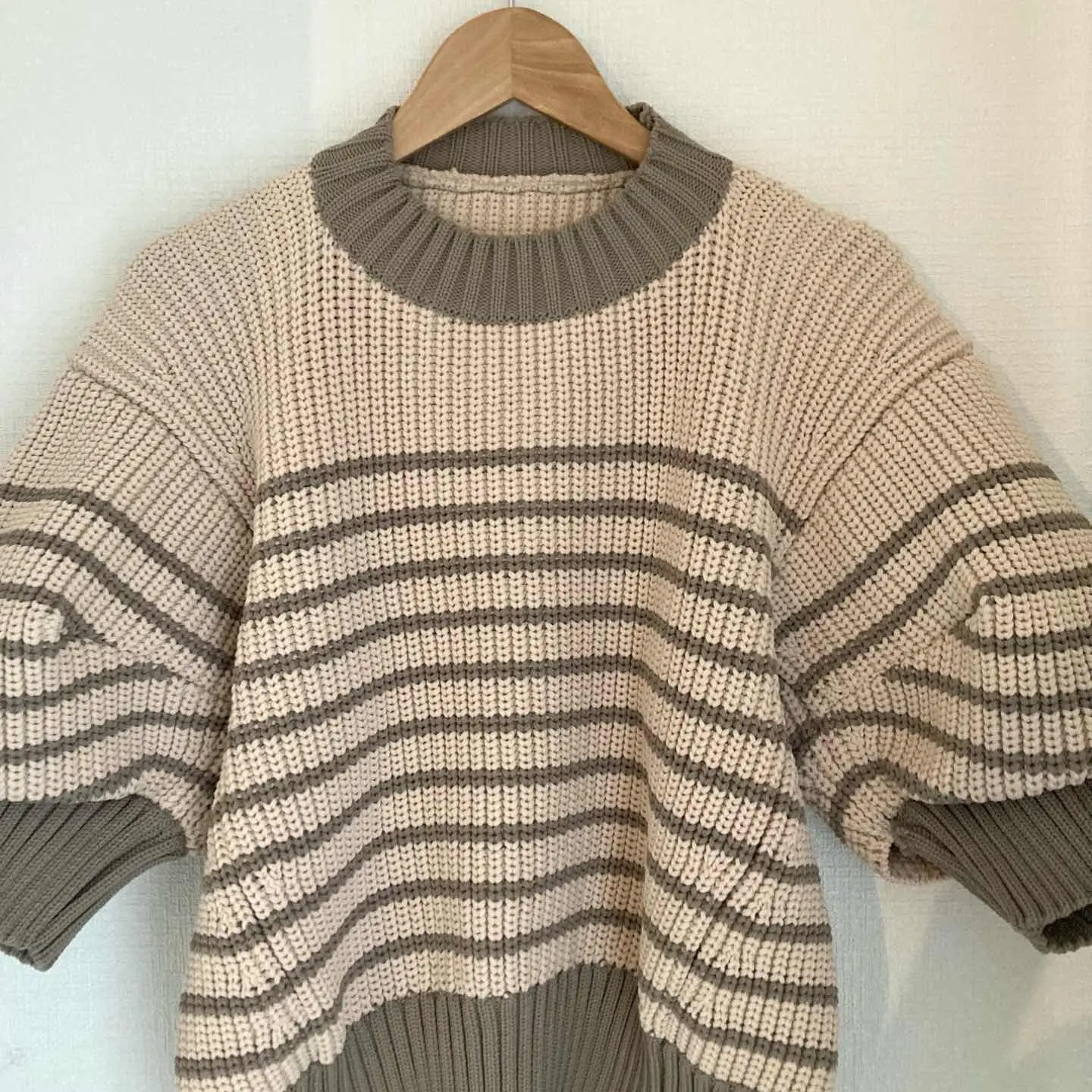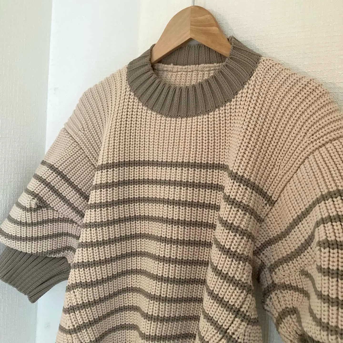デザイン -特徴的なボーダーデザインが目を引く魅力的なアイテムです!半袖のクルーネックスタイルとバルーンスリーブが組み合わされており、軽やかさと華やかさを兼ね備えています。 -着心地も良く、日常使いから特別なシーンまで幅広くご利用いただけます! コーディネート - デニムやスカートとの組み合わせが楽しめ、カジュアルシーンでのコーディネートにぴったりです!シンプルなボトムスとも相性が良く、多様なスタイルにフィットします。 - スニーカーやサンダルでカジュアルダウンすることができ、またエレガントなパンプスとの組み合わせで、少しドレッシーな印象も楽しめます。 ブランド sacai サカイ 商品名 sacai サカイ ボリュームスリーブ ニット セーター ボーダー 半袖 クルーネック バルーンスリーブ 日本製 2 サイズ 2サイズ 肩幅49㎝ 身幅49㎝ 袖丈29㎝ カラー ベージュ系 #ABY280 #ふくしるべのニット
