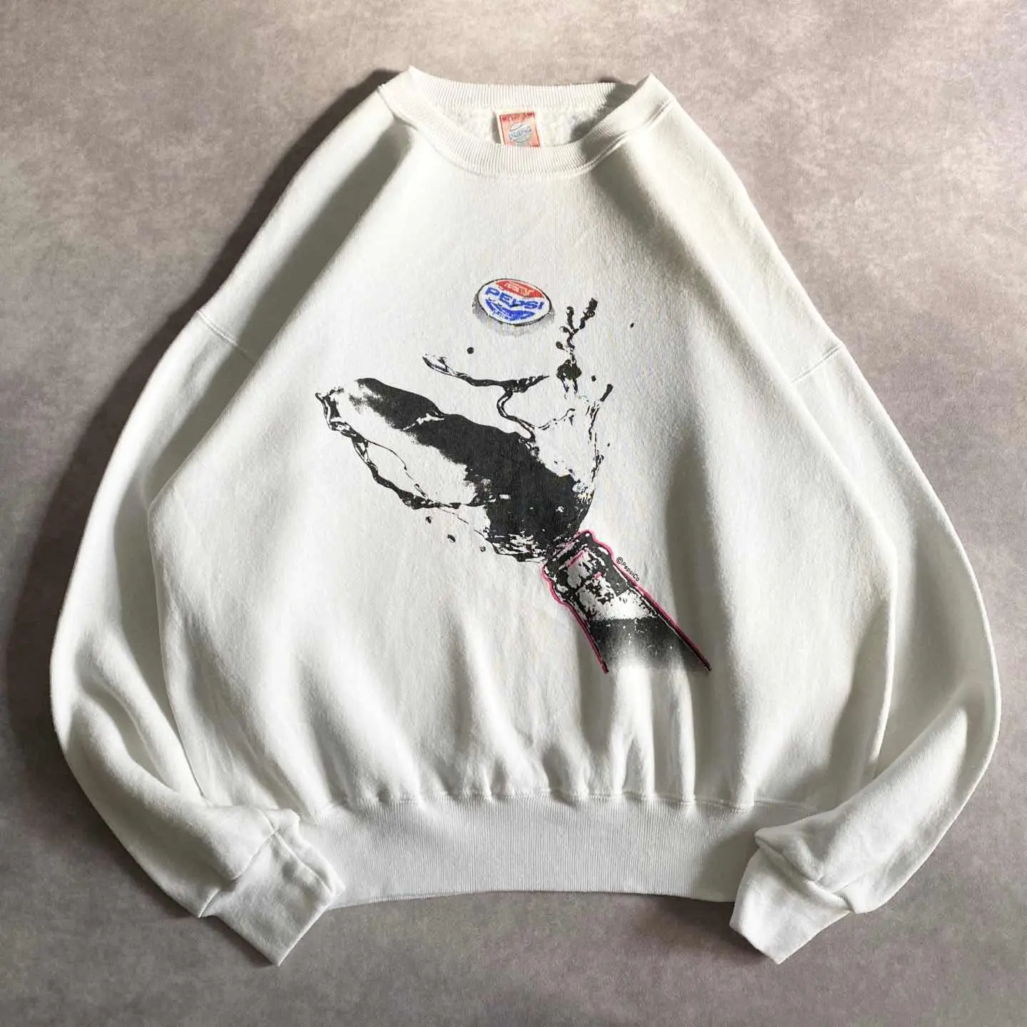 ○商品説明 80s PEPSI 【Special】 最高すぎますね。 勢いよく栓を開けたのでしょうか。 PEPSIが飛び出しています笑 このシーンをプリントするとはセンス抜群ですね笑 コピーライトもしっかりあります。 ビビッときた方は是非。 ○サイズ 表記 M(L相当) 平置き ・肩幅65cm ・身幅62cm ・袖丈56cm ・着丈63cm ○商品の状態 B A:使用感がほとんどなく、汚れやシミもなし B:多少使用感はあるが、汚れやシミも少ない C:使用感があり、汚れやシミがある D:使用感があり、大きな汚れや破れあり ○色 ホワイト #80s#PEPSI#ペプシ#アート#スウェットトレーナー