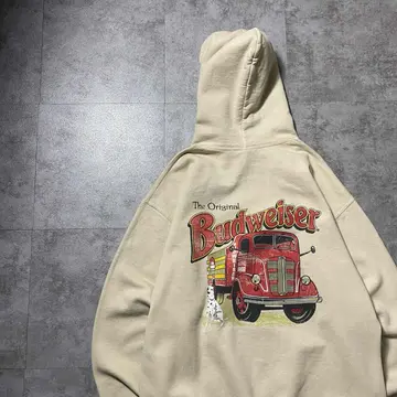 バドワイザー バックプリント コピーライト2021 ベージュ スウェット パーカー フーディ