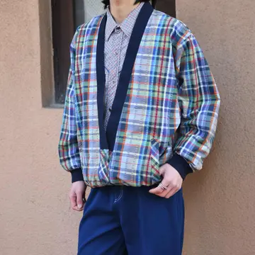 古着 シアサッカー マドラスチェック ブルゾン カーディガン チェック柄