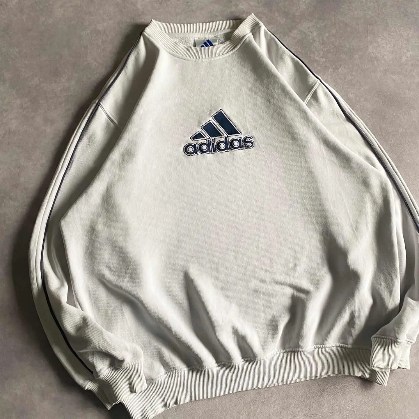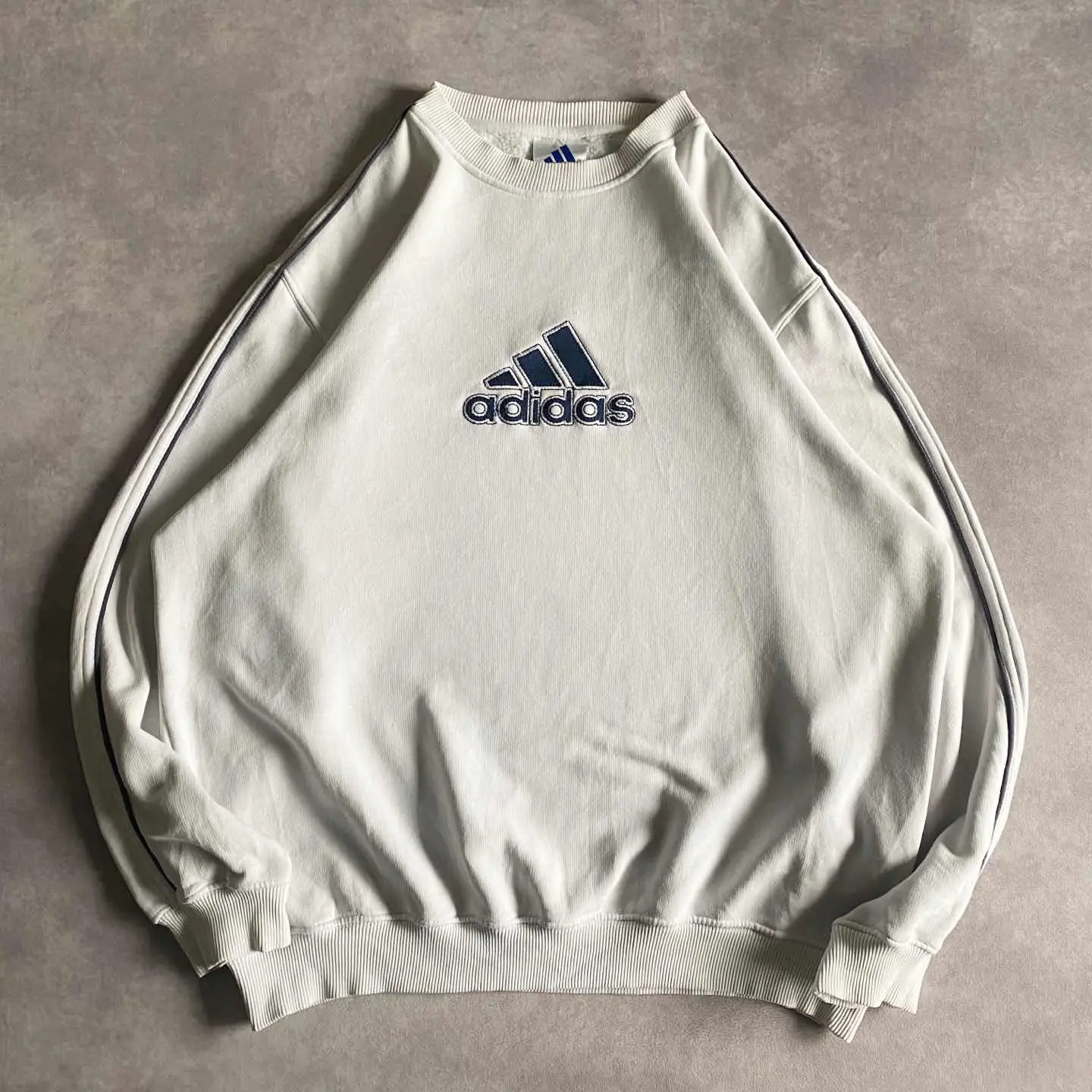 ○商品説明 90s adidas 人気な一枚かと。 どう見ても可愛いですね。 お探しの方は是非。 ○サイズ 表記 XL相当 平置き ・肩幅53cm ・身幅64cm ・袖丈61cm ・着丈68cm ○商品の状態 B A:使用感がほとんどなく、汚れやシミもなし B:多少使用感はあるが、汚れやシミも少ない C:使用感があり、汚れやシミがある D:使用感があり、大きな汚れや破れあり ○色 ホワイトクリーム #90s#adidas#アディダス#スウェットトレーナー