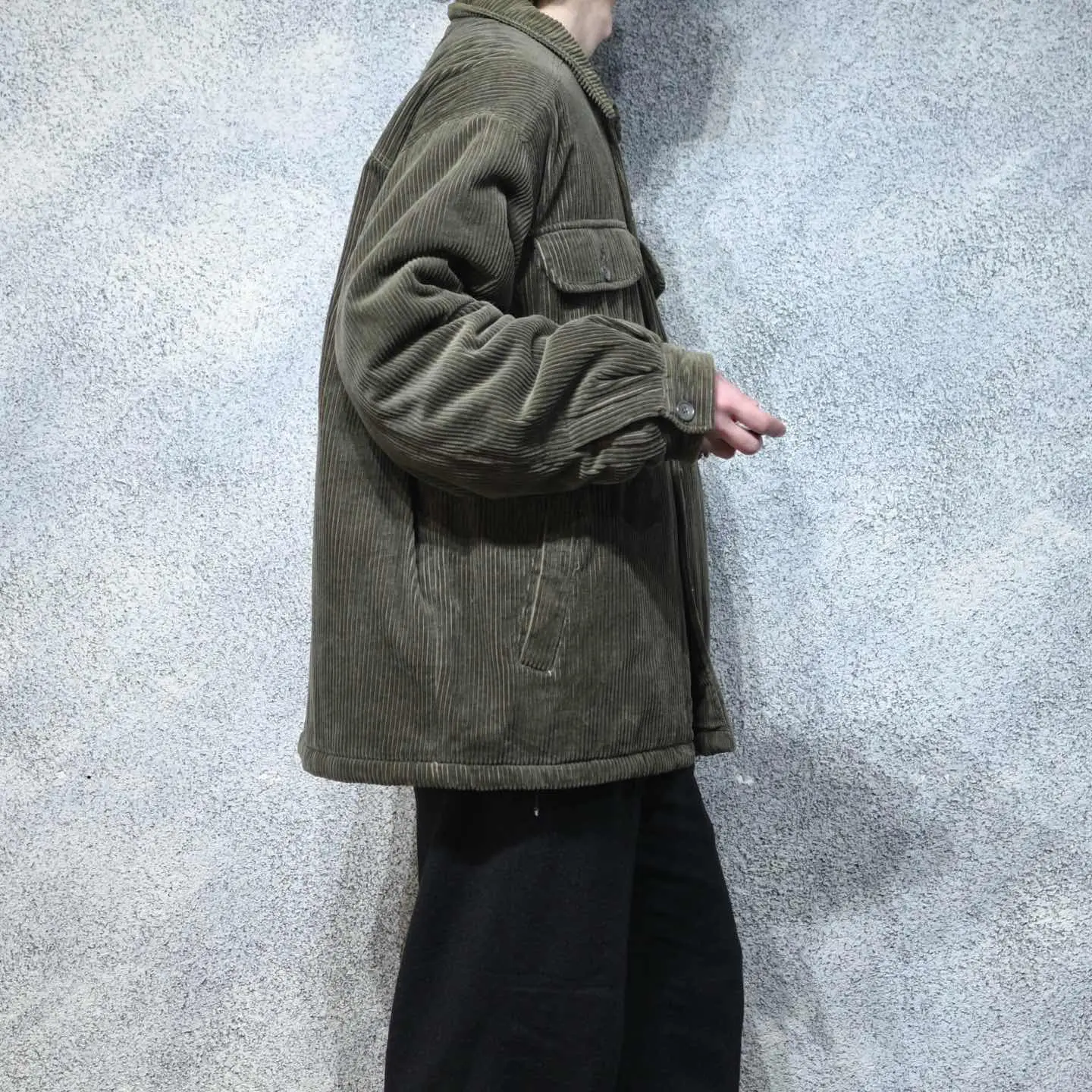 着丈77cm 肩幅60cm 身幅73cm 袖丈67cm fabric/cotton 着用画像 177cm/64kg 裏地はフリース素材でキルティングという、 冬でも暖かく過ごせるコーデュロイジャケット。 インナーに合わせるアイテムの丈を気にせず、 カバっと着れるサイズ感で扱い易いのが◎ 太畝コーデュロイで、生地に表情があり コーデに奥行きが出るのもポイントが高い。 キレイめにも、野暮ったくも合わせることが出来る 万能なジャケットです。 ※撮影状況により、実物と多少色が異なる場合が ございます。 ※古着を取り扱っているため、気づかない汚れや ほつれ等がある場合がございます。 予めご了承ください。 ※サイズは着用感で選んでおり、表記サイズではございません。 古着 オーバーサイズ old vintage ヴィンテージ used 80's 90's アメリカ古着 ユーロ古着 メンズ レディース POLO RALPH LAUREN Eddie Bauer OLD GAP Eddie Bauer LANDS' END ランズエンド LLBean エルエルビーン オールドギャップ エディーバウアー ラルフローレン ブルックスブラザーズ Brooks Brothers カーキ 緑 キルティング フリース などがお好きな方 #vintage #オーバーサイズ #old #used #90s #80s #古着 #ヴィンテージ #アメリカ古着 #ユーロ古着 #古着男子 #古着女子 #LLBean #エルエルビーン #EddieBauer #エディーバウアー #oldgap #オールドギャップ #LANDSEND #ランズエンド #NAUTICA #ノーティカ #ラルフローレン #POLORALPHLAUREN #ブルックスブラザーズ #BrooksBrothers #ジャケット #カバーオール #コーデュロイジャケット