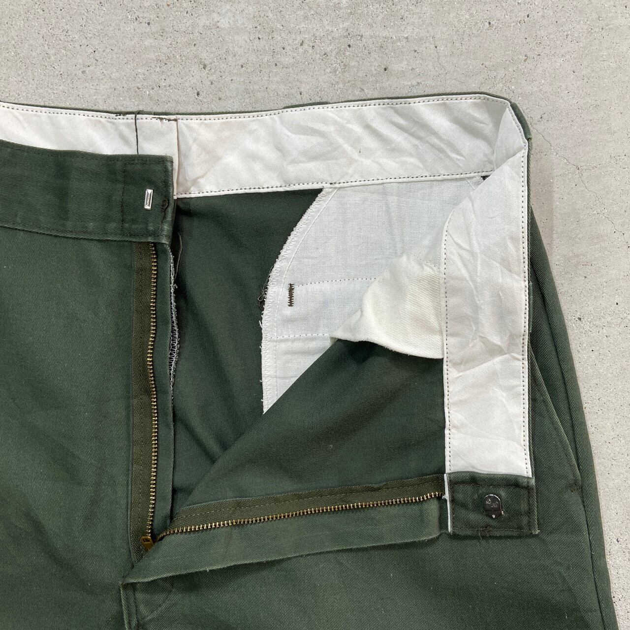 ■ 90年代 USA製 Dickies ディッキーズ ワークパンツ メンズW38 古着 アメカジ 90s VINTAGE ヴィンテージ 拡張ウエスト 大きいサイズ BIGSIZE セージグリーン カーキ【ワークパンツ】/カーキグリーン 【ブランド】Dickies ディッキーズ 【サイズ】表記 W38 L28 ※計測値をご確認ください。 ウエスト(平置き×2)…94 ワタリ幅…36 股上…34 股下…69 裾幅…24 【生産国】USA製 【素材】ポリエステル65% コットン35% 【状態】全体的に色あせやキズがあります。 バックサイドにダメージホールが2か所ほどございます。 画像にてご確認ください。 【c250114201】 ※古着は洗濯、検品などのケアを行っております。(新品・デッドストックは洗濯していません。) ※モニターの発色により実物と異なる場合がございます。予めご了承ください。 ※ 海外直輸入USED品になります。