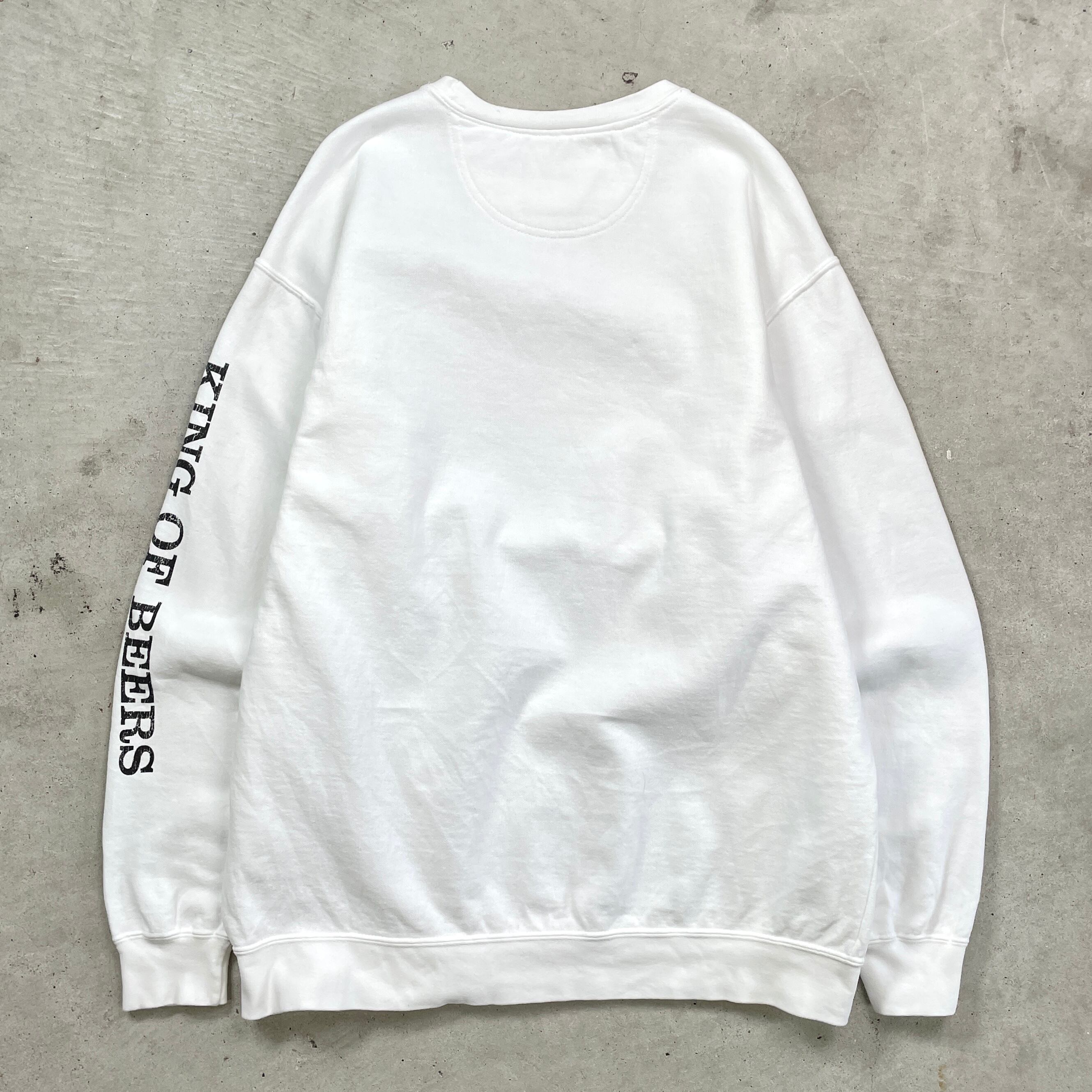 ■ BUDWEISER バドワイザー ロゴプリント スウェットシャツ メンズL 古着 アメカジ KING OF BEERS ビール 白色【スウェット】/ホワイト 【ブランド】COMFORT COLORS 【サイズ】表記 L ※計測値をご確認ください。 着丈…73 身幅…62 肩幅…57.5 袖丈…63.5 【生産国】ホンジュラス製 【素材】コットン80%、ポリエステル20% 【状態】多少袖口や背中に汚れが御座います。 画像にてご確認ください。 【c250114119】 ※古着は洗濯、検品などのケアを行っております。(新品・デッドストックは洗濯していません。) ※モニターの発色により実物と異なる場合がございます。予めご了承ください。 ※ 海外直輸入USED品になります。