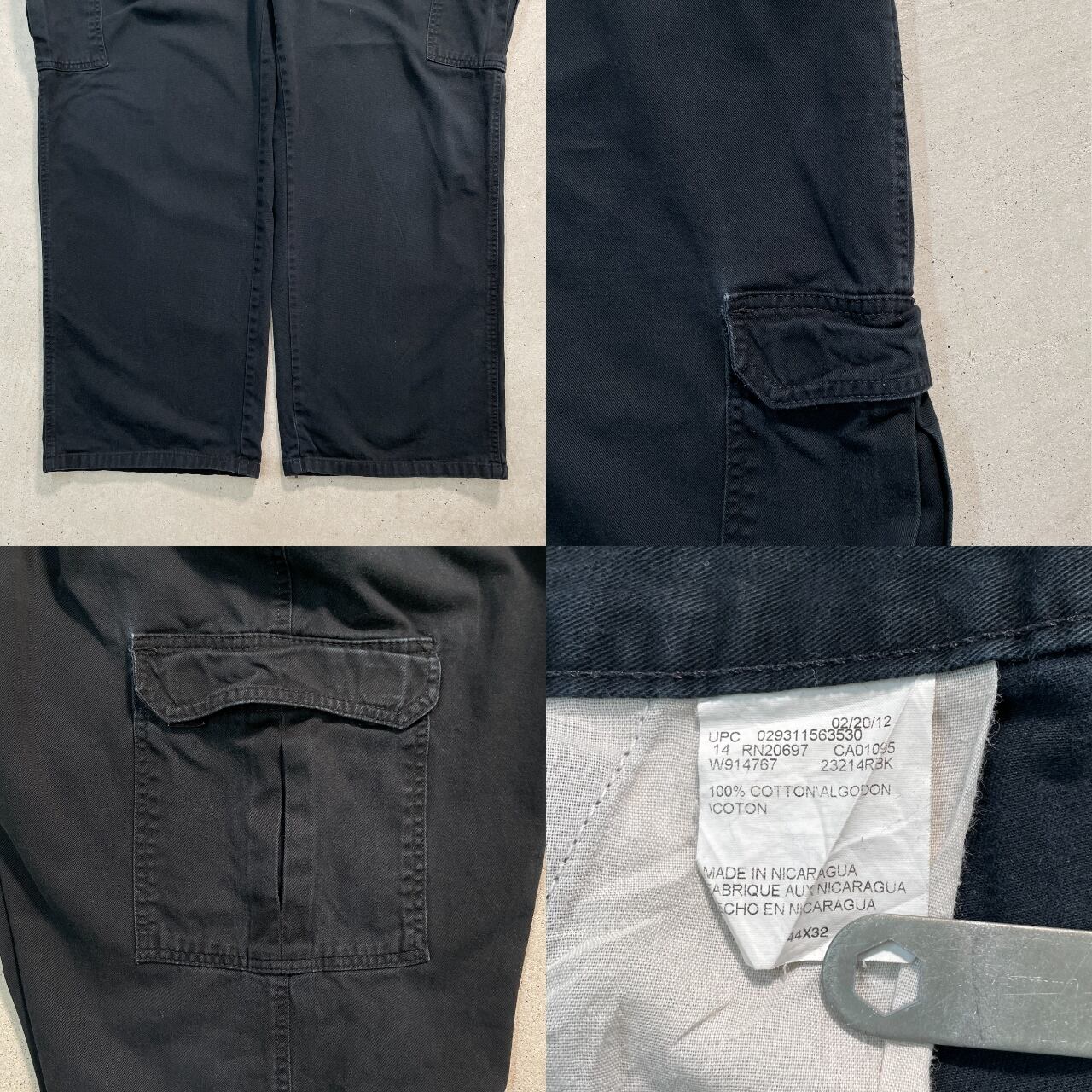 ■Dickies ディッキーズ ワークパンツ サイドカーゴパンツ メンズW44 古着 アメカジ 大きいサイズ BIGSIZE 黒【ワークパンツ】/ブラック 【ブランド】Dickies ディッキーズ 【サイズ】表記 44×32 ※計測値をご確認ください。 ウエスト(平置き×2)…112 ワタリ幅…38 股上…34.5 股下…78 裾幅…29 【生産国】ニカラグア製 【素材】ポリエステル65% コットン35% 【状態】全体的に色あせや擦れが御座います。 またサイドポケットに多少の汚れが御座います。 画像にてご確認ください。 【c250113118】 ※古着は洗濯、検品などのケアを行っております。(新品・デッドストックは洗濯していません。) ※モニターの発色により実物と異なる場合がございます。予めご了承ください。 ※ 海外直輸入USED品になります。