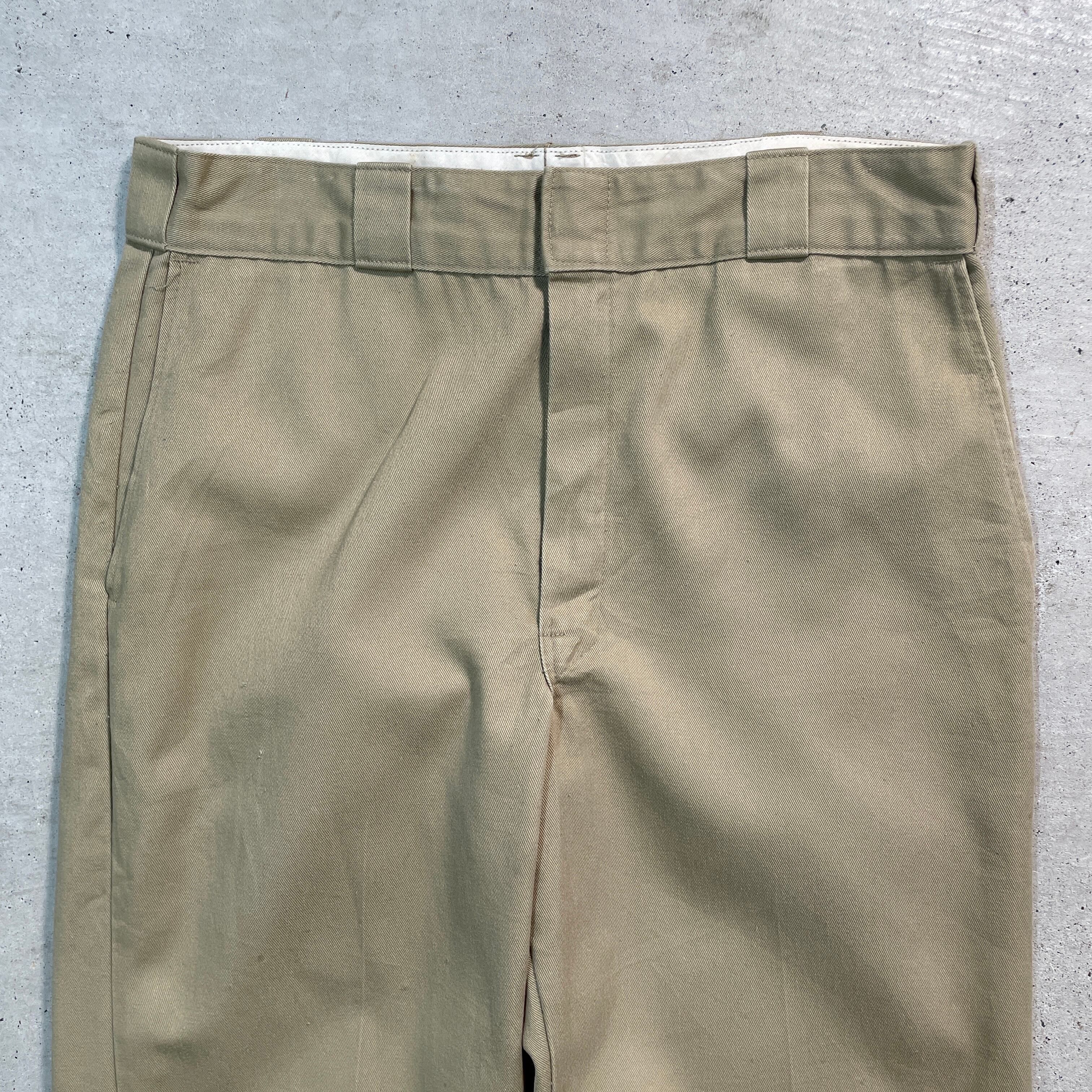 ■90年代 USA製 Dickies ディッキーズ ワークパンツ 拡張ウエスト メンズW33相当 古着 アメカジ 90s VINTAGE ヴィンテージ サンドベージュ【ワークパンツ】/ベージュ 【ブランド】Dickies ディッキーズ ◎内タグは欠損していますがtalonジップや拡張ウエストでUSA製と判断いたしました。 【サイズ】表記 33×30 ※計測値をご確認ください。 ウエスト(平置き×2)…88 ワタリ幅…30 股上…31 股下…72 裾幅…23 【生産国】USA製 【素材】ポリエステル65% コットン35% 【状態】正面膝付近に小さな汚れや擦れなど使用感が御座います。 画像にてご確認ください。 【c250113112】 ※古着は洗濯、検品などのケアを行っております。(新品・デッドストックは洗濯していません。) ※モニターの発色により実物と異なる場合がございます。予めご了承ください。 ※ 海外直輸入USED品になります。