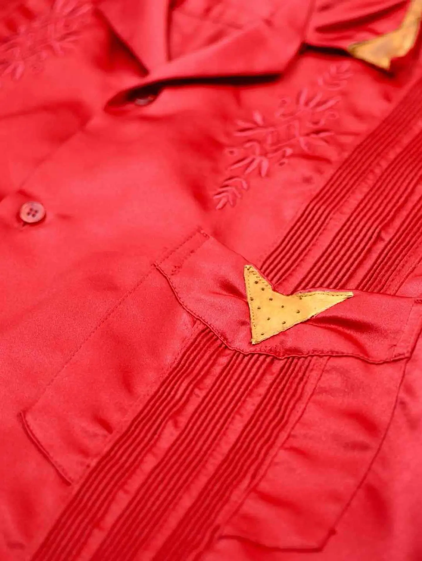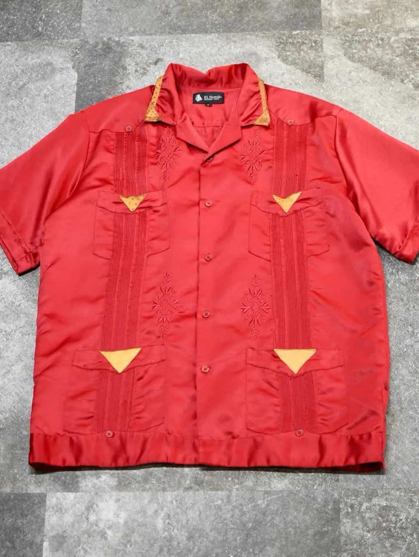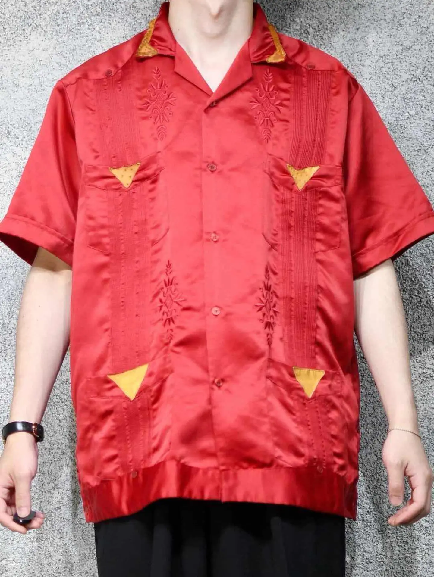 着丈72cm 肩幅52cm 身幅61cm 袖丈25cm fabric/poly 着用画像 177cm/64kg これを着たいと思える人がいるかどうか、 それももちろん大事な事ですが、 純粋に"服"として、"古着"として。 需要があるかどうかだけで判断する価値は なんだか寂しい気がします。 キューバシャツをサテンの生地で表現し、 レザーまであしらわれた、スペシャルな逸品。 "このシャツ面白い"そんな着る着ないだけじゃない 楽しさを伝える用。 ※撮影状況により、実物と多少色が異なる場合があります。 ※古着を取り扱っているため、気づかない汚れやほつれ等がある場合がございます。 予めご了承ください。 ※サイズは着用感で選んでおり、表記サイズではございません。 古着 オーバーサイズ old vintage ヴィンテージ used 80's 90's アメリカ古着 ユーロ古着 メンズ レディース POLO RALPH LAUREN Eddie Bauer OLD GAP Eddie Bauer LANDS' END ランズエンド LLBean エルエルビーン オールドギャップ エディーバウアー ラルフローレン ブルックスブラザーズ Brooks Brothers 赤 レッド 開襟シャツ オープンカラーシャツ デザインシャツ などがお好きな方 #vintage #オーバーサイズ #old #used #90s #80s #古着 #ヴィンテージ #アメリカ古着 #ユーロ古着 #古着男子 #古着女子 #LLBean #エルエルビーン #EddieBauer #エディーバウアー #oldgap #オールドギャップ #LANDSEND #ランズエンド #NAUTICA #ノーティカ #ラルフローレン #POLORALPHLAUREN #ブルックスブラザーズ #BrooksBrothers #キューバシャツ #サテンシャツ #オープンカラーシャツ #半袖シャツ #デザインシャツ