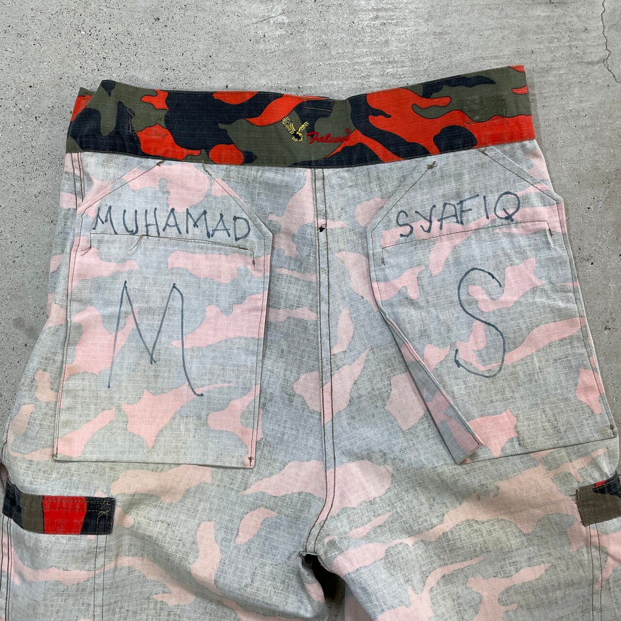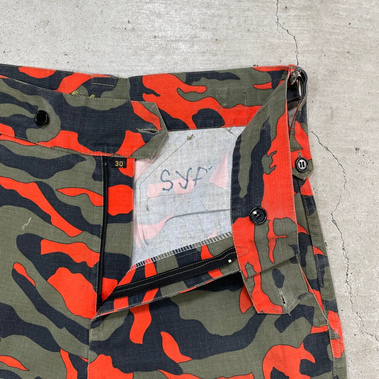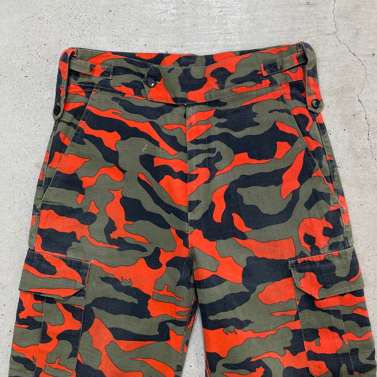 ■ マレーシア軍 KADET BOMBA 消防 ミリタリーパンツ カモフラパンツ メンズW30 古着 リップストップ カーゴパンツ 迷彩 オリーブグリーン ブラック オレンジ 【ミリタリーパンツ】/マルチカラー 【サイズ】表記 不明(実寸約W30 L27) ※計測値をご確認ください。 ウエスト(平置き×2)…76 ワタリ幅…30.5 股上…32.5 股下…68.5 裾幅…22 【生産国】不明 【素材】不明(おそらくコットンかと思われます。) 【状態】多少の擦れ、薄汚れ等の使用感がございます。 画像にてご確認ください。 【c250108016】 ※古着は洗濯、などのケアを行っております。(新品・デッドストックは洗濯していません。) ※モニターの発色により実物と異なる場合がございます。予めご了承ください。 ※ 海外直輸入USED品になります。