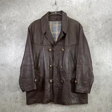50~60年代 フランス レザー マッキノーコート メンズXL相当 古着 50s 60s VINTAGE ヴィンテージ コの字留め カーコート ユーロ 茶色