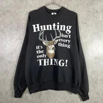 00年代 アニマルプリント スウェットシャツ メンズXL 古着 00s ヴィンテージ VINTAGE アメカジ トレーナー メッセージ シカ 黒