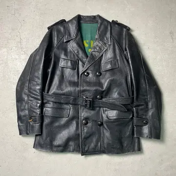 50年代 ポルトガル製 レザー モーターサイクルコート カーコート メンズM-L相当 古着 50s VINTAGE ヴィンテージ ダブルブレスト ハーフコート ユーロ 黒