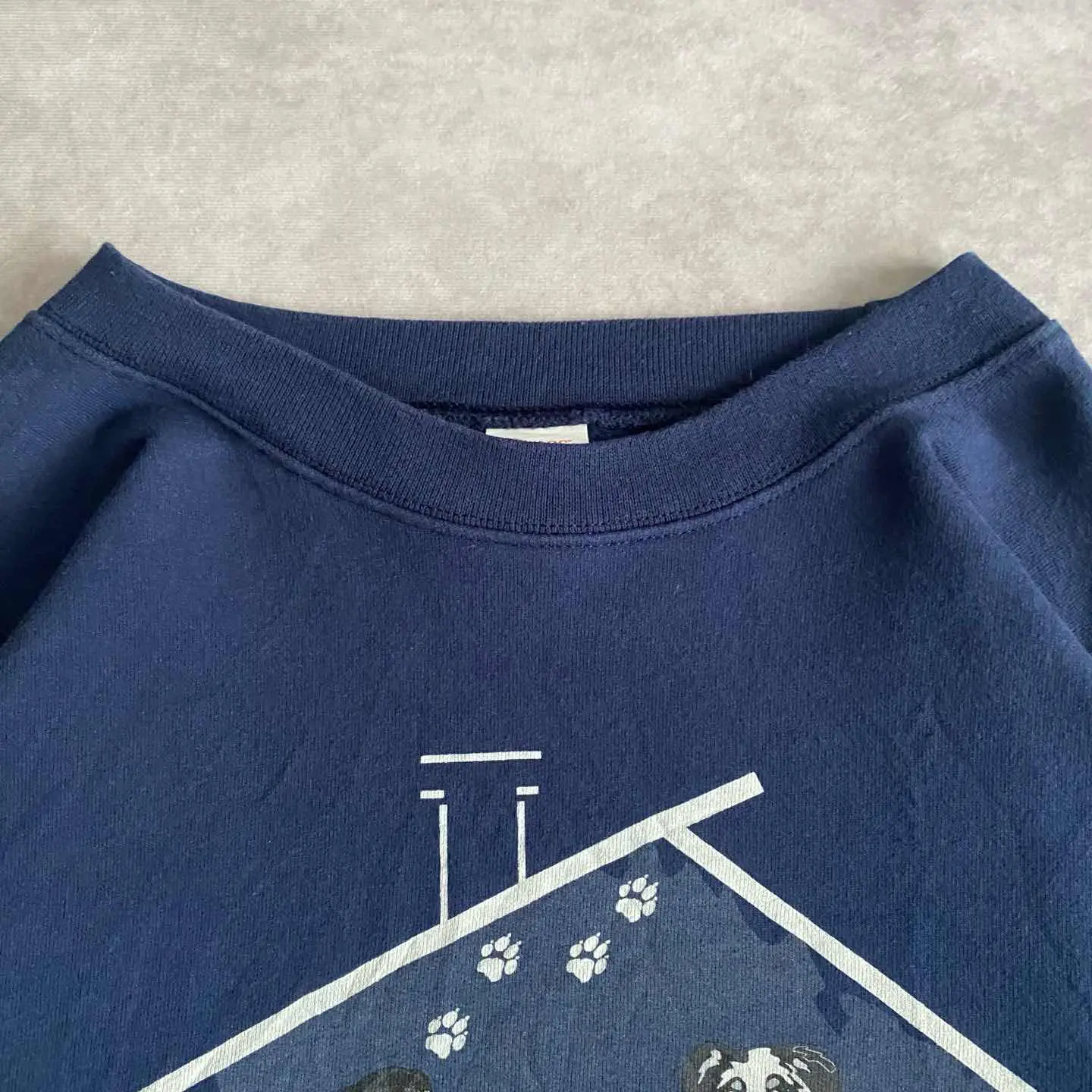 ○商品説明 Hanes 5種類の犬がプリントされた一枚。 可愛いですね〜 ビビッときた方は是非。 ○サイズ 表記XL 平置き ・肩幅71cm ・身幅72cm ・袖丈57cm ・着丈64cm ○商品の状態B A:使用感がほとんどなく、汚れやシミもなし B:多少使用感はあるが、汚れやシミも少ない C:使用感があり、汚れやシミがある D:使用感があり、大きな汚れや破れあり ○色 ネイビー #Hanes#ヘインズ#animal#スウェットトレーナー
