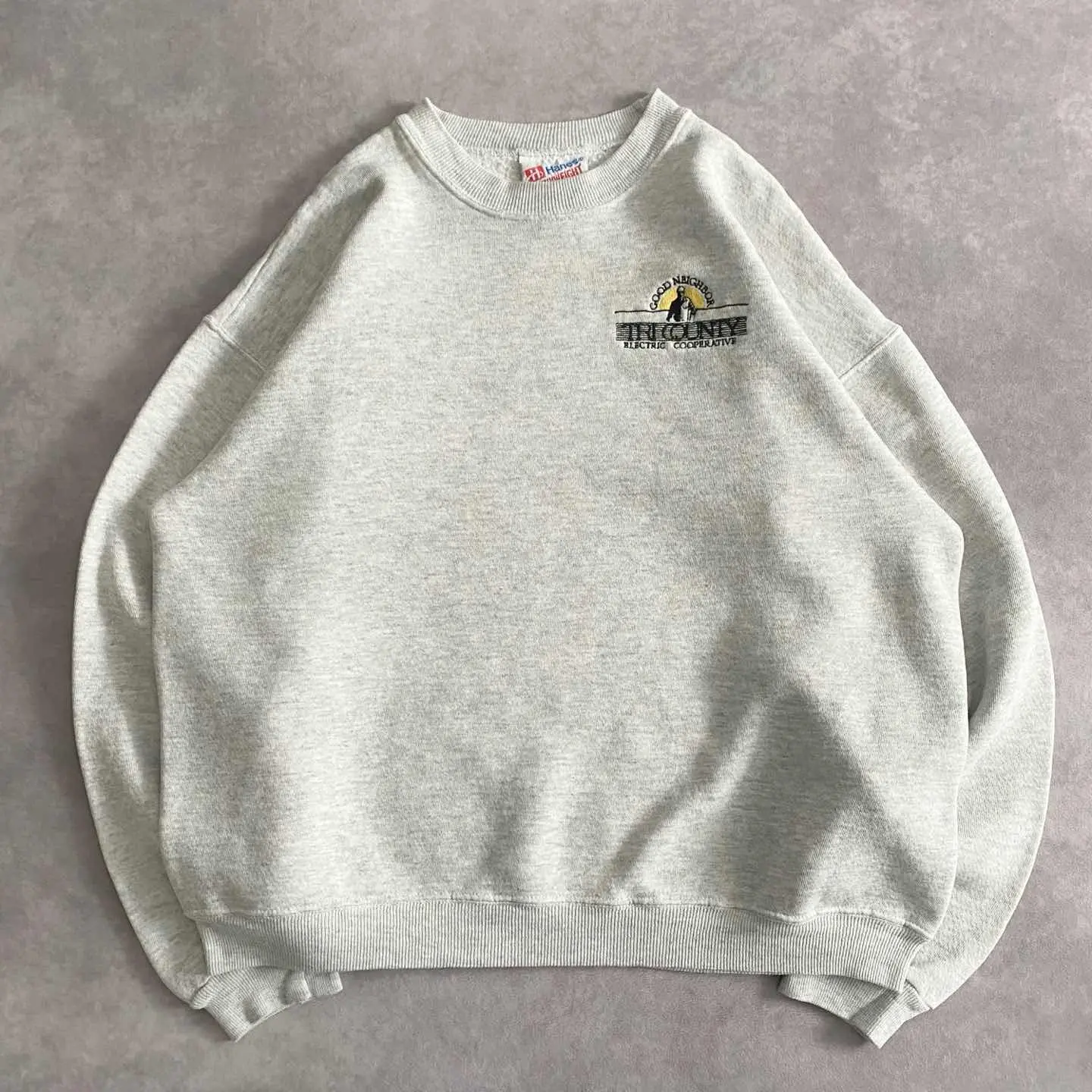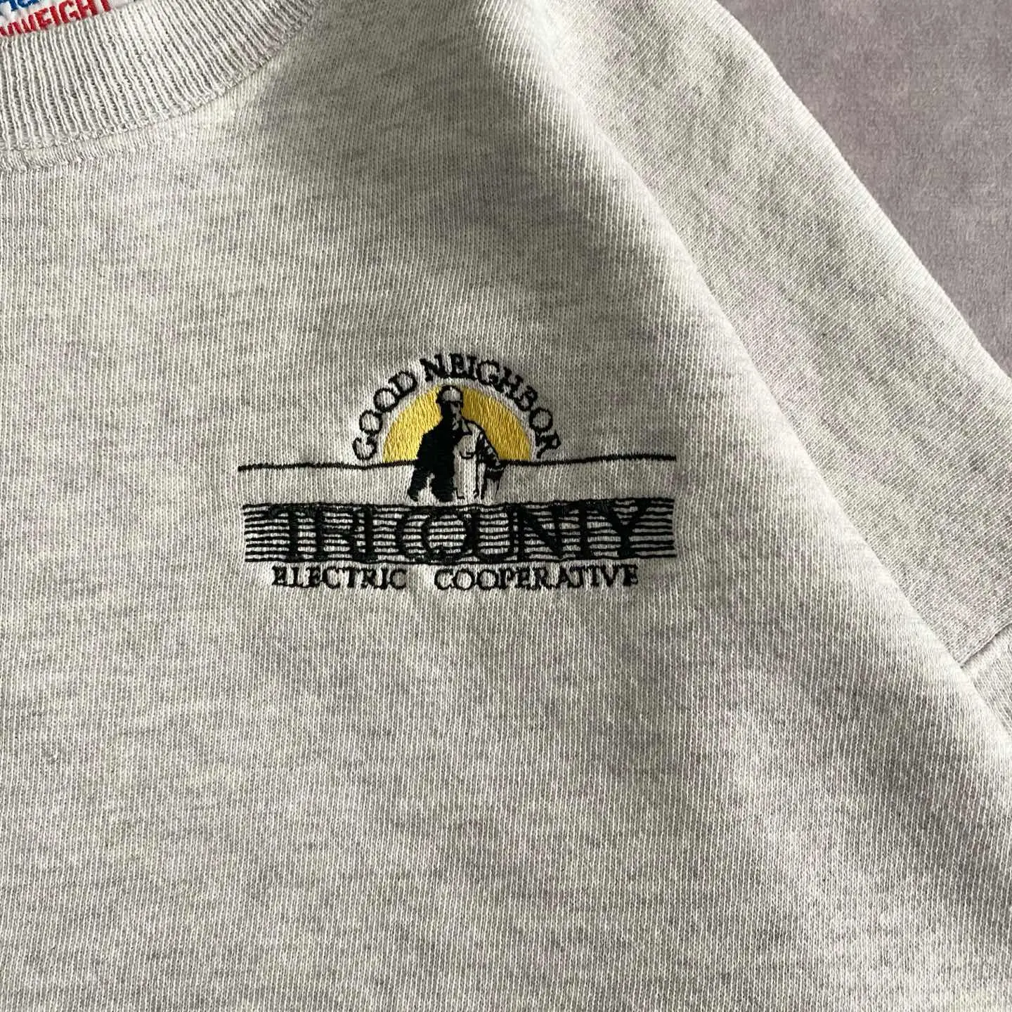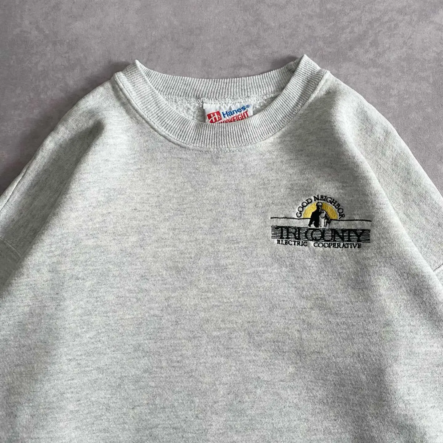 ○商品説明 90s USA製 Hanes 電気系の企業ものになります。 電気工事士の方でしょうかね? 是非。 ○サイズ 表記L 平置き ・肩幅59cm ・身幅58cm ・袖丈54cm ・着丈58cm ○商品の状態 B A:使用感がほとんどなく、汚れやシミもなし B:多少使用感はあるが、汚れやシミも少ない C:使用感があり、汚れやシミがある D:使用感があり、大きな汚れや破れあり ○色 霜降りグレー #90s#USA製#Hanes#ヘインズ#企業#スウェットトレーナー
