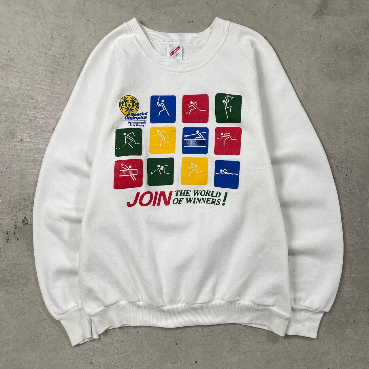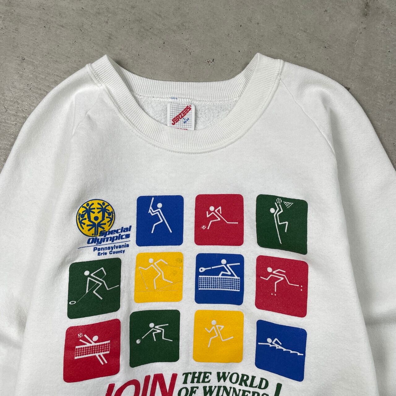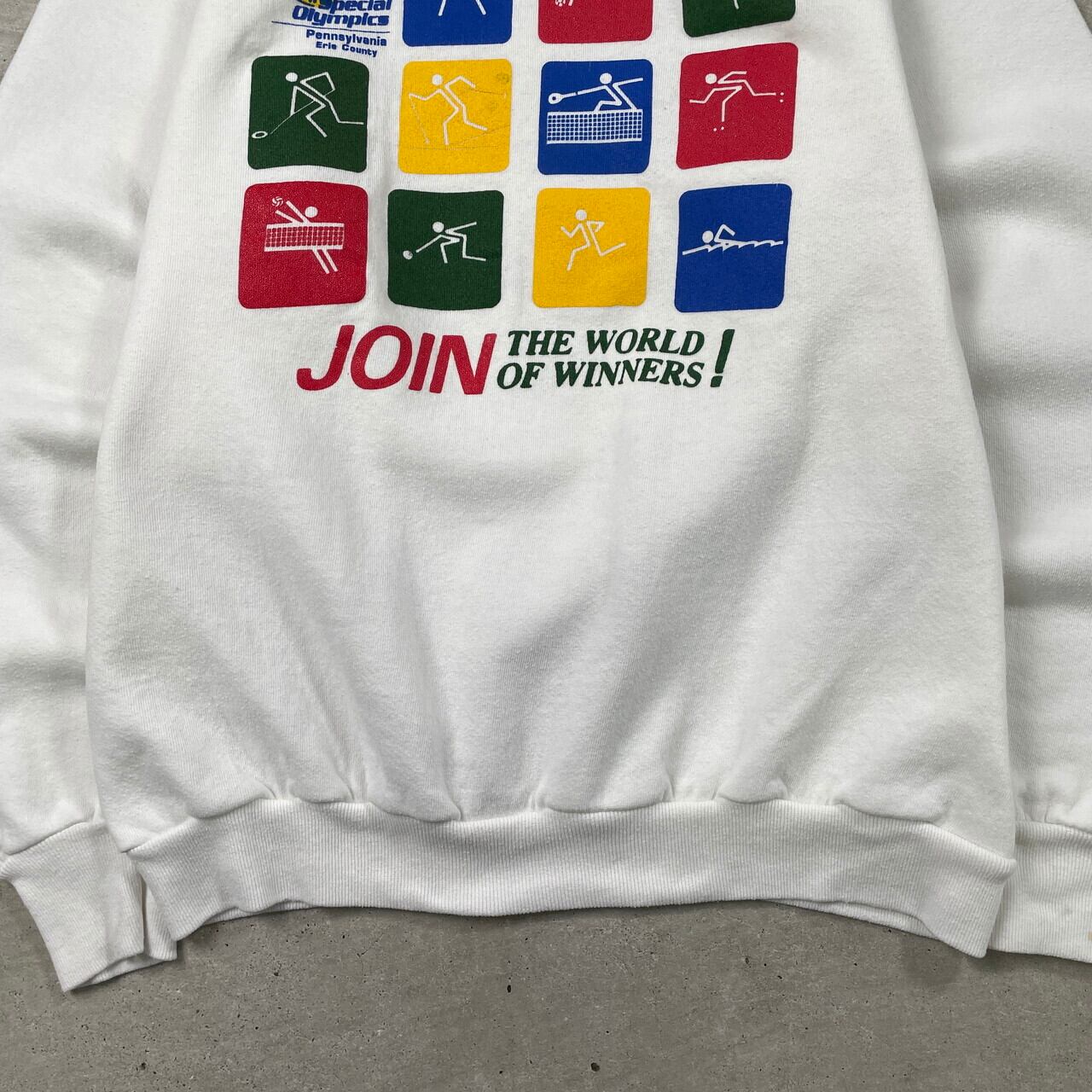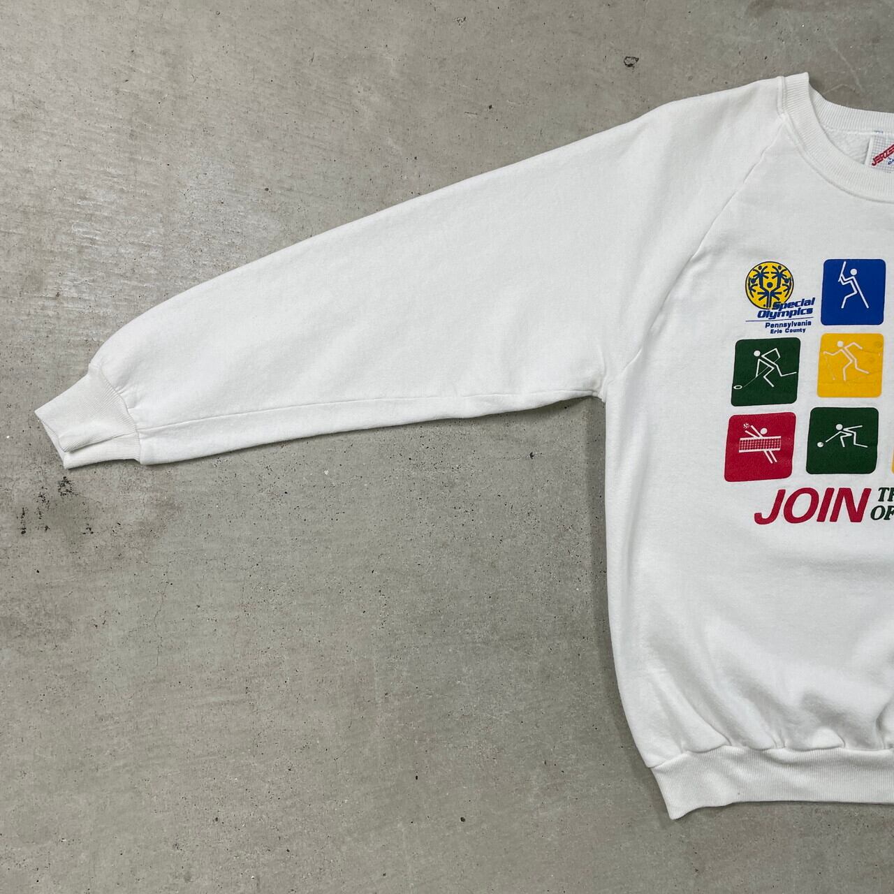 ■90年代 USA製 Special Olympics プリントスウェットシャツ メンズL 古着 ラグランスリーブ 90s ヴィンテージ VINTAGE スペシャルオリンピックス 白色【スウェット】/ホワイト 【ブランド】JERZEES ジャージーズ 【サイズ】表記 L 42-44 ※計測値をご確認ください。 着丈…61 身幅…54 裄丈…77 袖丈(脇下計測)…53 【生産国】USA製 【素材】 コットン50% ポリエステル50% 【状態】左袖に汚れがございます。 画像にてご確認ください。 【c250127165】 ※古着は洗濯、検品などのケアを行っております。(新品・デッドストックは洗濯していません。) ※モニターの発色により実物と異なる場合がございます。予めご了承ください。 ※ 海外直輸入USED品になります。