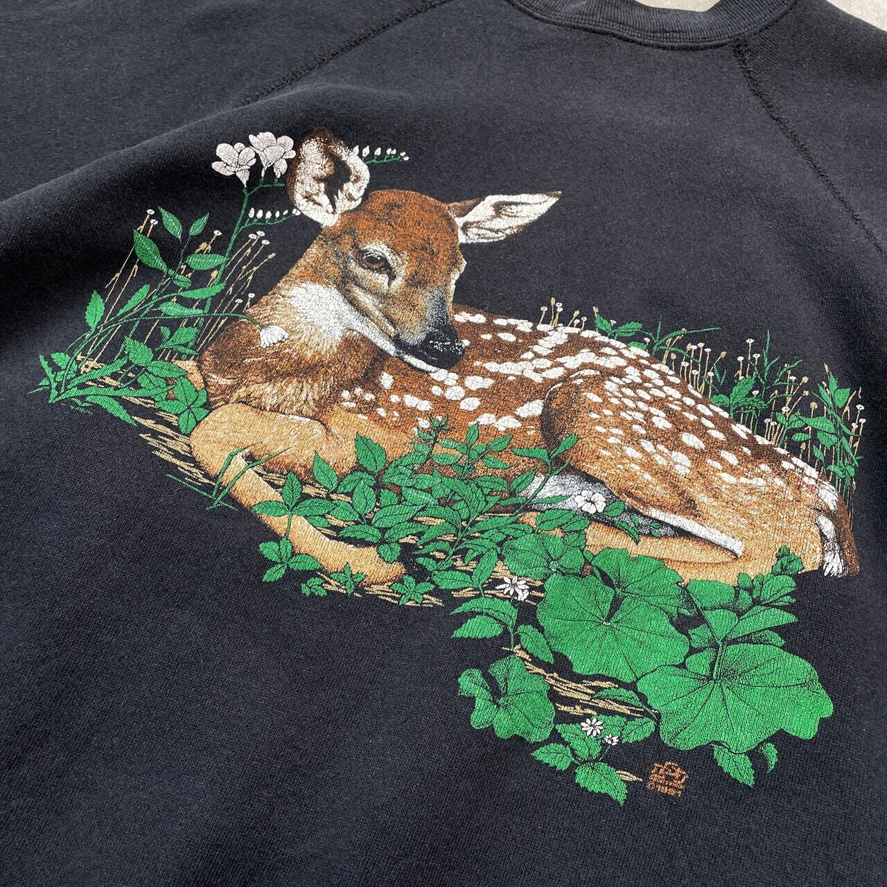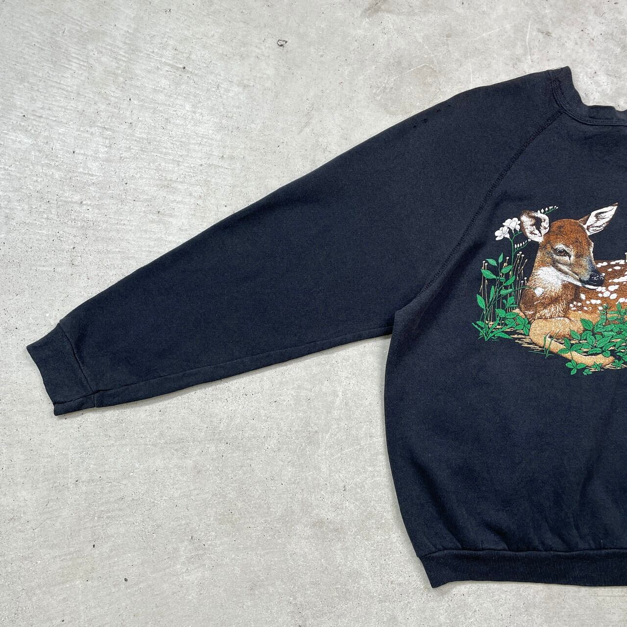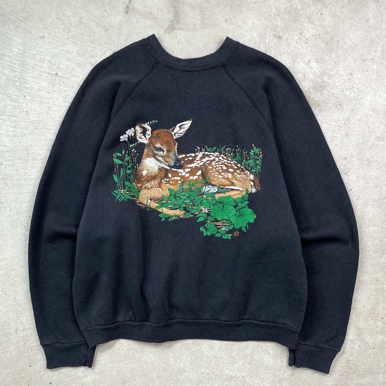 ■90年代 シカ アニマルプリント ラグランスウェットシャツ メンズM相当 レディース 古着 アメカジ 90s ヴィンテージ VINTAGE トレーナー 動物 フェードブラック 墨黒【スウェット】/ブラック 【ブランド】 不明 【サイズ】表記不明 (着用感メンズM相当) ※計測値をご確認ください。 着丈…56 身幅…57 裄丈…78 袖丈(袖下計測)…47.5 【生産国】不明 【素材】不明(おそらくコットン,ポリエステルの混紡かと思われます。) 【状態】右肩付近に小穴等の使用感がございます。 画像にてご確認ください。 【c250121019】 ※古着は洗濯、検品などのケアを行っております。(新品・デッドストックは洗濯していません。) ※モニターの発色により実物と異なる場合がございます。予めご了承ください。 ※ 海外直輸入USED品になります。