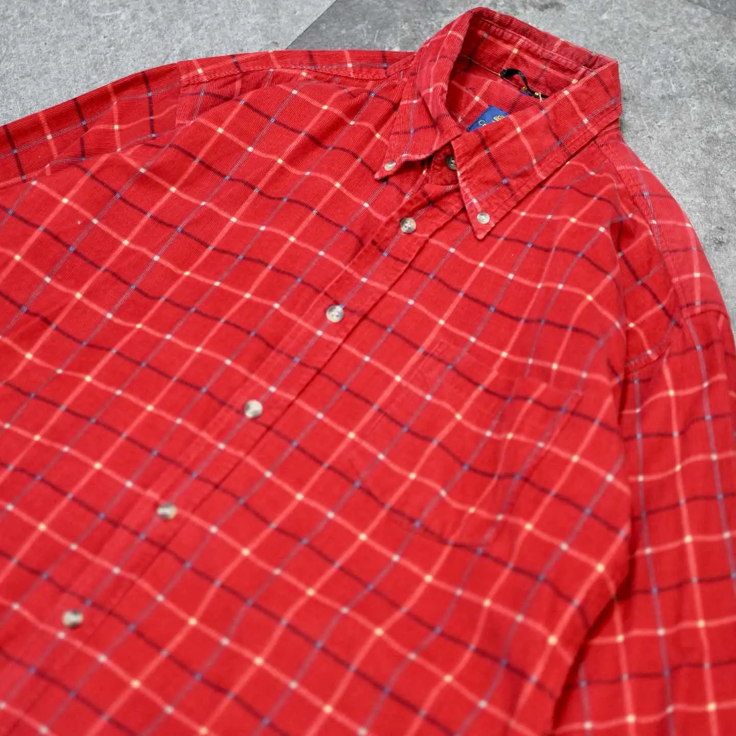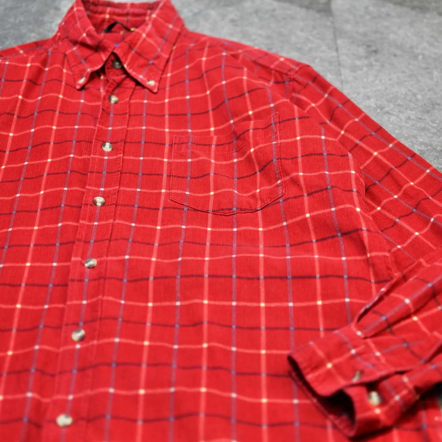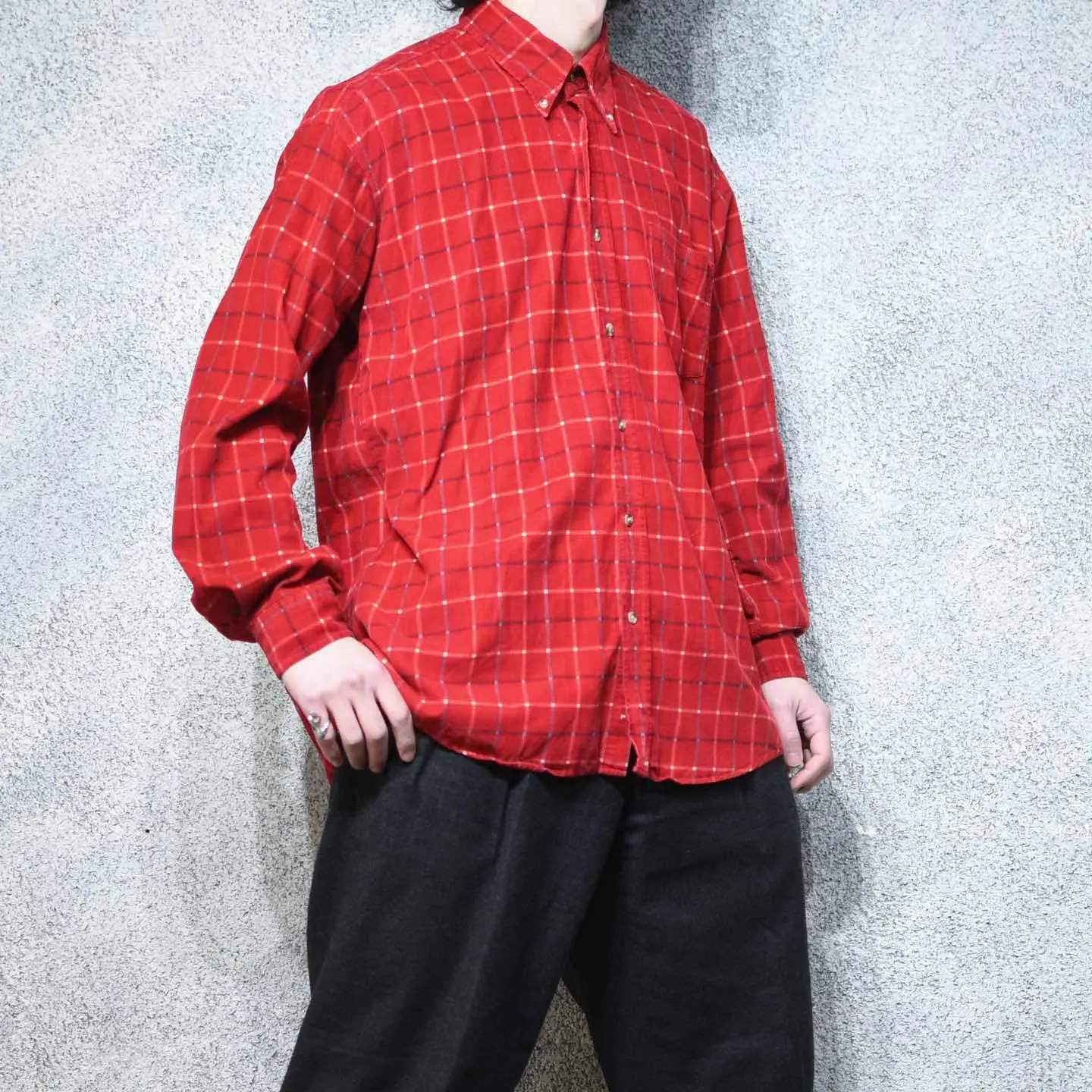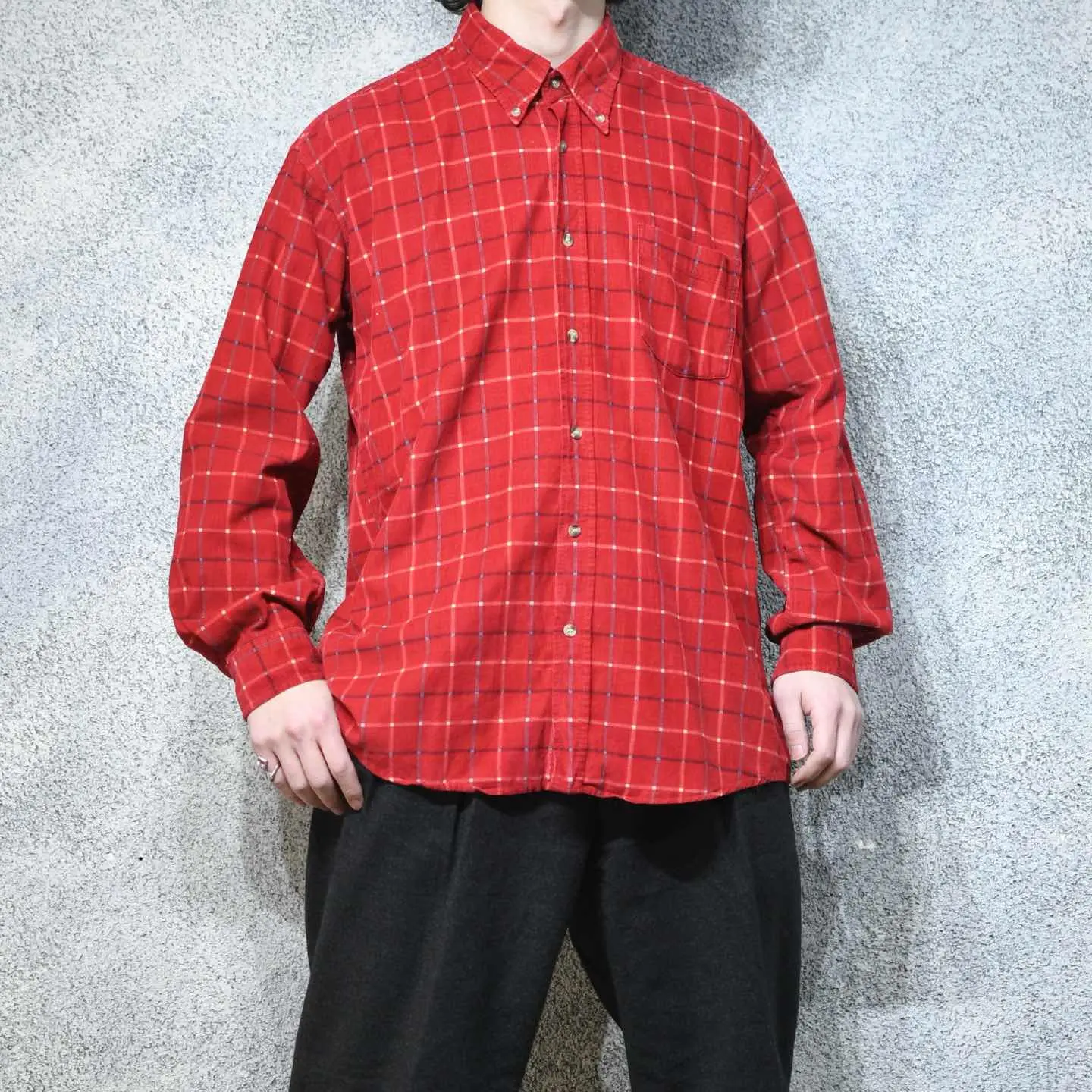 着丈74cm(前)82cm(後) 肩幅53cm 身幅62cm 袖丈62cm fabric/質感よりcotton 着用画像 177cm/64kg チェックシャツが持ち合わせる、 カジュアルな印象やアメカジらしいイメージを ボタンダウンや細畝コーデュロイの上品さで 中和した、個性派シャツ。 一見喧嘩しそうなディテールと柄ですが、 ひとつのアイテムとして上手くまとまりがあり、 インナーとして使っても、コーデ全体に 新しい印象を吹き込んでくれるのでは ないでしょうか。 ※撮影状況により、実物と多少色が異なる場合が ございます。 ※古着を取り扱っているため、気づかない汚れや ほつれ等がある場合がございます。 予めご了承ください。 ※サイズは着用感で選んでおり、表記サイズではございません。 古着 オーバーサイズ old vintage ヴィンテージ used 80's 90's アメリカ古着 ユーロ古着 メンズ レディース POLO RALPH LAUREN Eddie Bauer OLD GAP Eddie Bauer LANDS' END ランズエンド LLBean エルエルビーン オールドギャップ エディーバウアー ラルフローレン ブルックスブラザーズ Brooks Brothers 赤 レッド 長袖シャツ シャツ などがお好きな方 #vintage #オーバーサイズ #old #used #90s #80s #古着 #ヴィンテージ #アメリカ古着 #ユーロ古着 #古着男子 #古着女子 #LLBean #エルエルビーン #EddieBauer #エディーバウアー #oldgap #オールドギャップ #LANDSEND #ランズエンド #NAUTICA #ノーティカ #ラルフローレン #POLORALPHLAUREN #ブルックスブラザーズ #BrooksBrothers #コーデュロイシャツ #ボタンダウンシャツ #チェックシャツ #長袖シャツ #シャツ