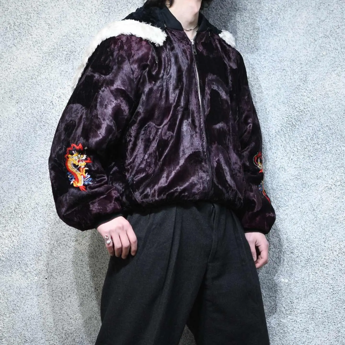 古着 PHAT premium レーヨン混 ベロア ワイドパンツ スラックス