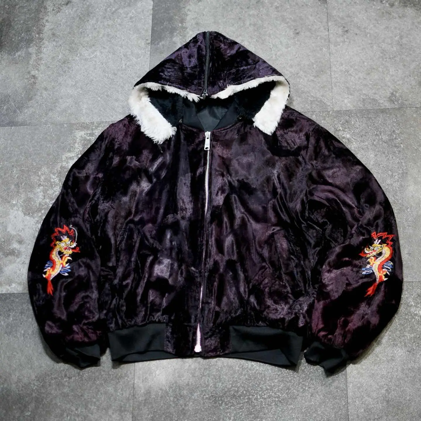 古着 レイヤード ベロア テーラードジャケット 裏地サーマル フーディ ブラウン