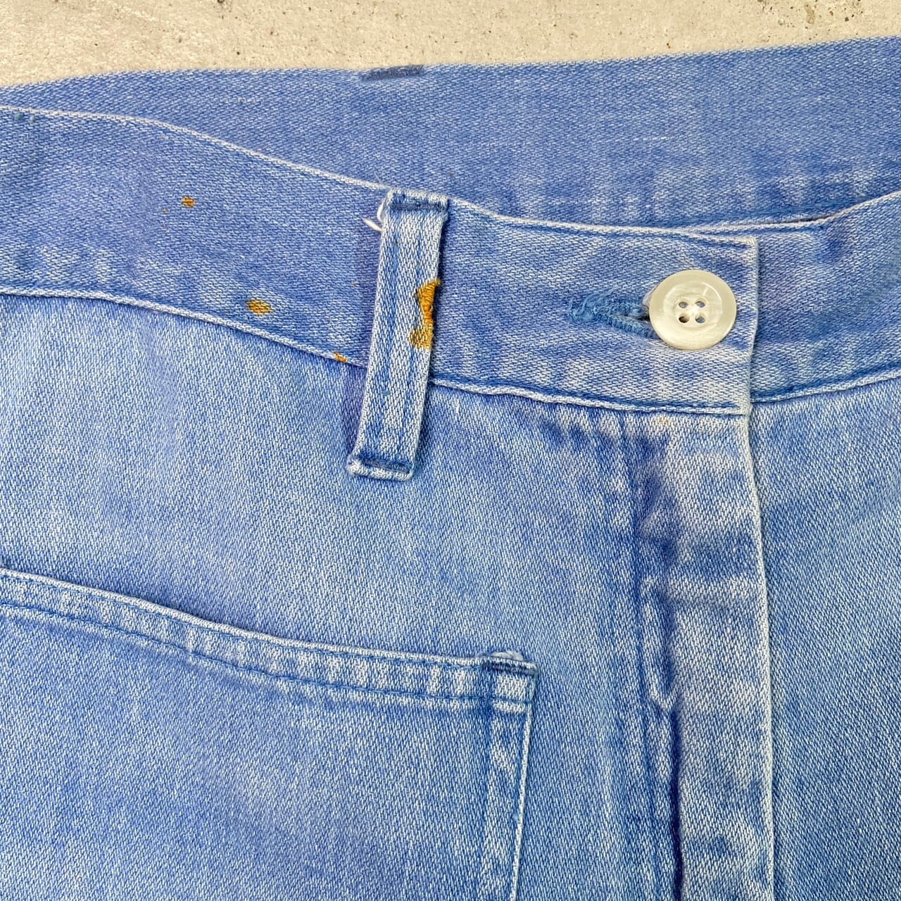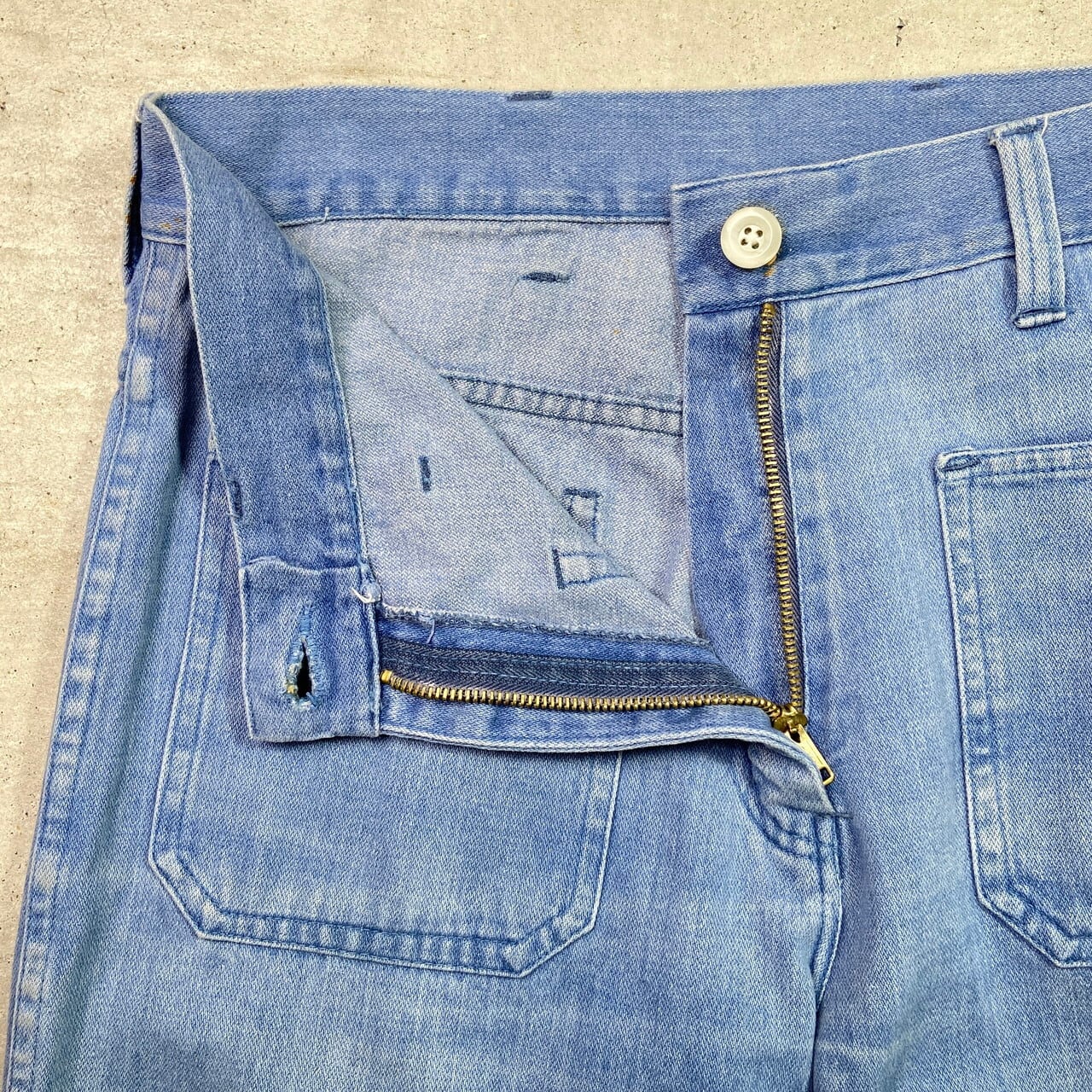 ■UNKNOWN ヴィンテージ デニムセーラーパンツ フレアパンツ ベルボトム レディースW28相当 古着 VINTAGE 片爪 ピンロック アメカジ デニムパンツ 【デニムパンツ】/ブルー 【サイズ】表記 不明 ※計測値をご確認ください。 ウエスト(平置き×2)…72 ワタリ幅…27 股上…28.5 股下…77 裾幅…24.5 【生産国】表記不明 【素材】表記不明 【状態】全体的に色あせや擦れ、使用感が御座います。 またウエスト付近や裾などに汚れが御座います。 画像にてご確認下さい。 【c250214051】 ※古着は洗濯、検品などのケアを行っております。(新品・デッドストックは洗濯していません。) ※モニターの発色により実物と異なる場合がございます。予めご了承ください。 ※ 海外直輸入USED品になります。