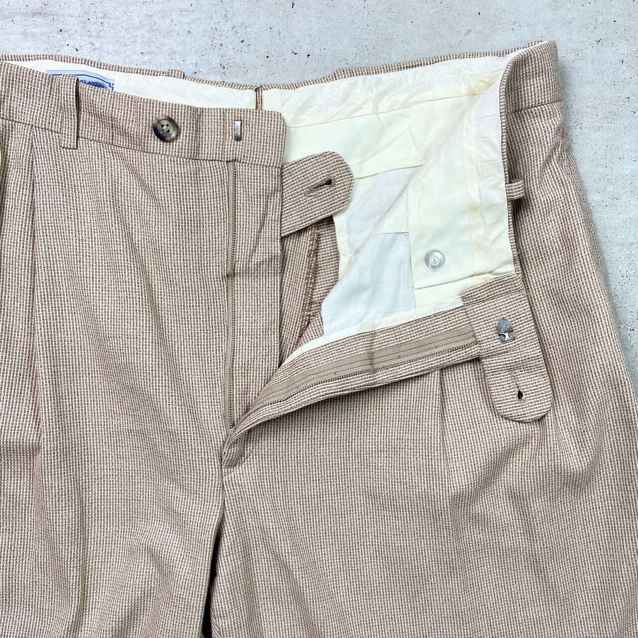 ■80年代 2タック スラックス ロケットTALONジップ メンズW32相当 古着 80s ヴィンテージ VINTAGE 柄 ツイード 【スラックス,スタプレ】/ベージュ 【ブランド】表記不明 【サイズ】表記不明 ※計測値をご確認ください。 ウエスト(平置き×2)…82 ワタリ幅…30.5 股上…31 股下…80 裾幅…21.5 【生産国】表記不明 【素材】表記不明 【状態】多少の使用感は御座いますが、目立ったダメージは御座いません。 画像にてご確認ください。 【c250212052】 ※古着は洗濯、検品などのケアを行っております。(新品・デッドストックは洗濯していません。)