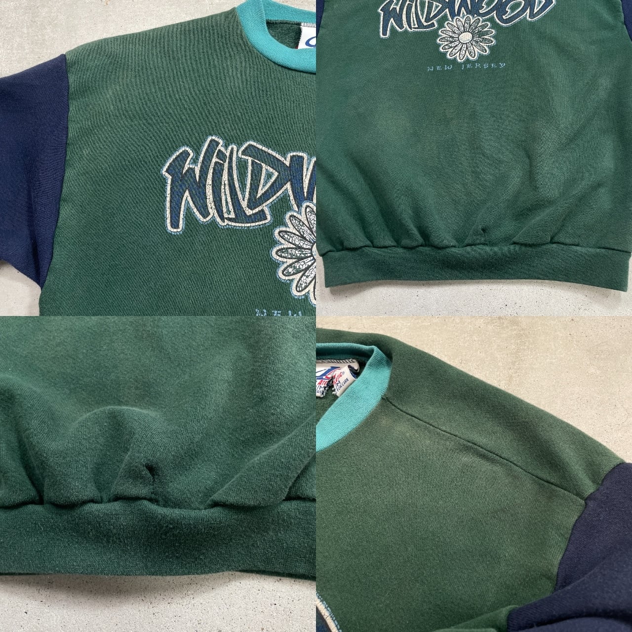 ■90年代 USA製 WILDWOOD NEW JERSEY スーベニアプリント スウェットシャツ メンズM 古着 90s ヴィンテージ VINTAGE トレーナー フラワー グリーン ネイビー ターコイズ【スウェット】/マルチカラー 【ブランド】LOGO ATHLETIC 【サイズ】表記 M ※計測値をご確認ください。 着丈…63.5 身幅…57 肩幅…57 袖丈…52 【生産国】USA製 【素材】コットン95% ポリエステル5% 【状態】裾にリペア、肩に擦れによるダメージが御座います。 また色あせや変色が御座います。 画像にてご確認ください。 【c250211059】 ※古着は洗濯、検品などのケアを行っております。(新品・デッドストックは洗濯していません。) ※モニターの発色により実物と異なる場合がございます。予めご了承ください。 ※ 海外直輸入USED品になります。