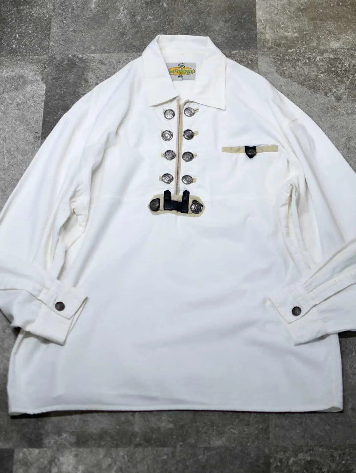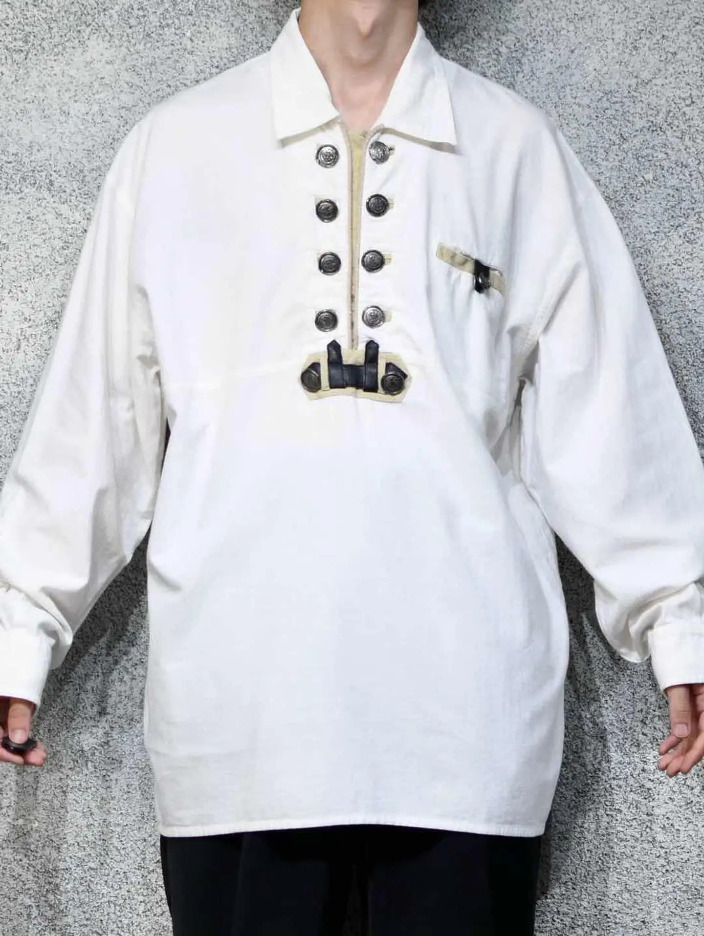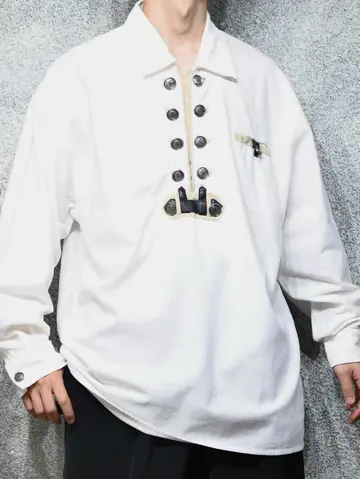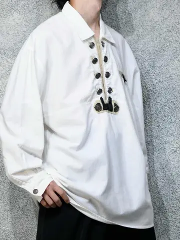 着丈82cm 肩幅64cm 身幅69cm 袖丈62cm fabric/cotton 着用画像 177cm/64kg 数々のチロリアンシャツを見てきましたが、 中でもハイクオリティな個体がこちら。 フロントのデザインはもちろん、 ボタンのクオリティから、プルオーバーという 作りまで、全て推せるスペシャルな逸品です。 ※小さな汚れあり。 ※撮影状況により、実物と多少色が異なる場合があります。 ※古着を取り扱っているため、気づかない汚れやほつれ等がある場合がございます。 予めご了承ください。 ※サイズは着用感で選んでおり、表記サイズではございません。 古着 オーバーサイズ old vintage ヴィンテージ used 80's 90's アメリカ古着 ユーロ古着 メンズ レディース POLO RALPH LAUREN Eddie Bauer OLD GAP Eddie Bauer LANDS' END ランズエンド LLBean エルエルビーン オールドギャップ エディーバウアー ラルフローレン ブルックスブラザーズ Brooks Brothers ホワイト 白 長袖シャツ シャツ などがお好きな方 #vintage #オーバーサイズ #old #used #90s #80s #古着 #ヴィンテージ #アメリカ古着 #ユーロ古着 #古着男子 #古着女子 #LLBean #エルエルビーン #EddieBauer #エディーバウアー #oldgap #オールドギャップ #LANDSEND #ランズエンド #NAUTICA #ノーティカ #ラルフローレン #POLORALPHLAUREN #ブルックスブラザーズ #BrooksBrothers #チロリアンシャツ #プルオーバー #長袖シャツ #シャツ #デザインシャツ