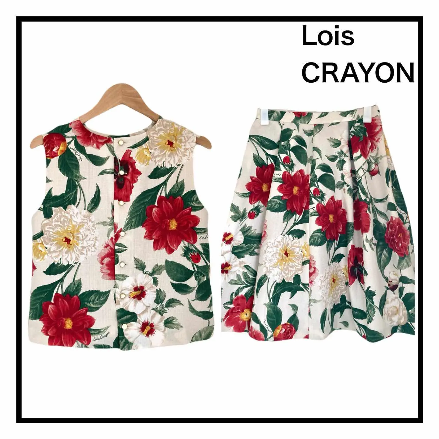 ■デザイン ベストとフレアスカートを組み合わせた洗練されたスタイル。 大判の花柄が華やかさをプラスし、ベージュの色合いが優しさを引き立てています。 ■コーディネート このセットアップは、デイリーユースから特別な日のオケージョンまで幅広く活躍します。ベストはシャツやタートルネックと合わせることで、エレガントな印象を与えられます。 フレアスカートは、シンプルなトップスと組み合わせても華やかに決まります。足元にはパンプスやブーツを合わせて、スタイリッシュな印象を演出してみてください。 ブランド ロイスクレヨン Lois CRAYON 商品名 ロイスクレヨン セットアップ ベスト スカート フレア 大判 花柄 ベージュ M サイズ Mサイズ トップス 肩幅33.5㎝ 身幅43㎝ 着丈49㎝ スカート ウエスト72㎝ 総丈62.5㎝ カラー ベージュ系 #ABY280 #ふくしるべのセットアップ