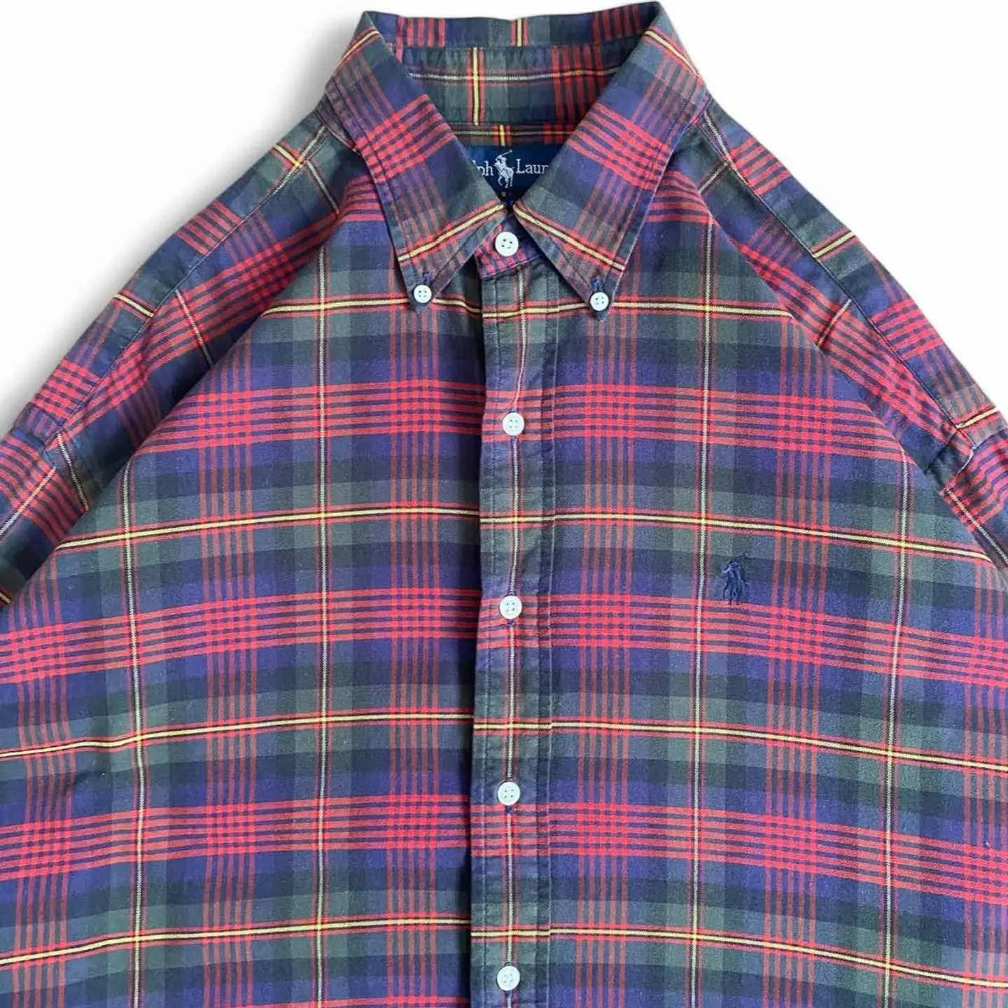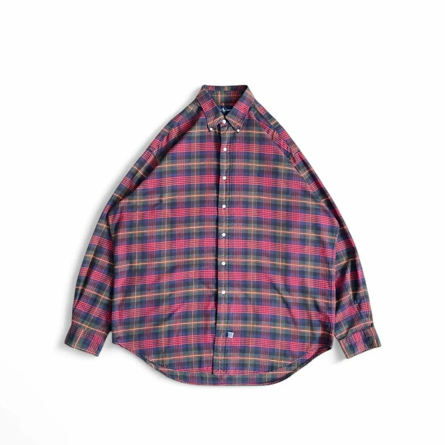 ○商品説明 90s POLORalphLauren 配色が最高な一枚になります。 是非。 ○サイズ 表記 L(XL相当) 平置き ・肩幅51cm ・身幅70cm ・袖丈63cm ・着丈85cm ○商品の状態 B A:使用感がほとんどなく、汚れやシミもなし B:多少使用感はあるが、汚れやシミも少ない C:使用感があり、汚れやシミがある D:使用感があり、大きな汚れや破れあり ○色 レッド イエロー グリーン パープル #poloralphlauren #ポロラルフローレン#長袖シャツ