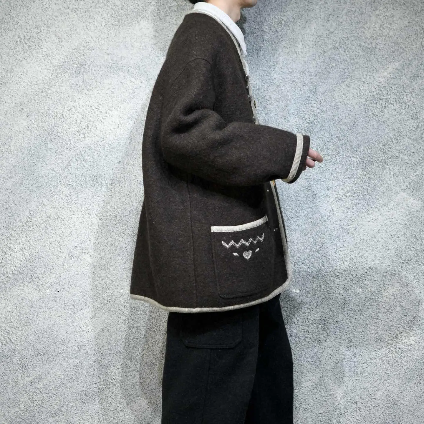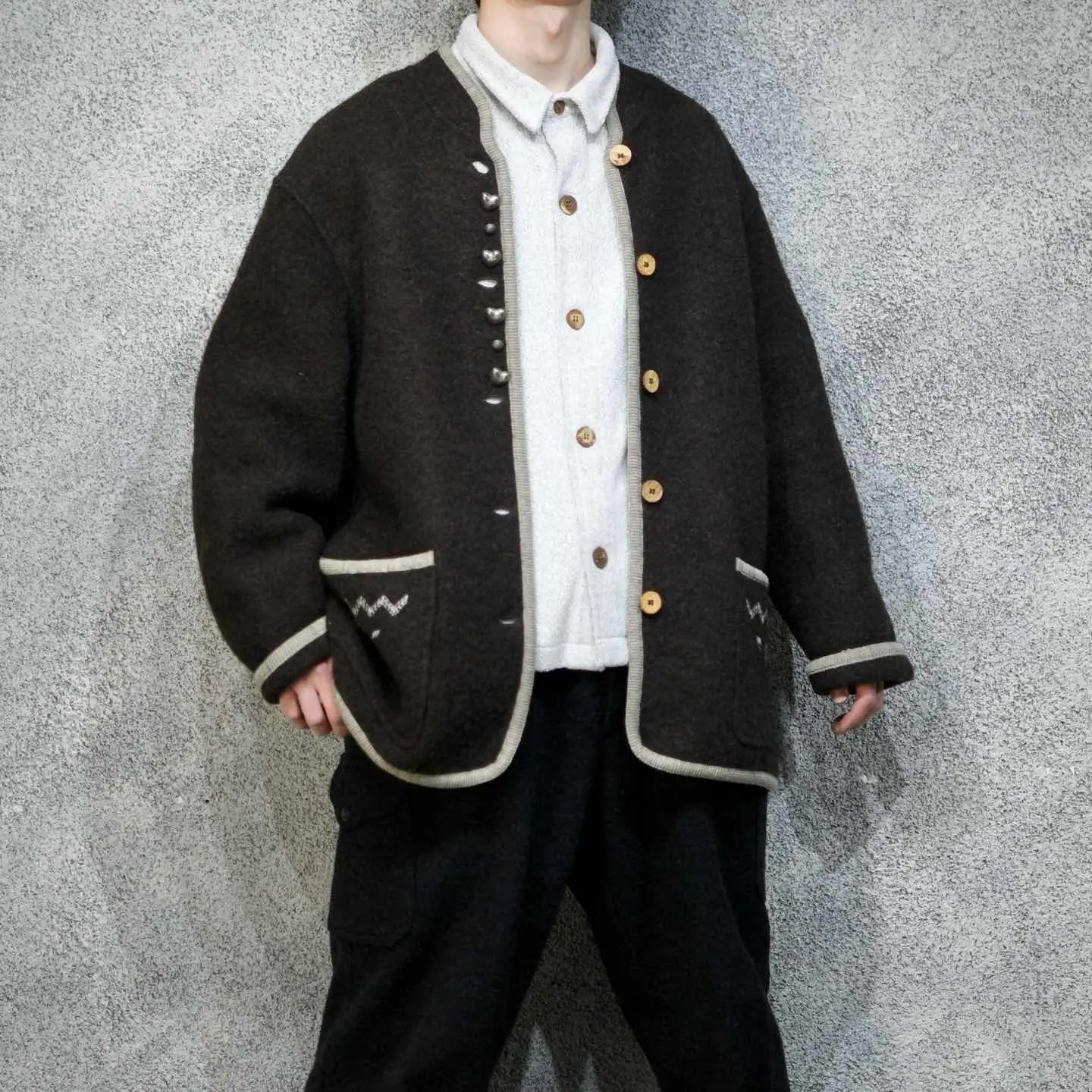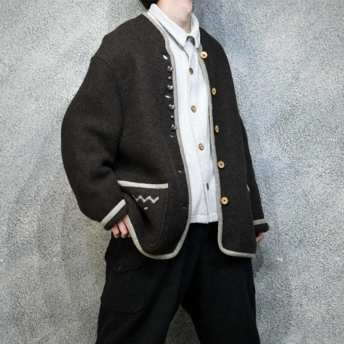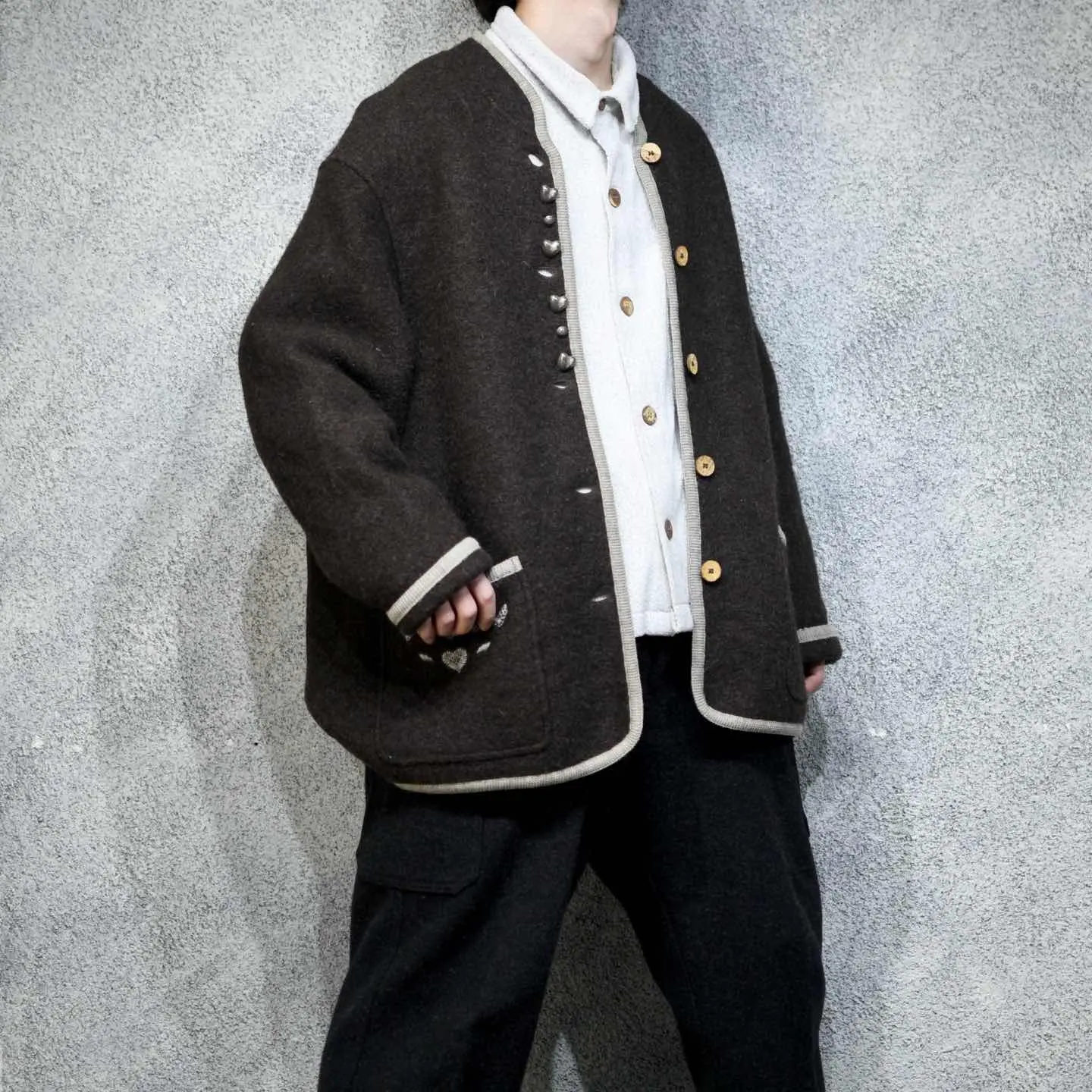 着丈82cm 肩幅60cm 身幅72cm 袖丈62cm fabric/pure new wool made in austria 着用画像 177cm/64kg いやらしさや着にくさを感じさせない、 ハートのメタルボタンの装飾が良い... もけっとした肉厚のウール生地で、 テーラードジャケットなどのアイテムをベースに、畏まった雰囲気削ぎ落として、 可愛さをプラスした様な。 またそんな雰囲気を昇華させる、肩の張らない ゆとりあるシルエットも、このアイテムの 良きポイントかと思います。 ※撮影状況により、実物と多少色が異なる場合が ございます。 ※古着を取り扱っているため、気づかない汚れや ほつれ等がある場合がございます。 予めご了承ください。 ※サイズは着用感で選んでおり、表記サイズではございません。 古着 オーバーサイズ old vintage ヴィンテージ used 80's 90's アメリカ古着 ユーロ古着 メンズ レディース POLO RALPH LAUREN Eddie Bauer OLD GAP Eddie Bauer LANDS' END ランズエンド LLBean エルエルビーン オールドギャップ エディーバウアー ラルフローレン ブルックスブラザーズ Brooks Brothers 茶色 チロリアンジャケット 羽織り などがお好きな方 #vintage #オーバーサイズ #old #used #90s #80s #古着 #ヴィンテージ #アメリカ古着 #ユーロ古着 #古着男子 #古着女子 #LLBean #エルエルビーン #EddieBauer #エディーバウアー #oldgap #オールドギャップ #LANDSEND #ランズエンド #NAUTICA #ノーティカ #ラルフローレン #POLORALPHLAUREN #ブルックスブラザーズ #BrooksBrothers #ジャケット #ウールジャケット #チロリアン #チロリアンジャケット #羽織り