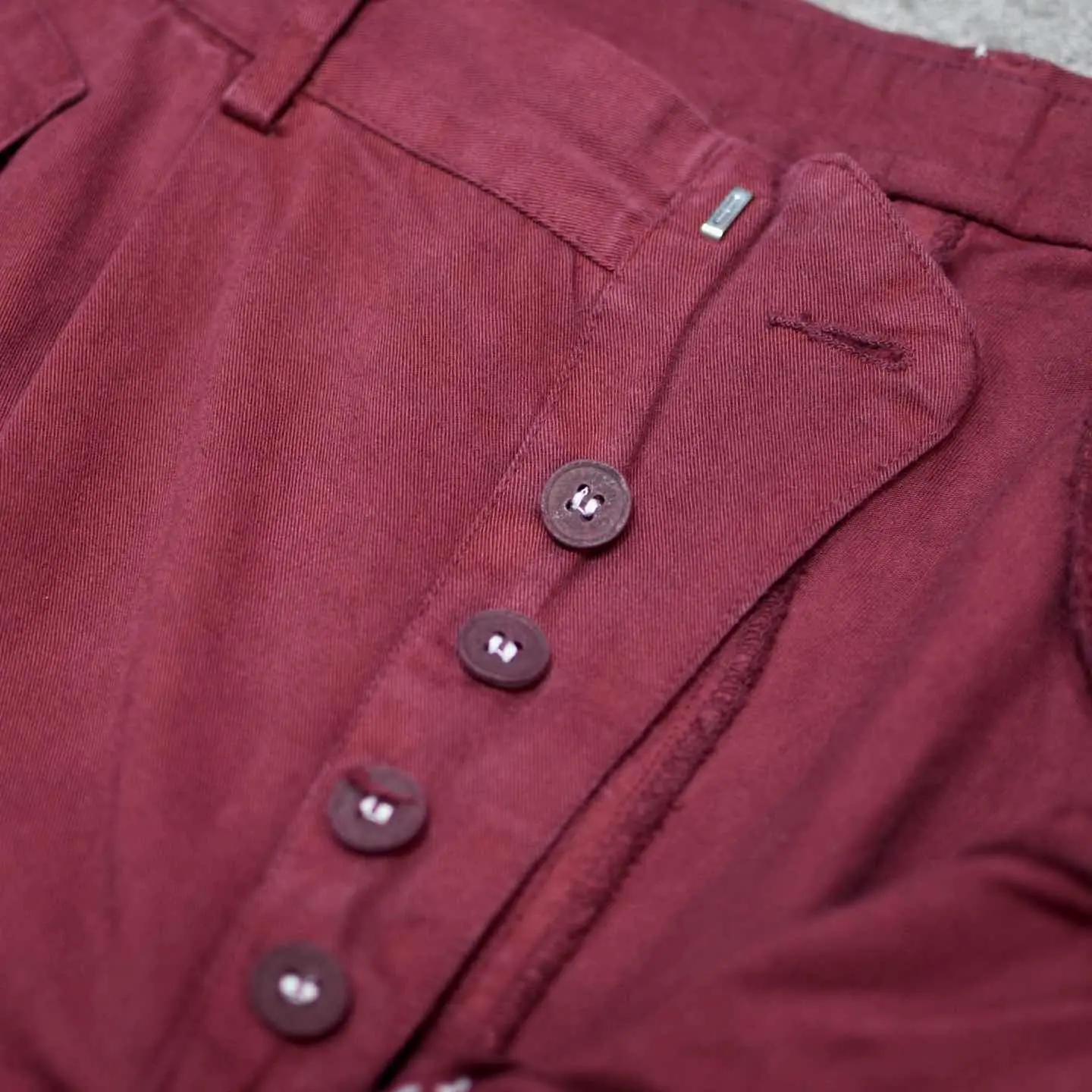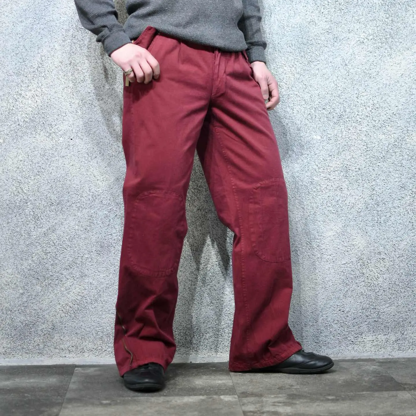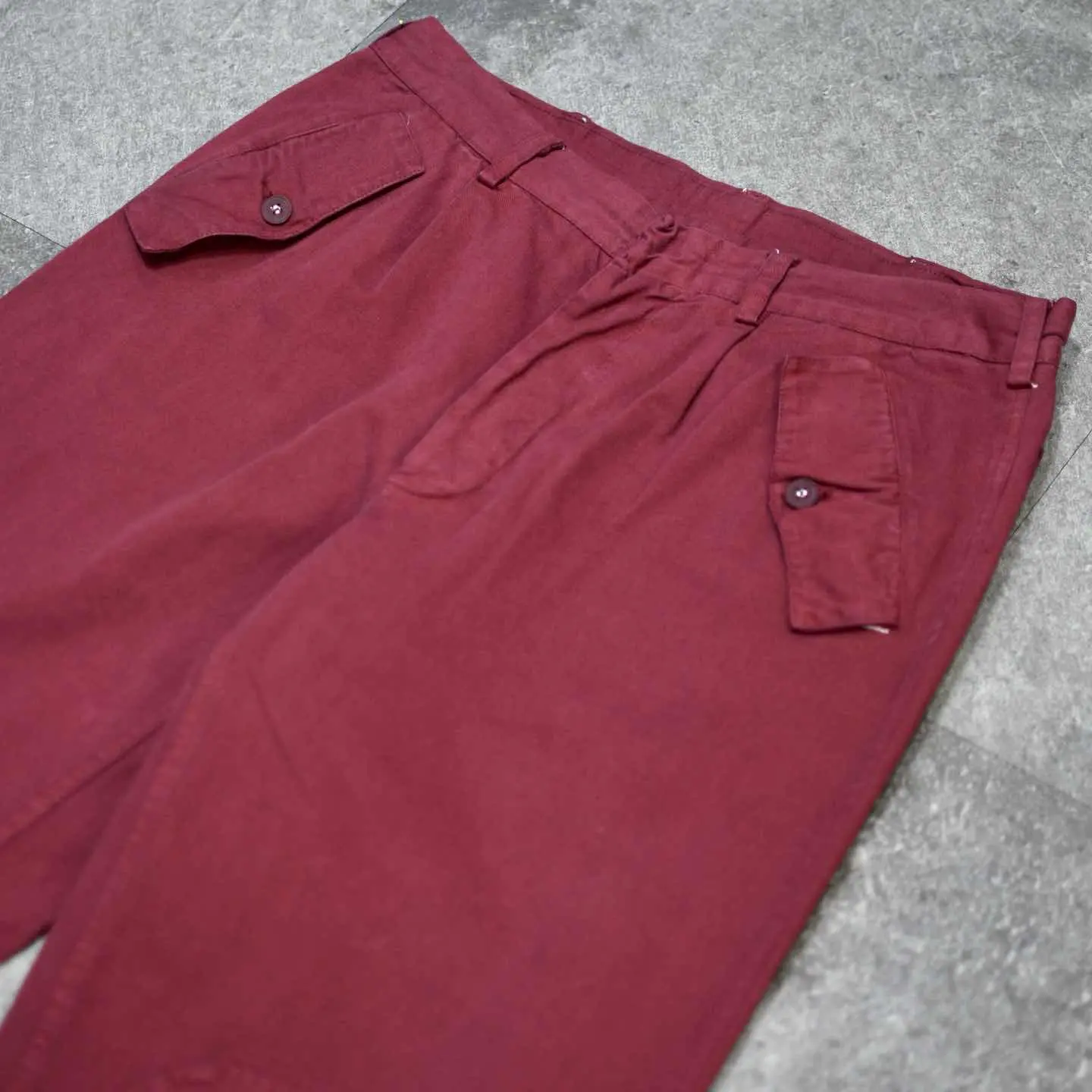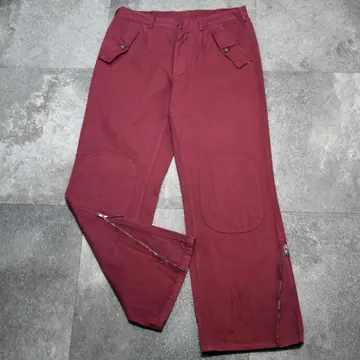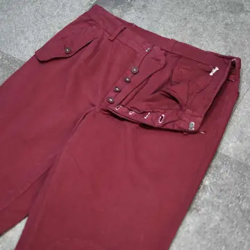 ウエスト80cm 総丈105cm 股下79cm わたり33cm 裾幅~28cm fabric/cotton 着用画像 177cm/64kg イタリア軍のコンバットパンツの民間品を 3種類展開。 元々裾にはリブが入り、足元で溜まる丸みのある シルエットですが、ゴムを抜き取りワイドな ストレートシルエットへ。 ポケットや膝の補強、裾のジップなど、 ギミック豊かなパンツで、そこに存在感のある シルエットという贅沢な逸品。 中でもこちらは深みのあるバーガンディ色。 個性がありつつ、しっかりスタイリングへ 落とし込みやすい1本です。 紙ボタンってところも◎ ※撮影状況により、実物と多少色が異なる 場合がございます。 ※古着を取り扱っているため、気づかない汚れや ほつれがある場合がございます。 予めご了承ください。 ※サイズは着用感で選んでおり、表記サイズではございません。 古着 オーバーサイズ old vintage ヴィンテージ used 80's 90's アメリカ古着 ユーロ古着 メンズ レディース POLO RALPH LAUREN Eddie Bauer OLD GAP Eddie Bauer LANDS' END ランズエンド LLBean エルエルビーン オールドギャップ エディーバウアー ラルフローレン ブルックスブラザーズ Brooks Brothers ワインレッド ワイドパンツ ワークパンツ usarmy アメリカ軍 イギリス軍 フランス軍 スウェーデン軍 チェコ軍 などがお好きな方 #vintage #オーバーサイズ #old #used #90s #80s #古着 #ヴィンテージ #アメリカ古着 #ユーロ古着 #古着男子 #古着女子 #LLBean #エルエルビーン #EddieBauer #エディーバウアー #oldgap #オールドギャップ #LANDSEND #ランズエンド #NAUTICA #ノーティカ #ラルフローレン #POLORALPHLAUREN #ブルックスブラザーズ #BrooksBrothers #イタリア軍 #コンバットパンツ #ワークパンツ #ミリタリー #軍パン