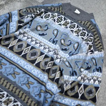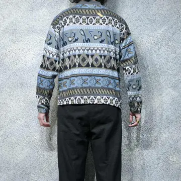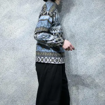 着丈62cm 肩幅58cm 身幅60cm 袖丈56cm fabric/acrylic made in italy 着用画像 177cm/64kg 毛足の長いシャギーなモックネック。 生地が薄めで、ニットやスウェットというよりか、 ロンTに近い感覚で、インナー使いにも長けた1枚。 幾何学模様やペイズリー柄など、 様々な柄を施しながらも、統一感のあるデザイン。 スラックスなど、キレイめなパンツとの相性が良い ロンT的な立ち位置で、スタイリングの幅が 広がるアイテムです。 ※撮影状況により、実物と多少色が異なる場合が ございます。 ※古着を取り扱っているため、気づかない汚れや ほつれ等がある場合がございます。 予めご了承ください。 ※サイズは着用感で選んでおり、表記サイズではございません。 古着 オーバーサイズ old vintage ヴィンテージ used 80's 90's アメリカ古着 ユーロ古着 メンズ レディース POLO RALPH LAUREN Eddie Bauer OLD GAP Eddie Bauer LANDS' END ランズエンド LLBean エルエルビーン オールドギャップ エディーバウアー ラルフローレン ブルックスブラザーズ Brooks Brothers 青 ブルー セーター ロンT 長袖Tシャツ カットソー 総柄 柄 などがお好きな方 #vintage #オーバーサイズ #old #used #90s #80s #古着 #ヴィンテージ #アメリカ古着 #ユーロ古着 #古着男子 #古着女子 #LLBean #エルエルビーン #EddieBauer #エディーバウアー #oldgap #オールドギャップ #LANDSEND #ランズエンド #NAUTICA #ノーティカ #ラルフローレン #POLORALPHLAUREN #ブルックスブラザーズ #BrooksBrothers #ロンT #長袖Tシャツ #カットソー #ペイズリー柄 #総柄 #柄 #デザインニット #モックネック #ニット #セーター