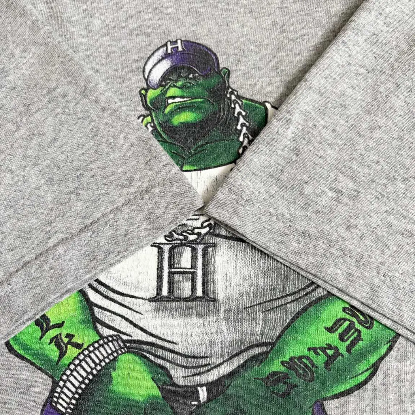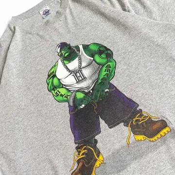 ○商品説明 USA製 DELTA HULK marvel最強のハルク そのハルクがお洒落しちゃってますね コピーライトもしっかり入ってて 文句なしの一枚だと思います。 ○サイズ 表記 L 平置き ・肩幅53cm ・身幅58cm ・袖丈18cm ・着丈66cm ○商品の状態 B A:使用感がほとんどなく、汚れやシミもなし B:多少使用感はあるが、汚れやシミも少ない C:使用感があり、汚れやシミがある D:使用感があり、大きな汚れや破れあり ○色 グレー #DELTA#USA製#HULK#デルタ#ハルク#Tシャツ