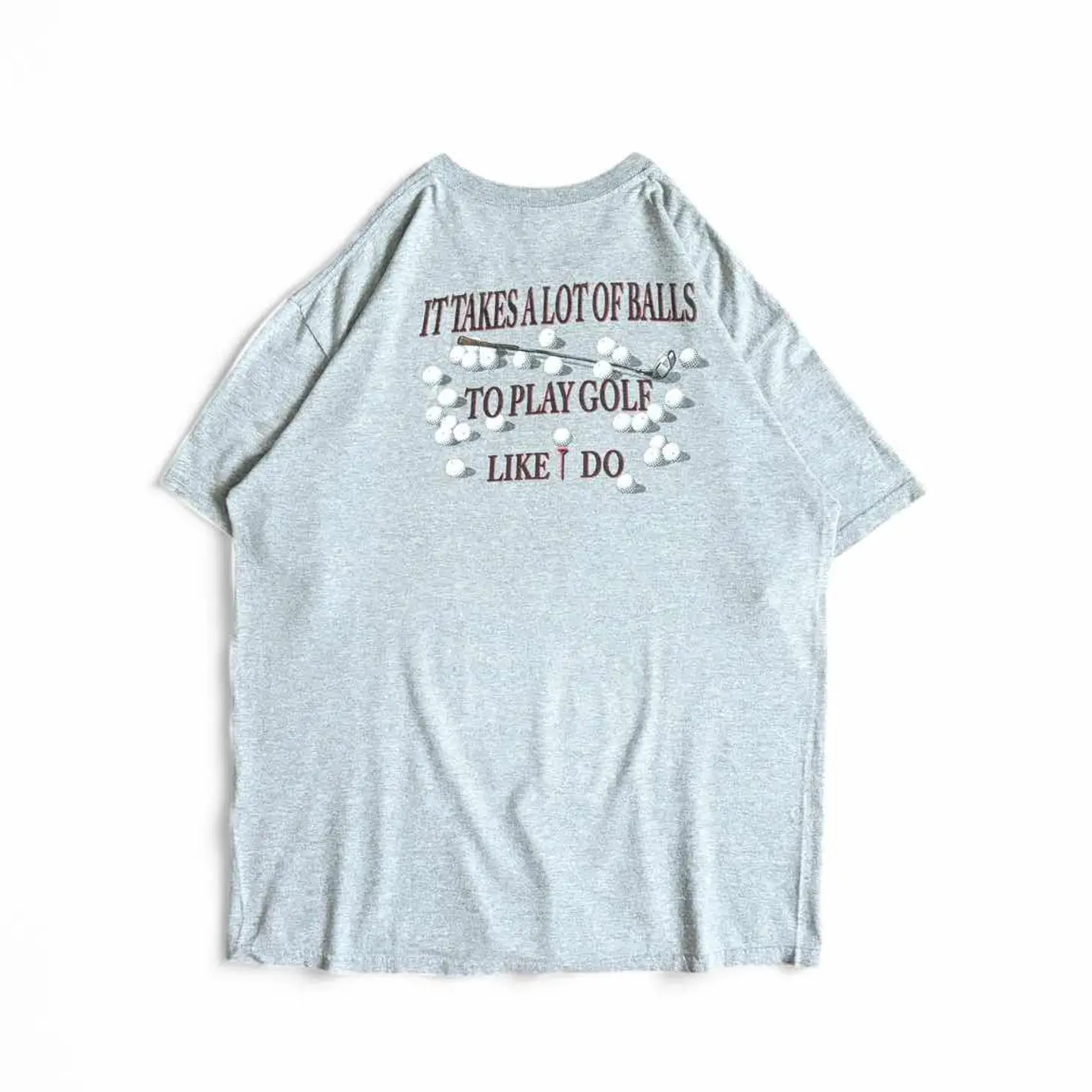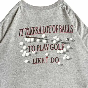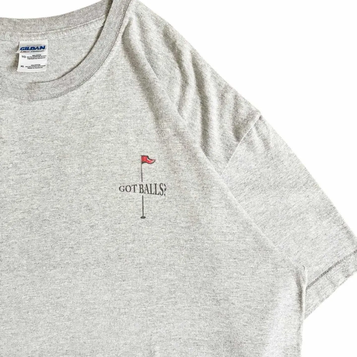 ○商品説明 GILDAN GOT BALL? 最近流行りのGOT系です。 ゴルフのようにプレーするには たくさんのボールが必要です。 バックはたくさんのゴルフボールと アイアンがプリントされています。 ビビッときた方は是非。 ○サイズ 表記 XL 平置き ・肩幅56cm ・身幅60cm ・袖丈21cm ・着丈72cm ○商品の状態 B A:使用感がほとんどなく、汚れやシミもなし B:多少使用感はあるが、汚れやシミも少ない C:使用感があり、汚れやシミがある D:使用感があり、大きな汚れや破れあり ○色 グレー #GILDAN#got?#ゴルフ#Tシャツ