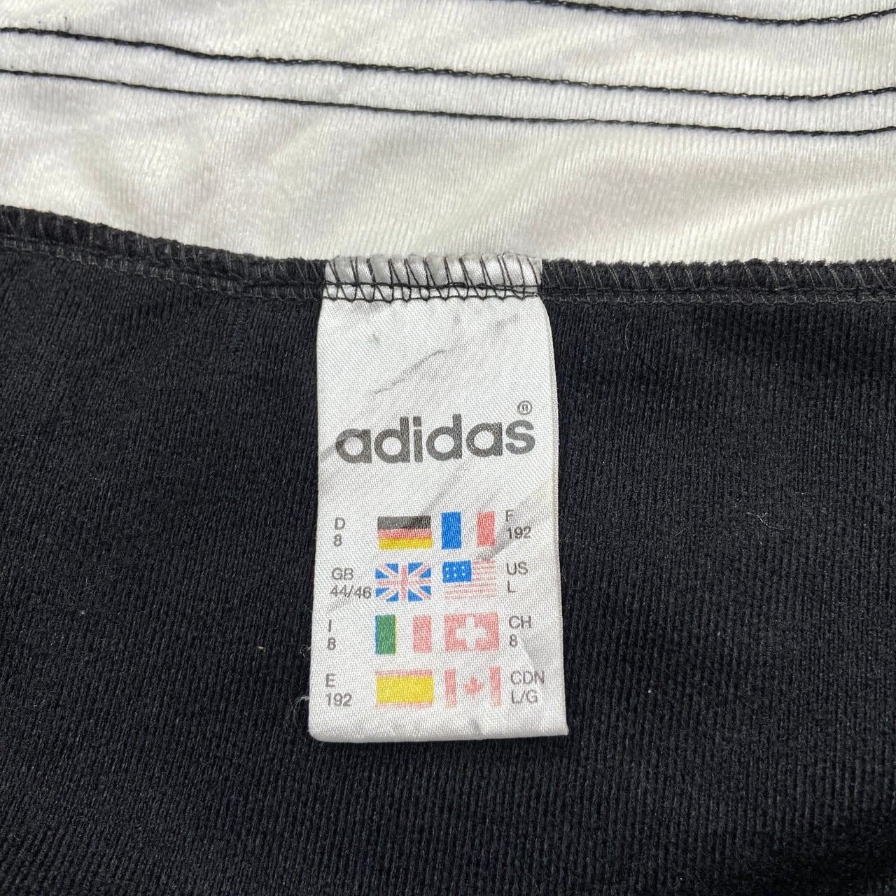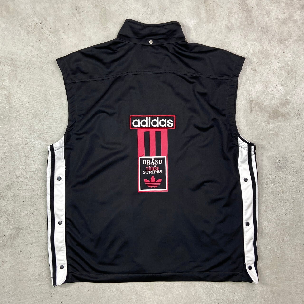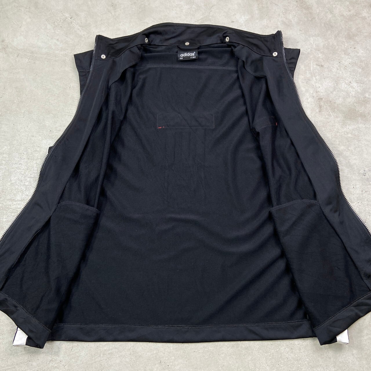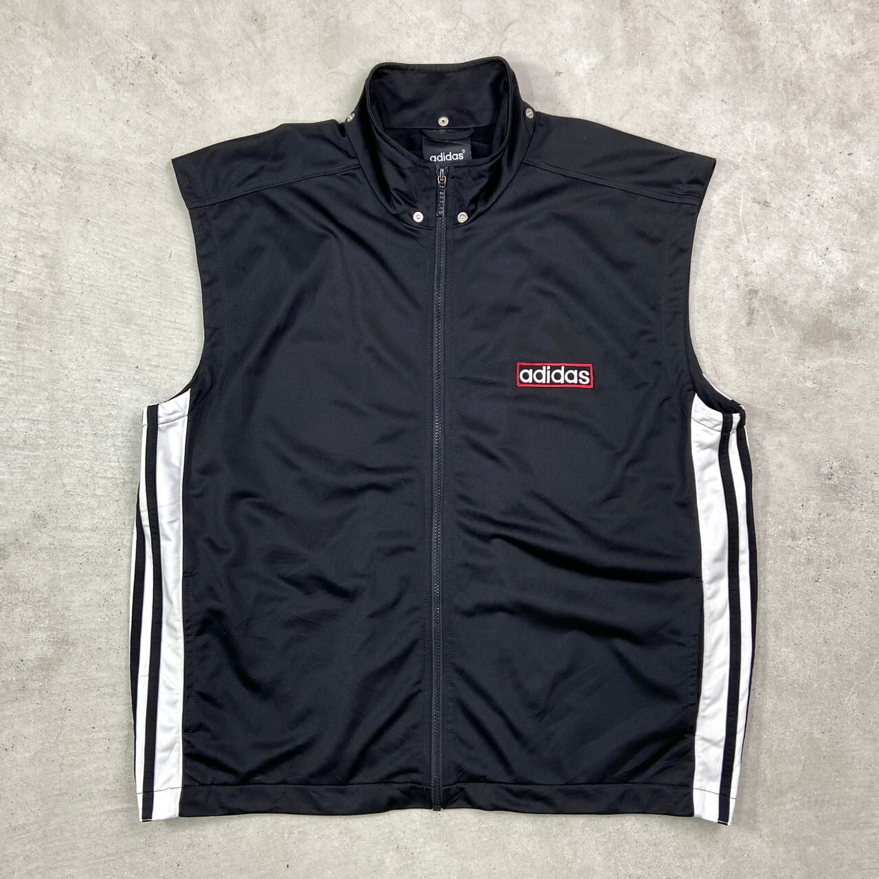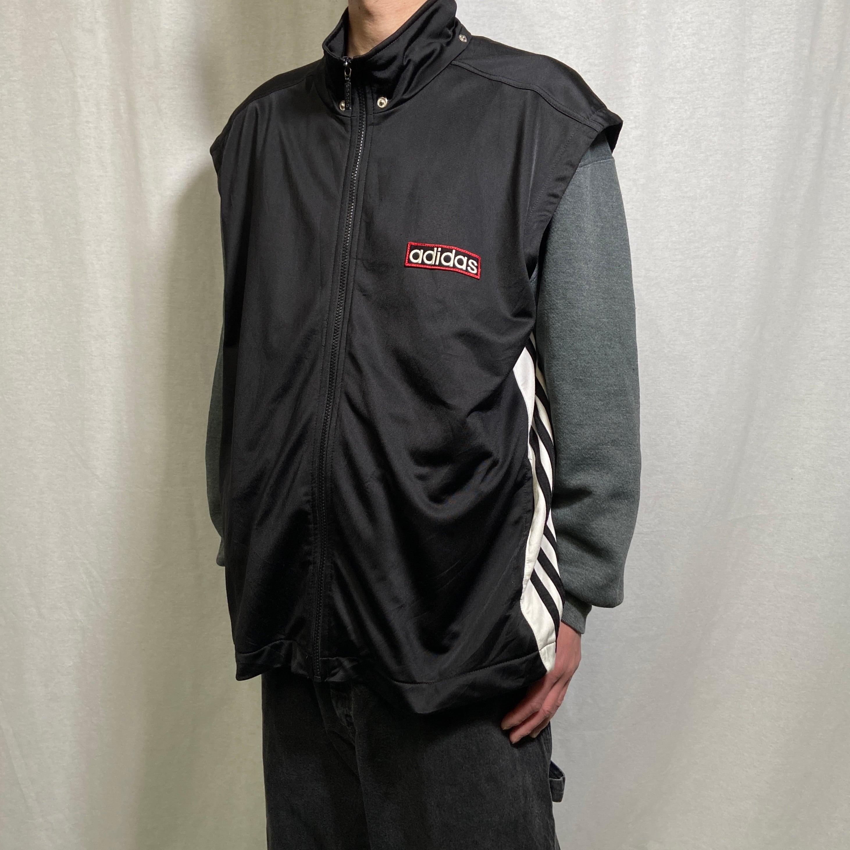 ■90年代 adidas アディダス ジャージベスト トラックジャケット サイドスナップ ロゴ刺繍 メンズXL相当 古着 90s ヴィンテージ VINTAGE トレフォイルロゴ ホワイト 黒 白【ジャージ・トラックジャケット】/ブラック 【ブランド】adidas アディダス 【サイズ】表記 USA L(着用感メンズXL相当) モデル身長173cm ※計測値をご確認ください。 着丈…72 身幅…67 肩幅…57.5 【生産国】インドネシア製 【素材】ポリエステル100% 【状態】右横に薄汚れ等の使用感がございます。 フードが欠損しています。 画像にてご確認ください。 【c250319008】 ※古着は洗濯、検品などのケアを行っております。(新品・デッドストックは洗濯していません。) ※モニターの発色により実物と異なる場合がございます。予めご了承ください。 ※ 海外直輸入USED品になります。