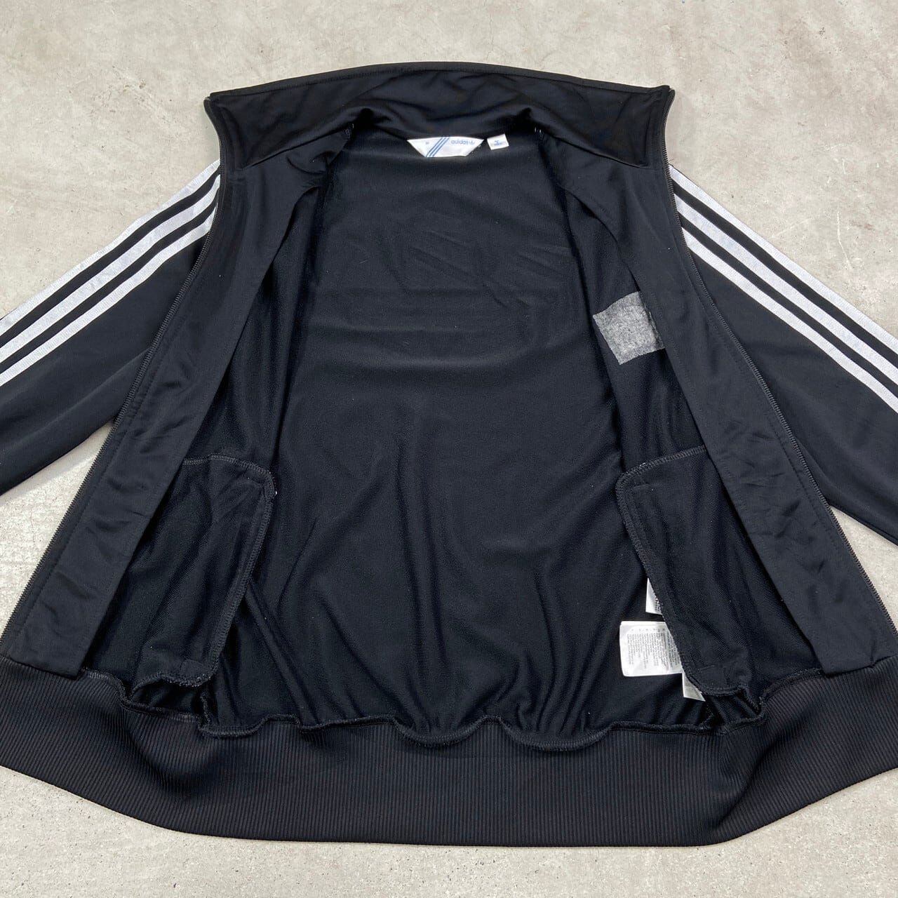 ■00年代 adidas アディダス トラックジャケット ジャージ トレフォイルロゴ刺繍 レディースS相当 古着 00s ヴィンテージ VINTAGE Y2K 袖ライン ハイネック 黒 シルバー【ジャージ・トラックジャケット】/ブラック 【ブランド】adidas アディダス 【サイズ】表記 38(着用感レディースS相当) モデル身長162cm ※計測値をご確認ください。 着丈…59.5 身幅…48.5 肩幅…39 袖丈…62 【生産国】インドネシア製 【素材】ポリエステル100% 【状態】バックプリントに皺等の使用感がございます。 画像にてご確認ください。 【c250319006】 ※古着は洗濯、検品などのケアを行っております。(新品・デッドストックは洗濯していません。) ※モニターの発色により実物と異なる場合がございます。予めご了承ください。 ※ 海外直輸入USED品になります。