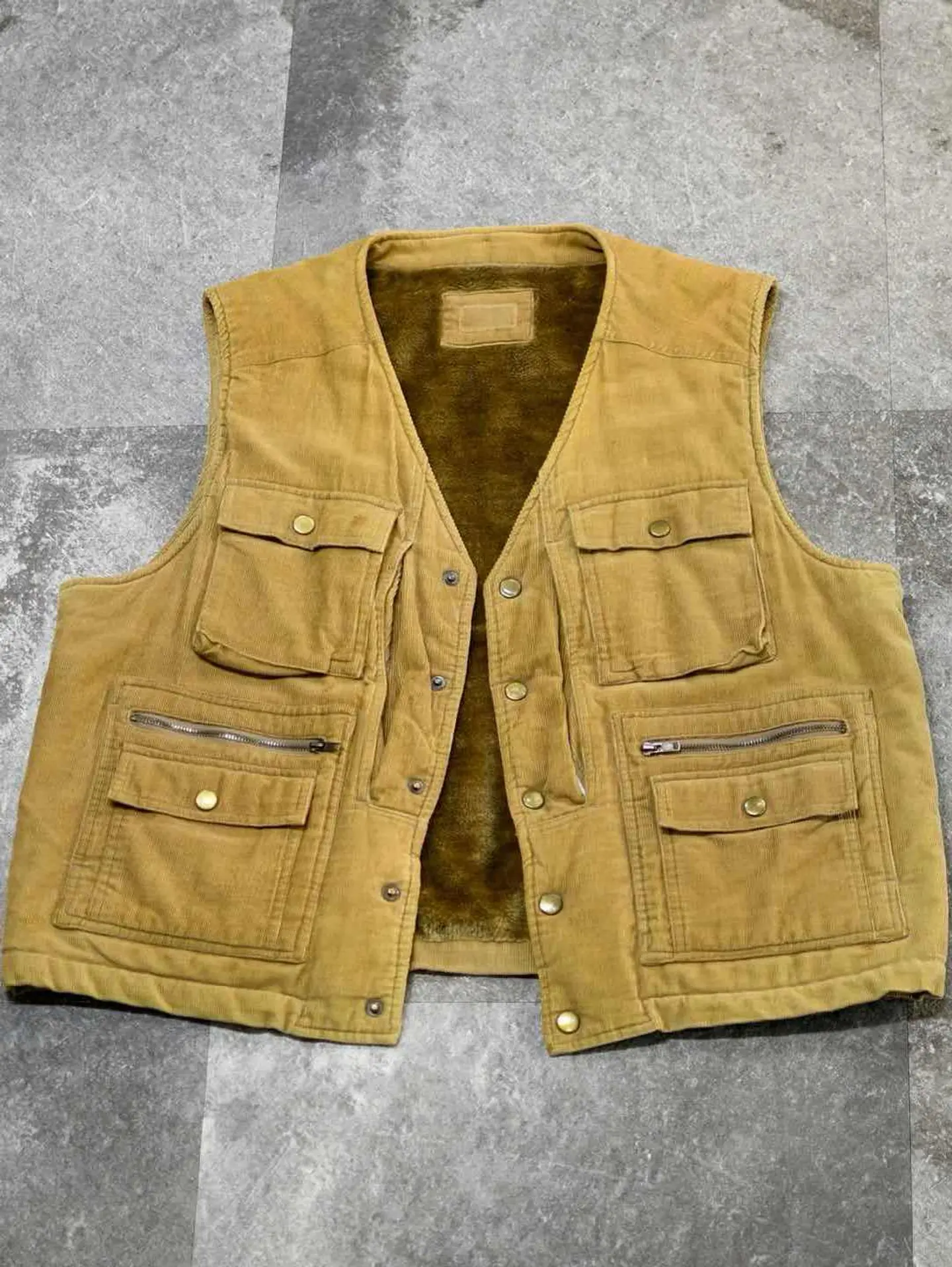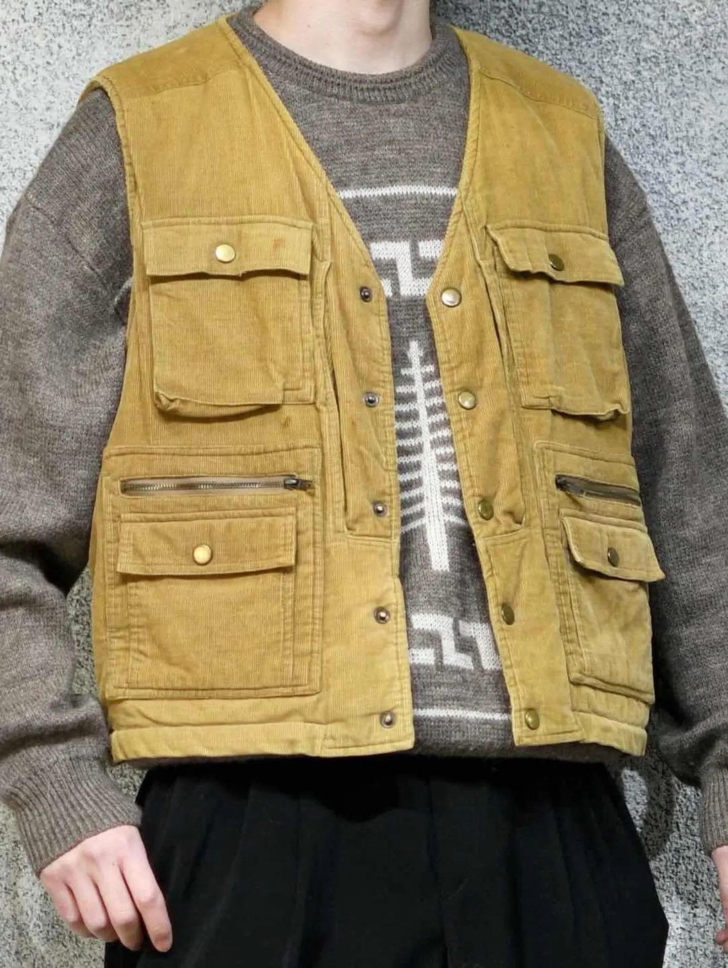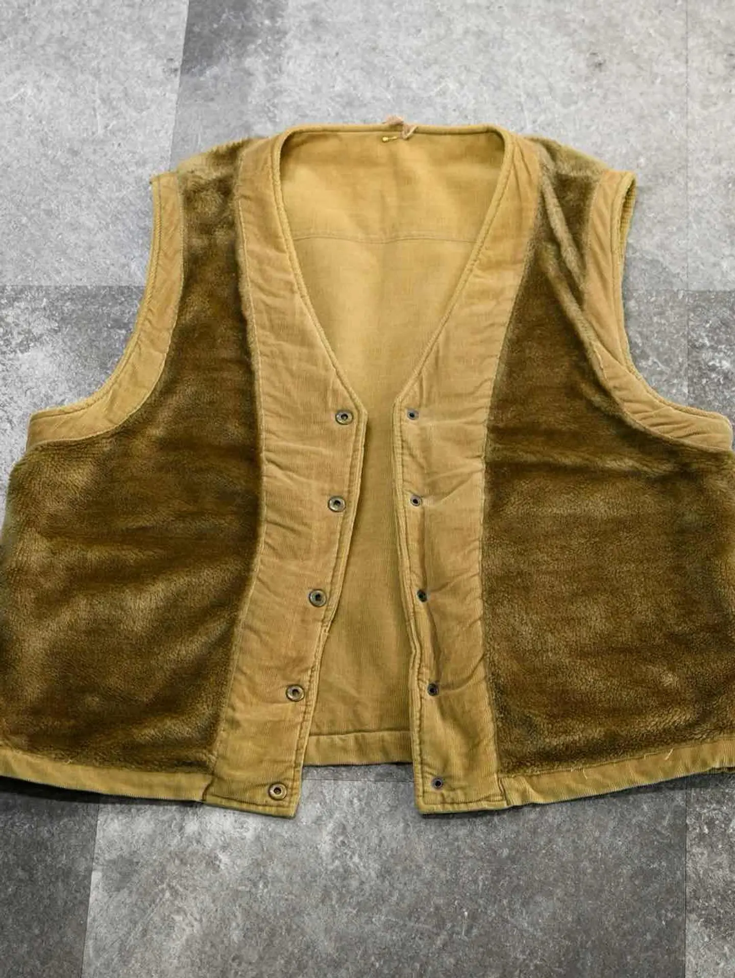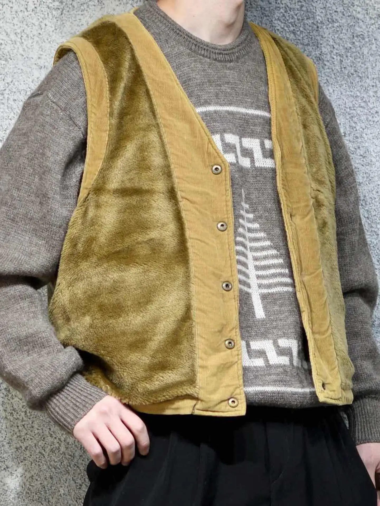 着丈62cm 肩幅43cm 身幅59cm fabric/質感よりcotton 着用画像 177cm/64kg 表のギミックは言うまでもなく良いですが、 個人的には裏にも注目して頂きたいアイテムです。 フェイクファーにコーデュロイ。 気分で裏返して着ても良いんじゃないかと。 ブルゾンだったりトップスの上に着るだけで 個性をプラス。 可愛いベストです。 ※撮影状況により、実物と多少色が異なる場合が ございます。 ※古着を取り扱っているため、気づかない汚れや ほつれ等がある場合がございます。 予めご了承ください。 ※サイズは着用感で選んでおり、表記サイズではございません。 古着 オーバーサイズ old vintage ヴィンテージ used 80's 90's アメリカ古着 ユーロ古着 メンズ レディース POLO RALPH LAUREN Eddie Bauer OLD GAP Eddie Bauer LANDS' END ランズエンド LLBean エルエルビーン オールドギャップ エディーバウアー ラルフローレン ブルックスブラザーズ Brooks Brothers 茶色 ブラウン ベージュ ファーベスト などがお好きな方 #vintage #オーバーサイズ #old #used #90s #80s #古着 #ヴィンテージ #アメリカ古着 #ユーロ古着 #古着男子 #古着女子 #LLBean #エルエルビーン #EddieBauer #エディーバウアー #oldgap #オールドギャップ #LANDSEND #ランズエンド #NAUTICA #ノーティカ #ラルフローレン #POLORALPHLAUREN #ブルックスブラザーズ #BrooksBrothers #ファーベスト #ベスト #コーデュロイベスト #ワークベスト #デザインベスト